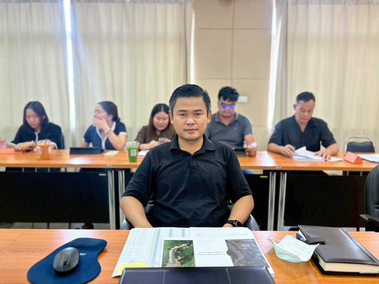 เป็นประธานการประชุมติดตามความก้าวหน้าผลการดำเนินงานและผลการเบิกจ่ายงบประมาณ โดยมีผู้อำนวยการส่วน และเจ้าหน้าที่ที่เกี่ยวข้องเข้าร่วมประชุม ณ ห้องประชุม 1 ชั้น 3 อาคารวิเคราะห์และทดสอบวัสดุ สำนักงานทรัพยากรน้ำที่ 7