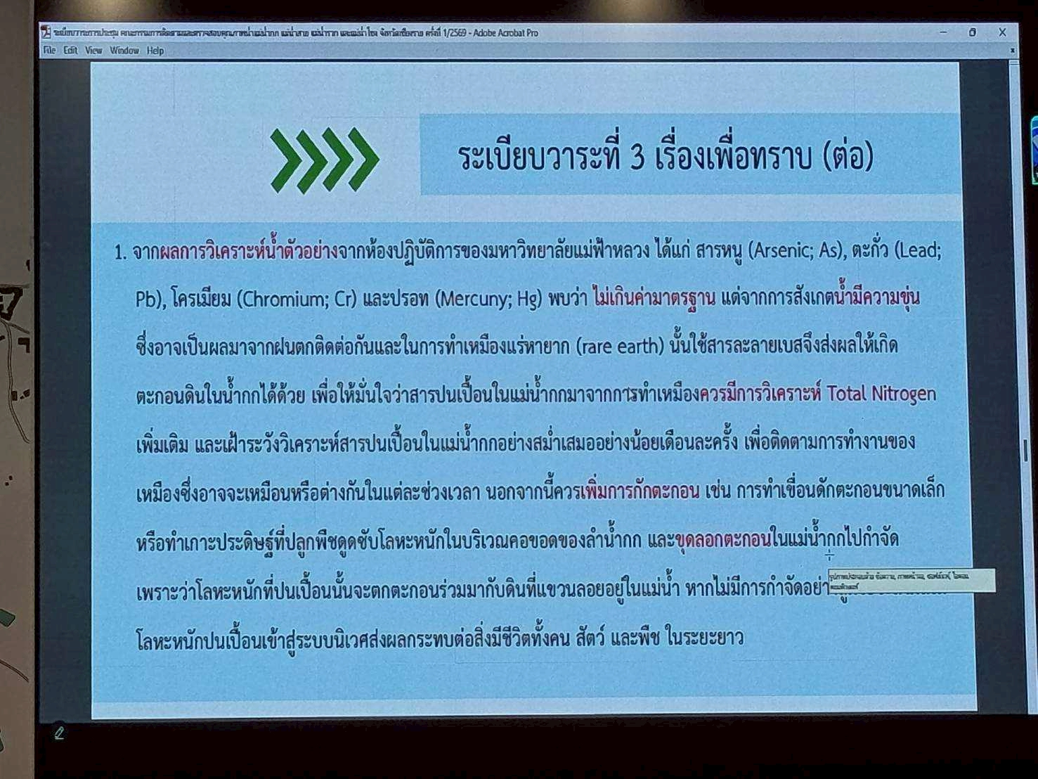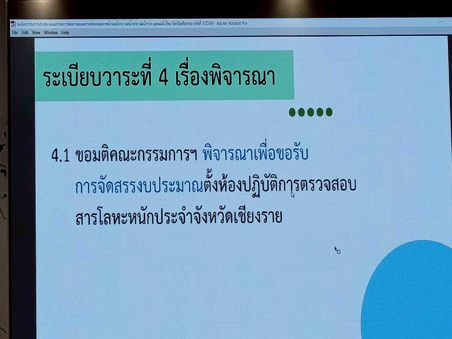 นางสาวสุพัดสอน สีมืด ผู้อำนวยการสำนักงานทรัพยากรน้ำที่ 1 มอบหมายให้ส่วนอนุรักษ์ทรัพยากรน้ำที่ 4 เชียงราย เข้าร่วมประชุมคณะกรรมการติดตามและตรวจสอบคุณภาพ น้ำกก น้ำสาย น้ำรวก และน้ำโขง จังหวัดเชียงราย ครั้งที่1/2569 โดยมีนายชูชีพ พงษ์ไชย ผู้ว่าราชการจังหวัดเชียงราย เป็นประธานการประชุม ณ ห้องประชุมธรรมลังกา ชั้น3 ศาลากลางจังหวัดเชียงราย