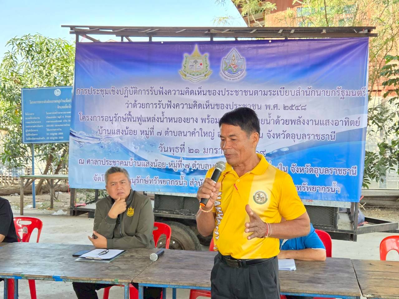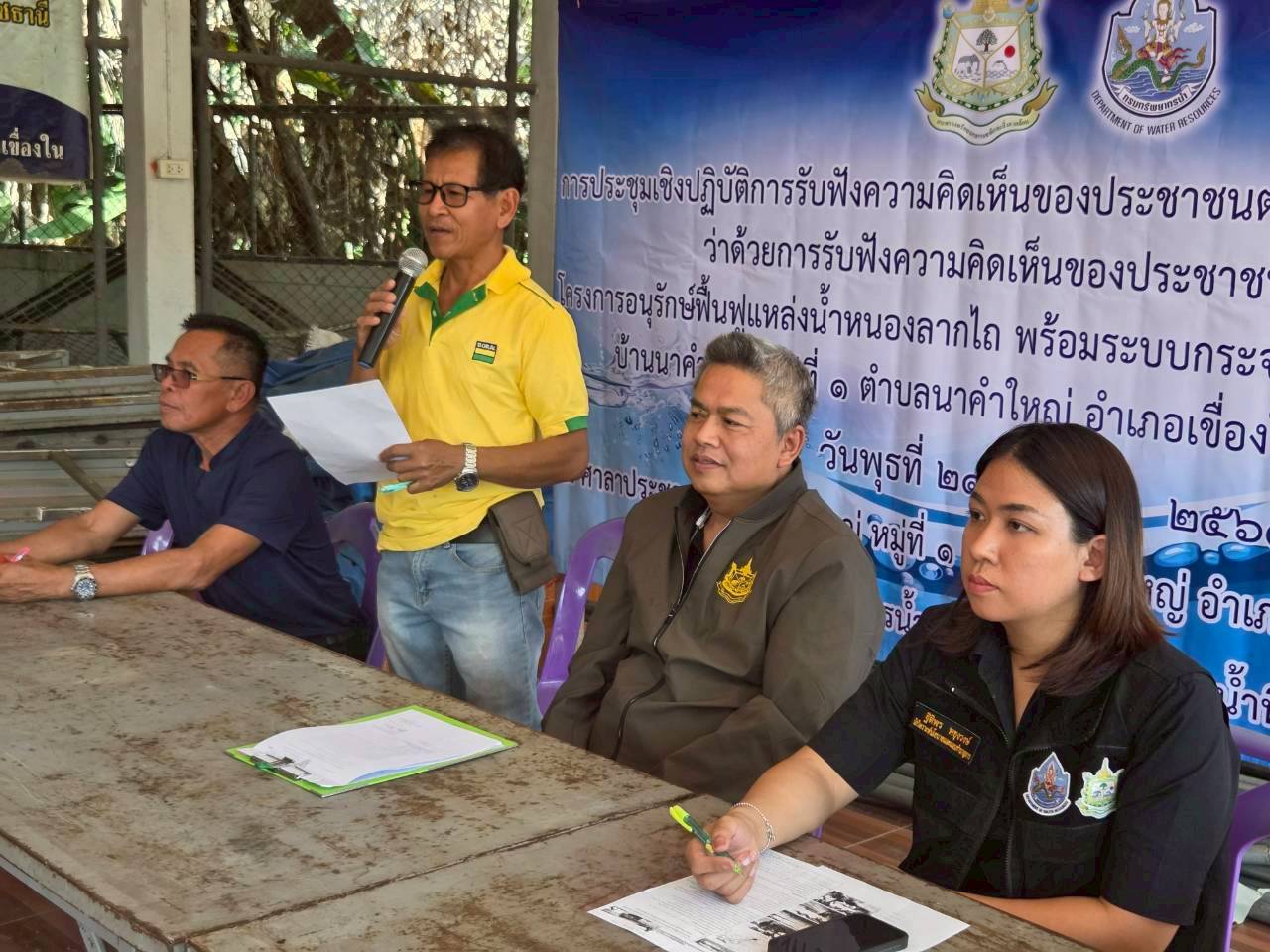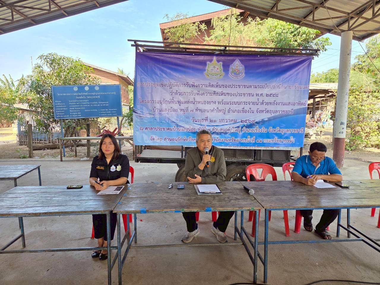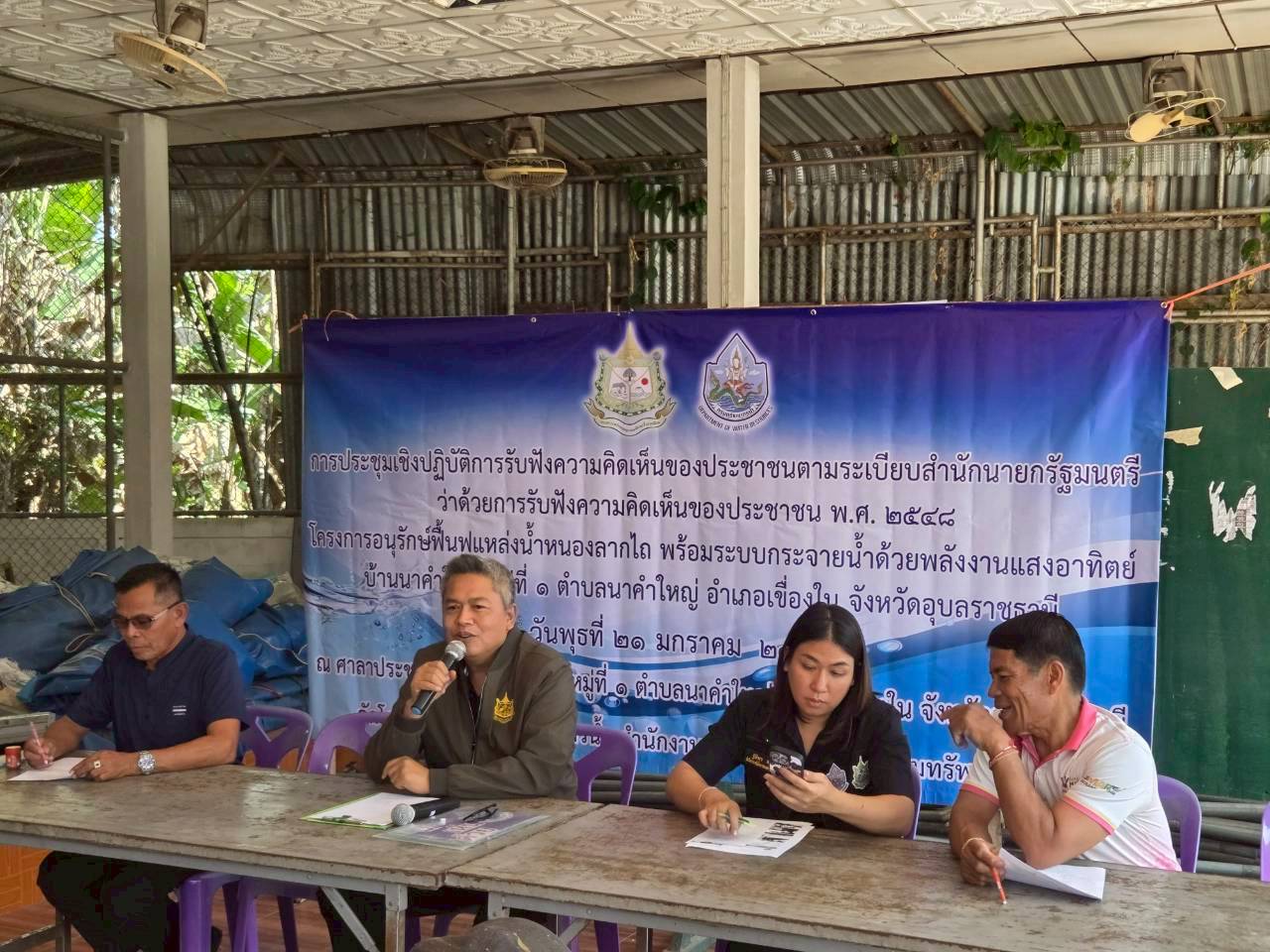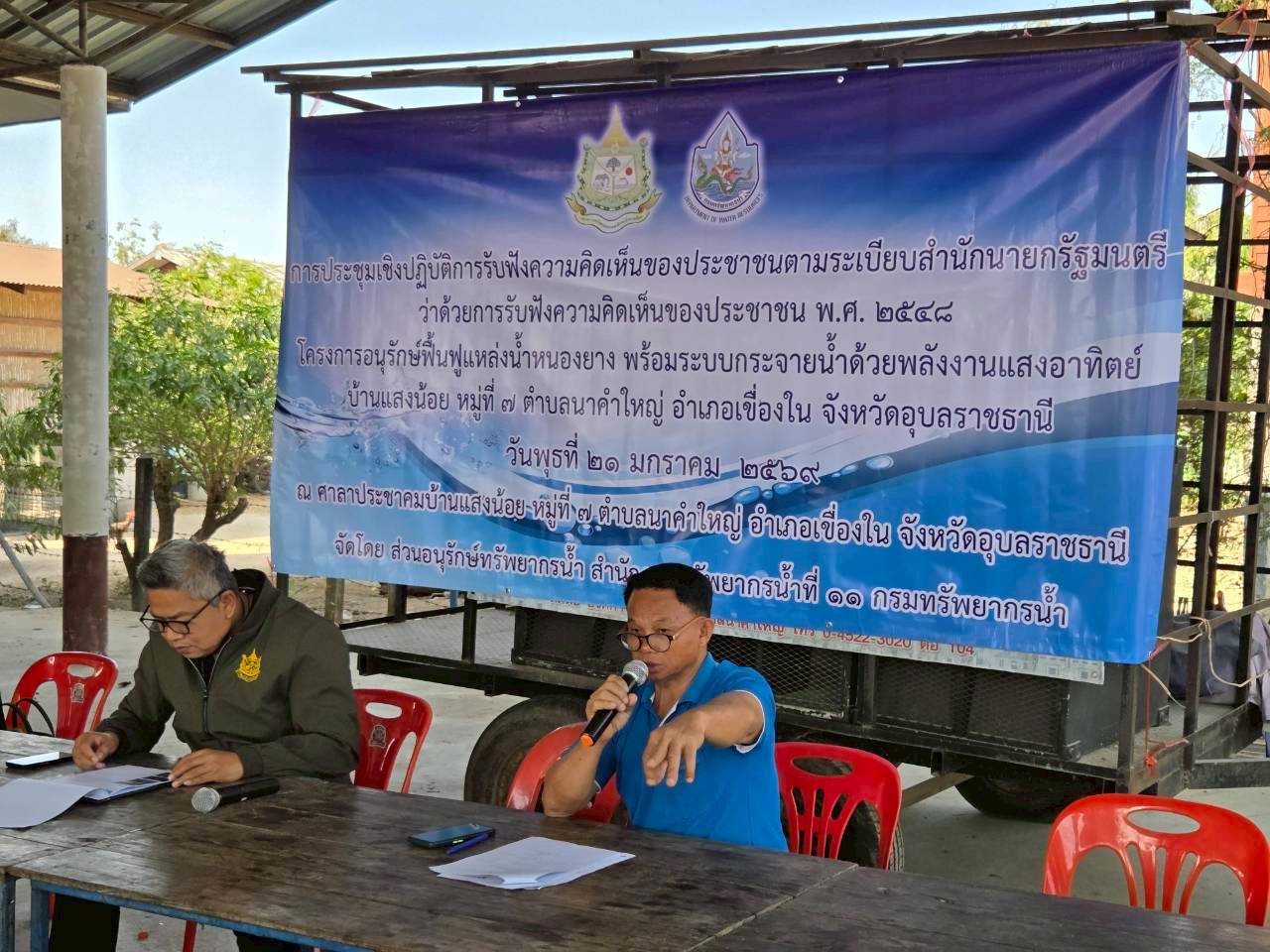 วันที่ 21 มกราคม 2569 นายโภคิน ช้ำเกตุ ผู้อำนวยการสำนักงานทรัพยากรน้ำที่ 11 มอบหมายให้ เจ้าหน้าที่ส่วนอนุรักษ์ทรัพยากรน้ำลงพื้นที่ จ.อุบลราชธานี เพื่อจัดประชุมเชิงปฏิบัติการรับฟัง ความคิดเห็นของประชาชนตามระเบียบสำนักนายกรัฐมนตรีว่าด้วยการรับฟังความคิดเห็นของ ประชาชน พ.ศ. 2548 จำนวน 2 โครงการ ดังนี้ 1) “โครงการอนุรักษ์ฟื้นฟูแหล่งน้ำหนองยาง พร้อมระบบ กระจายน้ำด้วยพลังงานแสงอาทิตย์” บ.แสงน้อย ม. 7 ต.นาคำใหญ่ อ.เขื่องใน จ.อุบลราชธานี ณ ศาลาประชาคม บ.แสงน้อย ม.7 มีประชาชนเข้าร่วมโครงการฯ จำนวน 63 ราย เเละ 2) “โครงการ อนุรักษ์ฟื้นฟูแหล่งน้ำหนองลากไถ พร้อมระบบกระจายน้ำดัวยพลังงานแสงอาทิตย์” บ.นาคำใหญ่ ม. 1 ต.นาคำใหญ่ อ.เขื่องใน จ.อุบลราชธานี ณ ศาลาประชาคม บ.นาคำใหญ่ ม. 1 มีประชาชนเข้าร่วมโครงการฯ จำนวน 69 ราย ทั้งนี้ มีการชี้แจงรายละเอียดเกี่ยวกับ โครงการของกรมทรัพยากรน้ำที่จะดำเนินการในพื้นที่ ซึ่งที่ประชุมฯ มีมติเห็นชอบ ให้ดำเนินการ โครงการฯ และให้ข้อคิดเห็นข้อเสนอแนะที่เป็นประโยชน์ โดยสำนักงานทรัพยากรน้ำที่ 11 จะนำ ข้อเสนอแนะและความต้องการของที่ประชุมไปพิจารณาดำเนินการเพื่อขอรับการสนับสนุน งบประมาณการก่อสร้างโครงการต่อไป