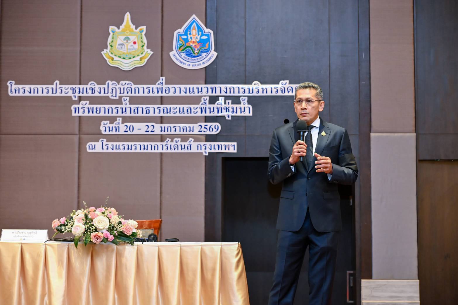 วันนี้(21 ม.ค. 69) นายธีระชุณ บุญสิทธิ์ อธิบดีกรมทรัพยากรน้ำ เป็นประธานในพิธีเปิดโครงการประชุมเชิงปฏิบัติการเพื่อวางแนวทางการบริหารจัดการทรัพยากรน้ำสาธารณะและพื้นที่ชุ่มน้ำ พร้อมนายเวสารัช โสภณดิเรกรัตน์ รองอธิบดีกรมทรัพยากรน้ำ โดยมีนางสาวบุญธิดา เปล่งแสง ผู้อำนวยการกองอนุรักษ์ทรัพยากรน้ำ กล่าวรายงานในพิธีเปิดฯ พร้อมผู้บริหาร สำนักงานทรัพยากรน้ำที่ 1-11 และเจ้าหน้าที่กรม เข้าร่วมเพื่อเสริมสร้างองค์ความรู้และพัฒนาทักษะให้แก่บุคลากร ในมิติทางด้านสิ่งแวดล้อม วัฒนธรรม และความหลากหลายทางชีวภาพ ให้สามารถประยุกต์ใช้ในการปฏิบัติงาน พร้อมทั้งแลกเปลี่ยนประสบการณ์และรับฟังความคิดเห็น เกี่ยวกับเครื่องมือในการบริหารจัดการพื้นที่ชุ่มน้ำ ณ โรงแรมรามาการ์เด้นส์ กรุงเทพฯ