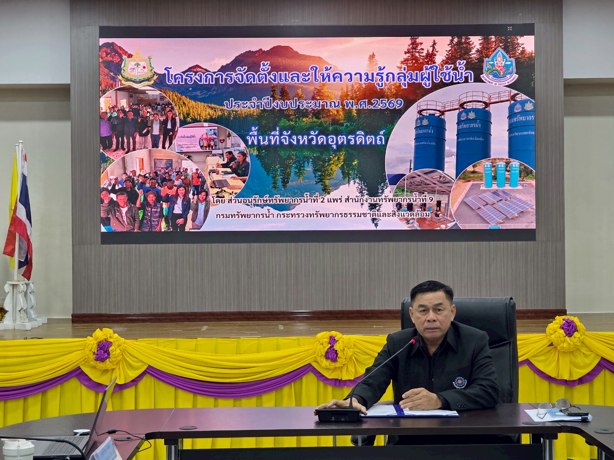 วันจันทร์ที่ 12 มกราคม 2569 นายนิมิตร โคตรบัว ผู้อำนวยการสำนักงานทรัพยากรน้ำที่ 9 มอบหมายให้ส่วนอนุรักษ์ทรัพยากรน้ำที่ 2 แพร่ นำโดยนางสาวจิรัชยา จันทร์คำ ผู้อำนวยการส่วนอนุรักษ์ทรัพยากรน้ำที่ 2 แพร่ พร้อมด้วยเจ้าหน้าหน้าที่ ดำเนินการจัดโครงการจัดตั้งและให้ความรู้กลุ่มผู้ใช้น้ำ โครงการก่อสร้างระบบกระจายน้ำด้วยพลังงานแสงอาทิตย์ลำน้ำปาด หมู่ที่ 4,6,7 ตำบลแสนตอ อำเภอน้ำปาด จังหวัดอุตรดิตถ์ ณ ห้องประชุมเทศบาลตำบลน้ำปาด ตำบลน้ำปาด อำเภอน้ำปาด จังหวัดอุตรดิตถ์
