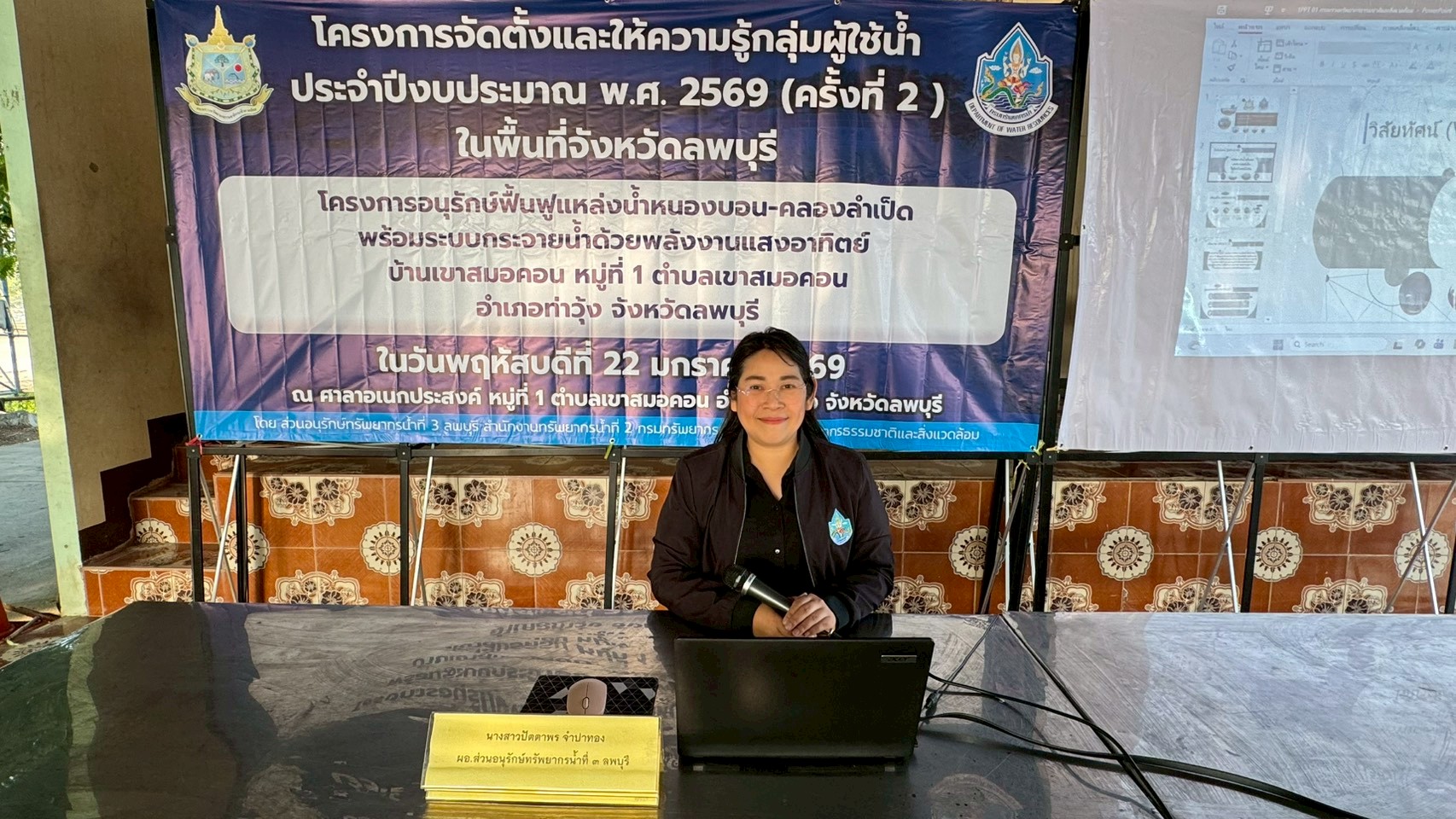 สำนักงานทรัพยากรน้ำที่ 2 โดยส่วนอนุรักษ์ทรัพยากรน้ำที่ 3 ลพบุรี ดำเนินการจัดตั้งและให้ความรู้กลุ่มผู้ใช้น้ำโครงการอนุรักษ์ฟื้นฟูแหล่งน้ำหนองบอน-คลองลำเป็ด พร้อมระบบกระจายน้ำด้วยพลังงานแสงอาทิตย์ บ้านเขาสมอคอน หมู่ที่ 1 ตำบลเขาสมอคอน อำเภอท่าวุ้ง จังหวัดลพบุรี ณ ศาลาอเนกประสงค์ หมู่ที่ 1 ตำบลเขาสมอคอน อำเภอท่าวุ้ง จังหวัดลพบุรีเพื่อให้ประชาชนในพื้นที่โครงการมีส่วนร่วมในการบริหารจัดการอนุรักษ์ พัฒนาแหล่งน้ำและทรัพยากรน้ำ รับทราบข้อมูล ข้อคิดเห็น และเสริมสร้างศักยภาพให้ประชาชนผู้ใช้น้ำจากแหล่งน้ำของกรมทรัพยากรน้ำ มีความรู้ความเข้าใจเกี่ยวกับการบริหารจัดการทรัพยากรน้ำแบบบูรณาการ การอนุรักษ์ ฟื้นฟูทรัพยากรน้ำ และทรัพยากรอื่นๆ ที่เกี่ยวข้อง รวมถึงส่งเสริมให้มีการจัดตั้งกลุ่มผู้ใช้น้ำ/เครือข่าย เพื่อการบริหารจัดการทรัพยากรน้ำในพื้นที่ได้อย่างมีประสิทธิภาพและเกิดประโยชน์สูงสุด โดยมีนายเกษม ประภากร นายกองค์การบริหารส่วนตำบลเขาสมอคอน เป็นประธานกล่าวเปิดโครงการฯ ซึ่งมีวิทยากรจากสำนักงานเกษตร อำเภอท่าวุ้ง ส่วนพัฒนาและฟื้นฟูแหล่งน้ำ และส่วนการจัดสรรน้ำที่ 1 สระบุรี สำนักงานทรัพยากรน้ำที่ 2 ร่วมให้ความรู้เสริมศักยภาพกลุ่มผู้ใช้น้ำในครั้งนี้ด้วย