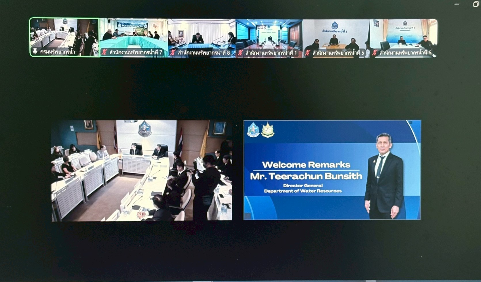 ในการนี้ นายอนันต์ โพธิ์พันธุ์ ผู้อำนวยการสำนักงานทรัพยากรน้ำที่ 7 พร้อมด้วยคณะผู้บริหารและเจ้าหน้าที่ที่เกี่ยวข้อง เข้าร่วมประชุม ผ่านระบบสื่ออิเล็กทรอนิกส์ (Zoom Meeting) ณ ห้องประชุม 2 ชั้น 2 อาคารสำนักงานทรัพยากรน้ำที่ 7