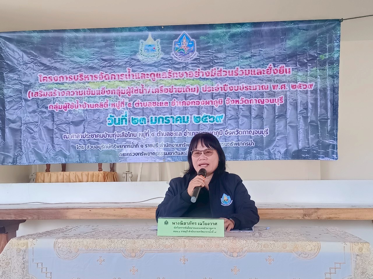 วันที่ 23 มกราคม 2569 นายอนันต์ โพธิ์พันธุ์ ผู้อำนวยการสำนักงานทรัพยากรน้ำที่ 7 มอบหมายให้ส่วนอนุรักษ์ทรัพยากรน้ำที่ 1 ราชบุรี จัดโครงการบริหารจัดการน้ำและดูแลรักษาอย่างมีส่วนร่วมและยั่งยืน (เสริมสร้างความเข้มแข็งกลุ่มผู้ใช้น้ำ/เครือข่ายเดิม) ประจำปีงบประมาณ พ.ศ.2569 สำหรับกลุ่มผู้ใช้น้ำบ้านคลิตี้ หมู่ที่ 4 ตำบลชะแล อำเภอทองผาภูมิ จังหวัดกาญจนบุรี ณ ศาลาประชาคม บ้านทุ่งเสือโทน โดยมี นายอนุสรณ์ สง่าแสง นายอำเภอทองผาภูมิ เป็นประธาน ผู้เข้าร่วมประชุมประกอบด้วย หน่วยงานราชการ ผู้นำท้องถิ่น ผู้นำท้องที่ สมาชิกกลุ่มผู้ใช้น้ำบ้านคลิตี้ จำนวน 82 คน โดยมีวัตถุประสงค์เพื่อสนับสนุนกลุ่มเครือข่ายให้มีการบริหารจัดการน้ำ สนับสนุนกิจกรรมการดำเนินงานของกลุ่มให้มีการบริหารจัดการกลุ่มเครือข่ายเดิมอย่างต่อเนื่อง เพิ่มความเข้มแข็งของกลุ่มผู้ใช้น้ำ การรวมกลุ่มดูแลบำรุงรักษาแหล่งน้ำให้อยู่ในสภาพดีมีประสิทธิภาพ สามารถจัดสรรแบ่งปันน้ำระหว่างสมาชิกในกลุ่มอย่างเป็นธรรมเกิดประโยชน์สูงสุดเสริมสร้างศักยภาพการบริหารจัดการทรัพยากรน้ำ ผลักดันสู่องค์กรผู้ใช้น้ำ อีกทั้งได้บรรยายให้ความรู้เกี่ยวกับการบริหารจัดการน้ำ การจัดทำฝายชะลอน้ำ และกิจกรรมสาธารณประโยชน์