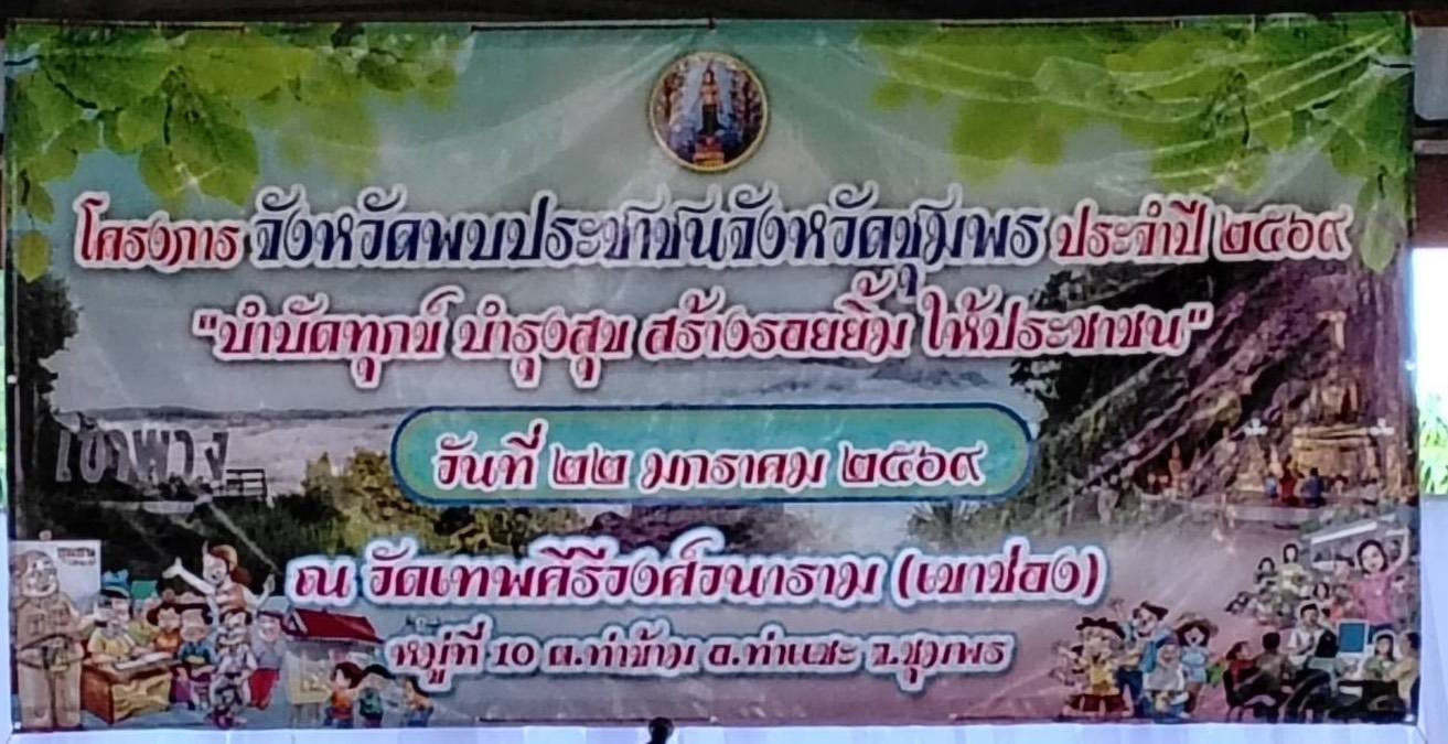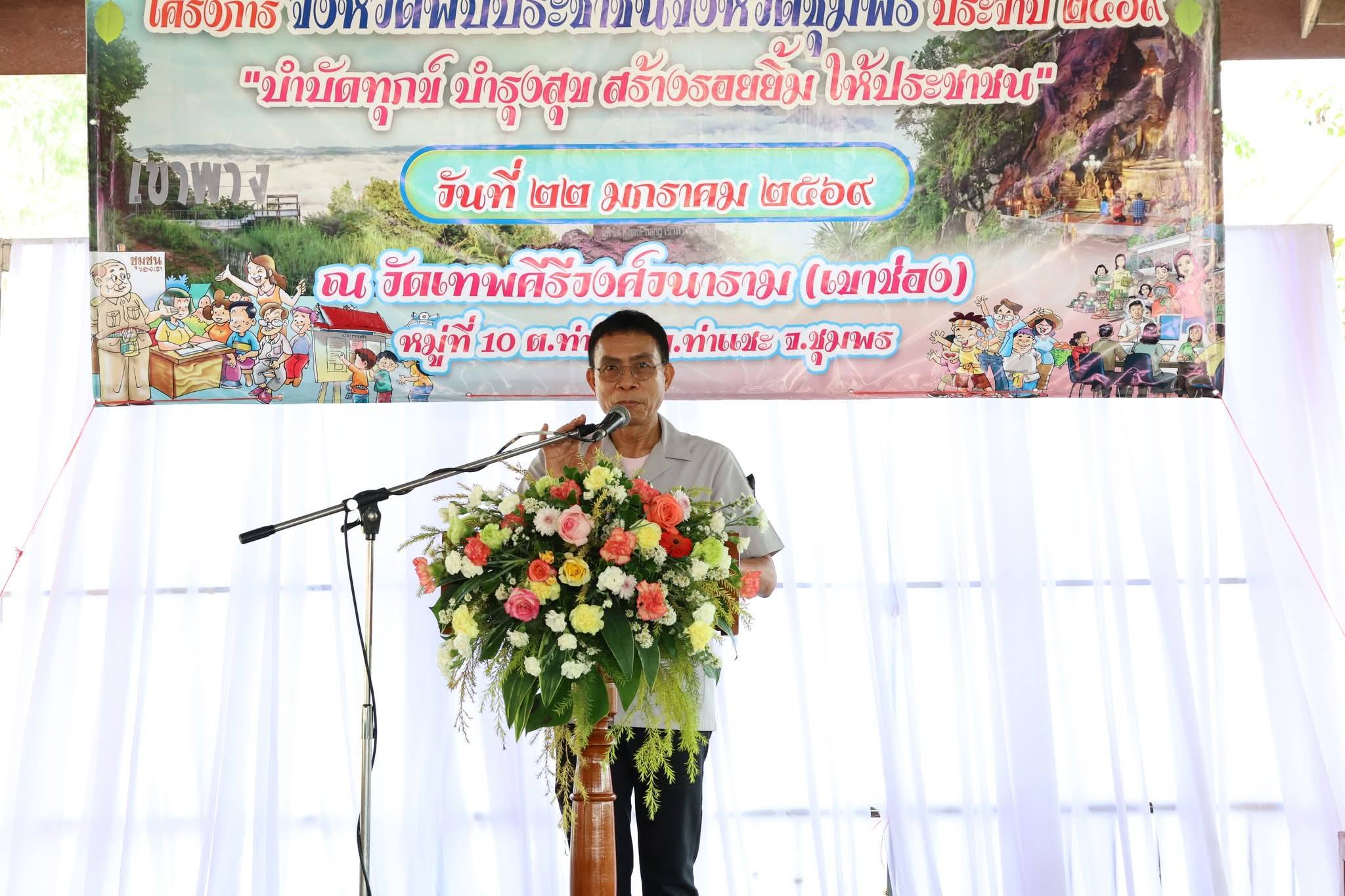 สำนักงานทรัพยากรน้ำที่ 10 โดยส่วนอนุรักษ์ทรัพยากรน้ำที่ 3 ชุมพร เข้าร่วมโครงการจังหวัดพบประชาชนจังหวัดชุมพร "หน่วยบำบัดทุกข์ บำรุงสุข สร้างรอยยิ้มให้ประชาชน" ประจำปีงบประมาณ พ.ศ. 2569 ครั้งที่ 2 ณ วัดเทพคีรีวงศ์วนาราม หมู่ที่ 10 ตำบลท่าข้าม อำเภอท่าแซะ จังหวัดชุมพร โดยมี นายสกล ดำรงเกียรติกล รองผู้ว่าราชการจังหวัดชมพร เป็นประธาน