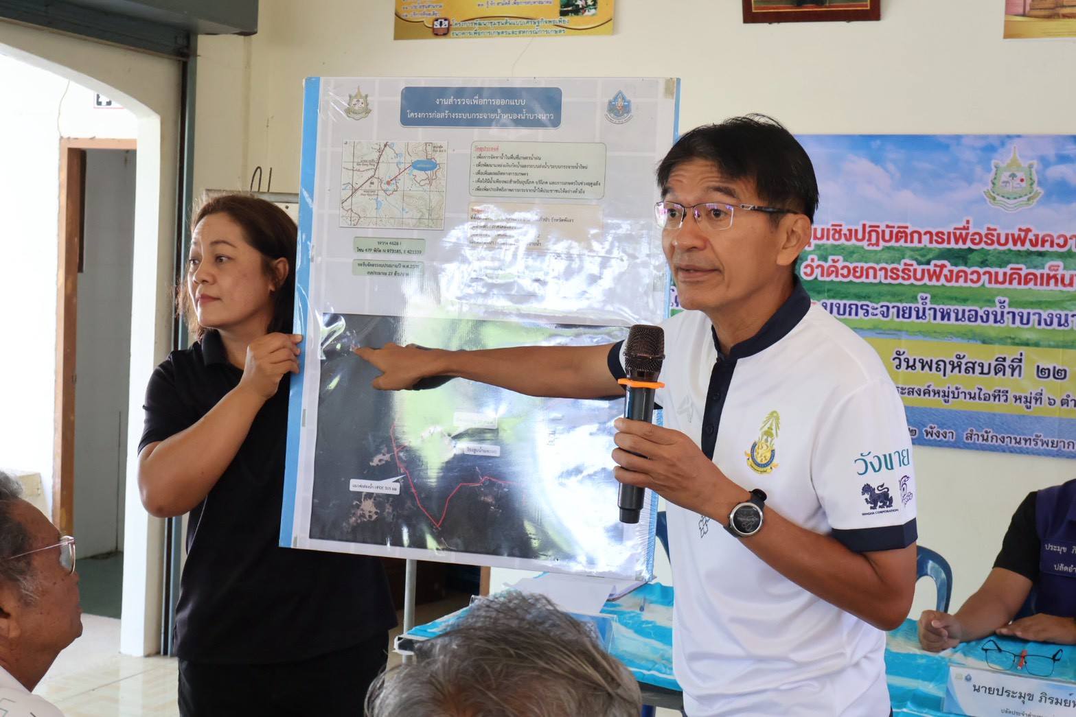 อนึ่ง โครงการมีวัตถุประสงค์เพื่อให้มีการดำเนินการตามระเบียบสำนักนายกรัฐมนตรีว่าด้วยการรับฟังความคิดเห็นของประชาชน พ.ศ. 2548 และให้ประชาชนมีความเข้าใจที่ถูกต้องเกี่ยวกับโครงการของกรมทรัพยากรน้ำ โดยผู้เข้าร่วมประชุมประกอบด้วย หน่วยงานภาครัฐ องค์กรปกครองส่วนท้องถิ่น กลุ่มผู้ใช้น้ำ เครือข่ายและประชาชน และผู้มีส่วนได้ส่วนเสียจากการดำเนินการ มติที่ประชุม มีฉันทามติเห็นชอบ ให้ดำเนินโครงการก่อสร้างระบบกระจายน้ำหนองน้ำบางนาว ตำบลบางม่วง อำเภอตะกั่วป่า จังหวัดพังงาได้
