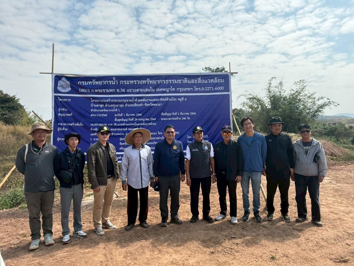 ตามข้อสั่งการของ ท่านธีระชุณ บุญสิทธิ์ อธิบดีกรมทรัพยากรน้ำ ให้เร่งรัดการดำเนินงานโครงการประจำปีงบประมาณปี 2569 โดย นางสาวสุพัดสอน สีมืด ผู้อำนวยการสำนักงานทรัพยากรน้ำที่ 1 หมอบหมายให้ นายศุภักษร ผลเจริญ ผู้อำนวยการส่วนพัฒนาและฟื้นฟูแหล่งน้ำ พร้อมด้วยเจ้าหน้าที่ ลงพื้นที่เร่งรัด/ติดตาม โครงการระบบกระจายน้ำด้วยพลังงานแสงอาทิตย์ห้วยโป่ง หมู่ที่ 6 บ้านผาสุข อำเภอเชียงคำ จังหวัดพะเยา โครงการดังกล่าวฯ มีงานท่อส่งน้ำ ความยาวไม่น้อยกว่า 5,663 ม. , งานก่อสร้างอาคารระบายอากาศ จำนวน 18 ชุด , งานอาคารระบายตะกอน จำนวน 17 ชุด , สร้างอาคารจุดปล่อยน้ำ 2 ด้าน จำนวน 25 แห่ง , มีงานก่อสร้างระบบกระจายน้ำด้วยพลังงานแสงอาทิตย์ ขนาด 11 กิโลวัตต์ จำนวน 1 แห่ง , หอถังแชมเปญ ขนาด 100 ลบ.ม. จำนวน 1 แห่ง ถังเก็บน้ำ คสล. ขนาด 200 ลบ.ม. จำนวน 2 ถัง ปัจจุบันมีผลการดำเนินงาน 40% ประชาชนในพื้นทีได้รับประโยชน์กว่า 60 ไร่ 30 ครัวเรือน
