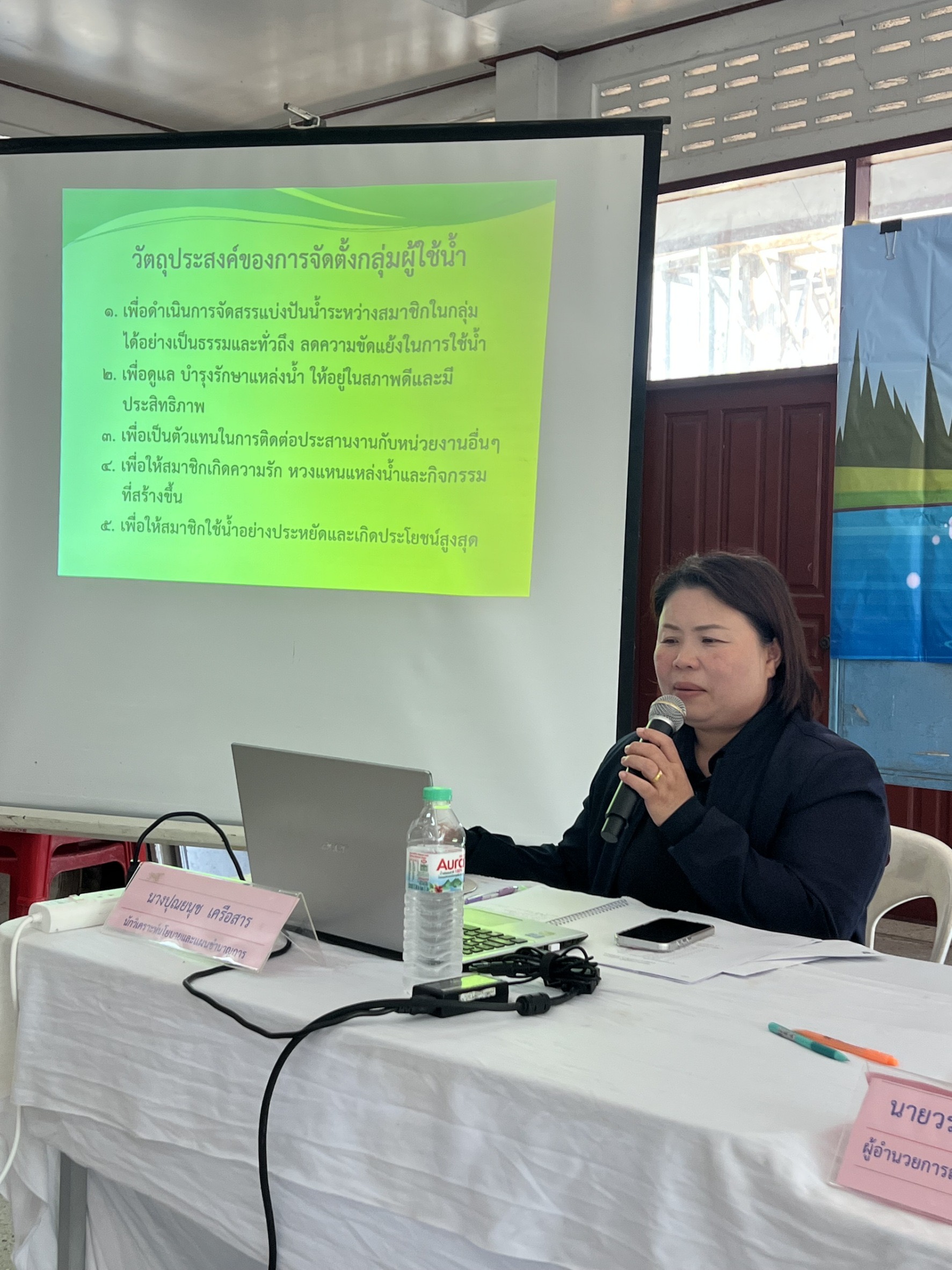 โดยมีวัตถุประสงค์เพื่อสนับสนุนการมีส่วนร่วมของประชาชน พัฒนาองค์ความรู้ เผยแพร่ประชาสัมพันธ์และสร้างเครือข่ายการบริหารจัดการน้ำที่มีความเข้มแข็ง รวมถึงสร้างความตระหนักรู้เรื่องการ จัดการน้ำอย่างยั่งยืน การบริหารจัดการระบบน้ำ ลดความขัดแย้งในการใช้น้ำ เพิ่มประสิทธิภาพการใช้น้ำเกษตร ส่งเสริมการอนุรักษ์ทรัพยากรน้ำ และทำให้ผู้ใช้มีส่วนร่วมในการพัฒนาและฟื้นฟูแหล่งน้ำ ซึ่งนำไปสู่การใช้น้ำอย่างมีคุณภาพและเกิดประโยชน์สูงสุดต่อชุมชนและสิ่งเเวดล้อม