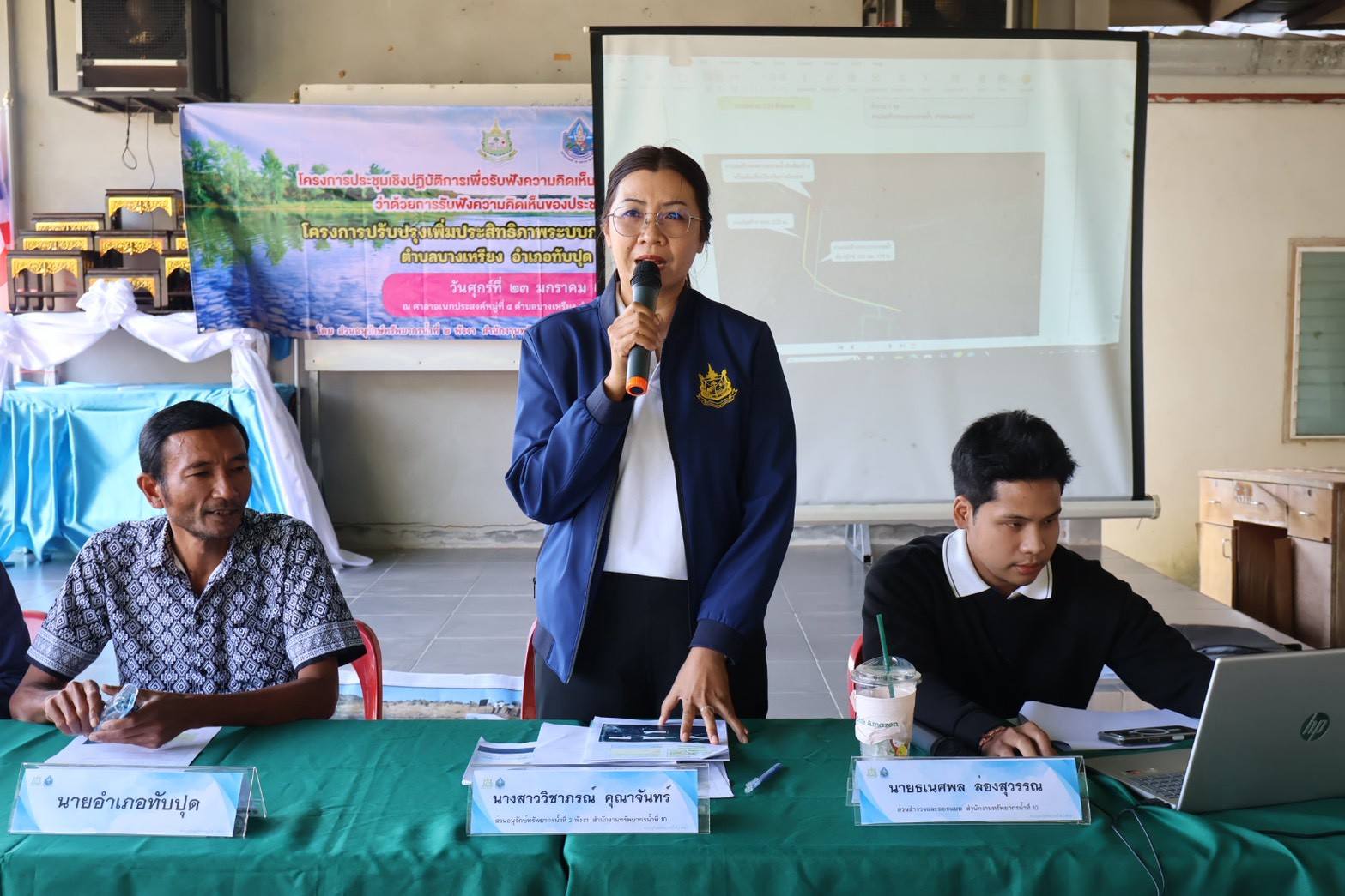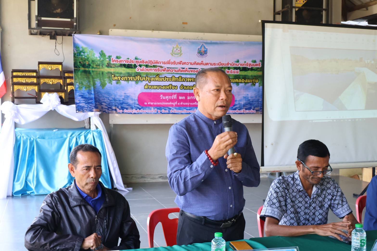สำนักงานทรัพยากรน้ำที่ 10 โดยส่วนอนุรักษ์ทรัพยากรน้ำที่ 2 พังงา ดำเนิน “โครงการประชุมเชิงปฏิบัติการเพื่อรับฟังความคิดเห็นตามระเบียบสำนักนายกรัฐมนตรี ว่าด้วยการรับฟังความคิดเห็นของประชาชน พ.ศ. 2548" โครงการปรับปรุงเพิ่มประสิทธิภาพระบบกระจายน้ำฝายคลองมะรุ่ย ตําบลบางเหรียง อําเภอทับปุด จังหวัดพังงา ณ ศาลาอเนกประสงค์หมู่ที่ 4 ตำบลบางเหรียง อำเภอทับปุด จังหวัดพังงา