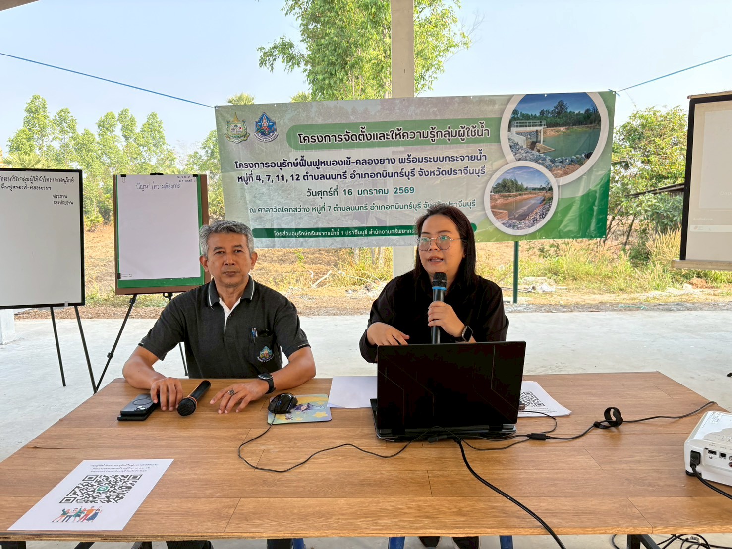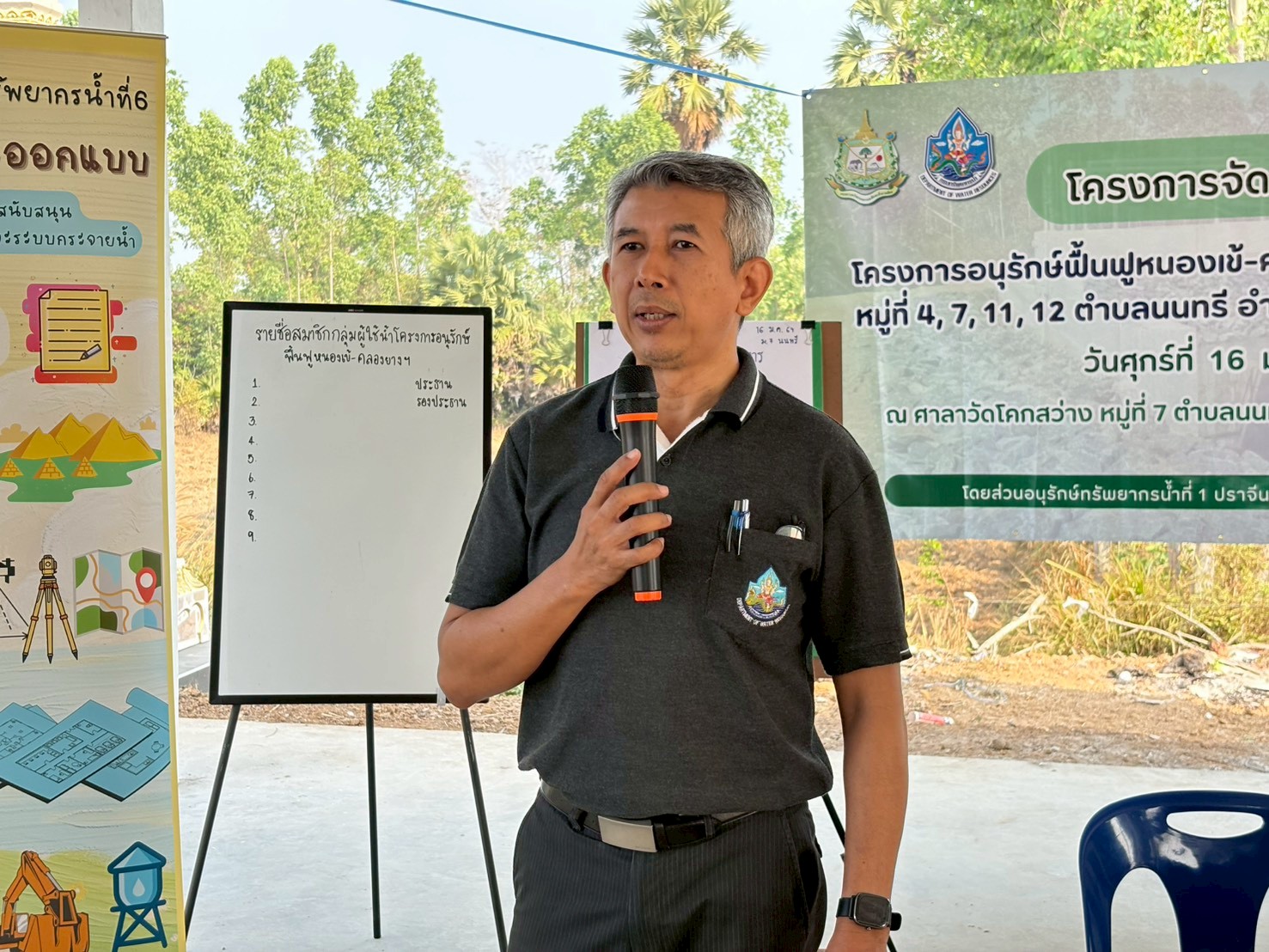 วันศุกร์ที่ 16 มกราคม 2569 สำนักงานทรัพยากรน้ำที่ 6 โดยส่วนอนุรักษ์ทรัพยากรน้ำที่ 1 ปราจีนบุรี นำโดยนายกัมปนาท ภักดีโชติ ผู้อำนวยการส่วนอนุรักษ์ทรัพยากรน้ำที่ 1 ปราจีนบุรี พร้อมด้วยเจ้าหน้าที่ ดำเนินการจัดโครงการจัดตั้งและให้ความรู้กลุ่มผู้ใช้น้ำโครงการอนุรักษ์ฟื้นฟูหนองเข้-คลองยาง พร้อมระบบกระจายน้ำ หมู่ที่ 4, 7, 11, 12 ตำบลนนทรี อำเภอกบินทร์บุรี จังหวัดปราจีนบุรี ณ ศาลาวัดโคกสว่าง หมู่ที่ 7 ตำบลนนทรี อำเภอกบินทร์บุรี จังหวัดปราจีนบุรี ซึ่งมีวัตถุประสงค์เพื่อส่งเสริมความรู้การมีส่วนร่วมในการบริหารจัดการทรัพยากรน้ำในพื้นที่ให้เกิดการรวมกลุ่ม ดูแลบำรุงรักษาแหล่งน้ำให้อยู่ในสภาพดีและเกิดประสิทธิภาพ สามารถจัดสรร แบ่งปันน้ำระหว่างสมาชิกในกลุ่มได้อย่างเป็นธรรมและเกิดประโยชน์สูงสุด