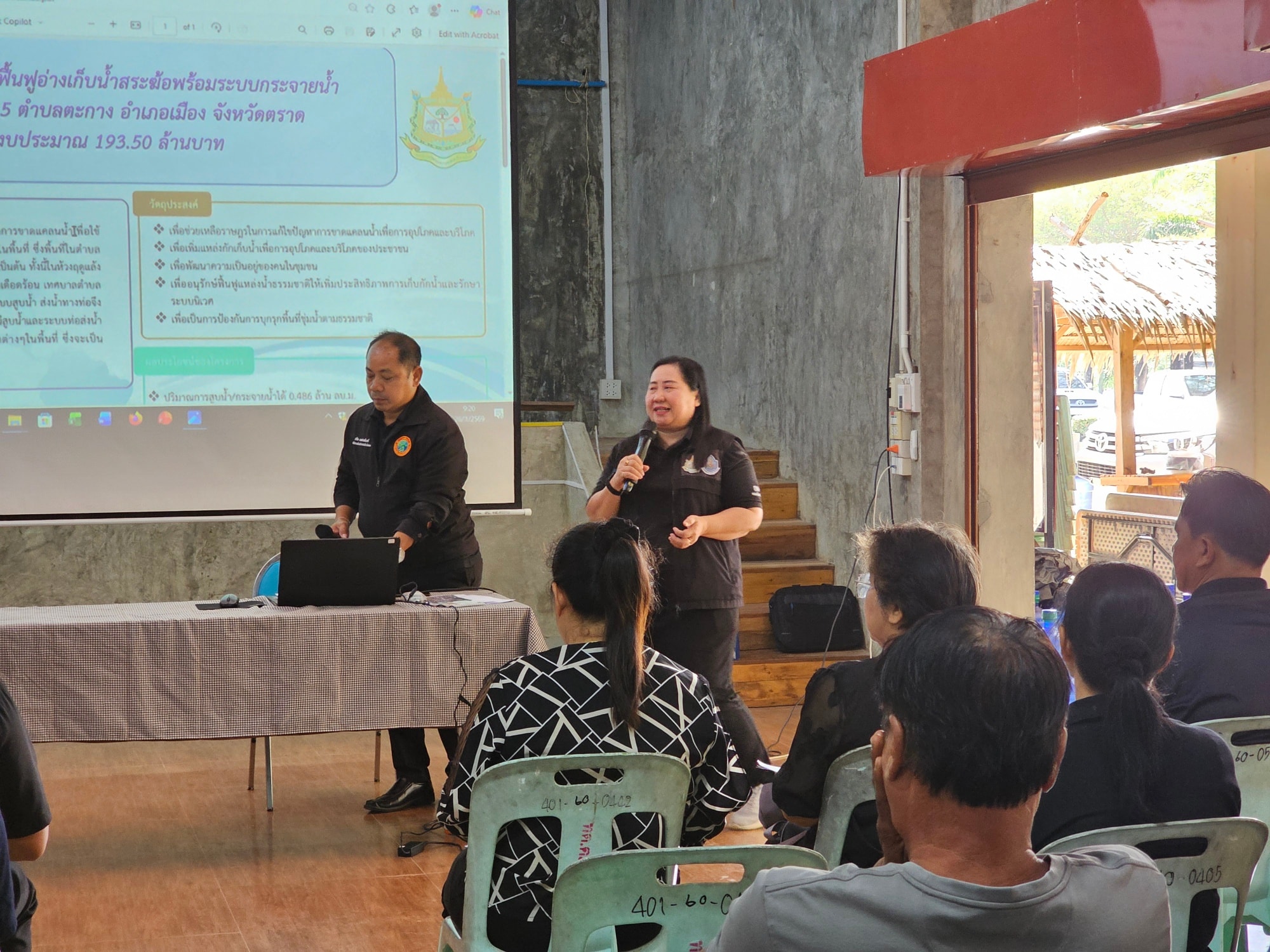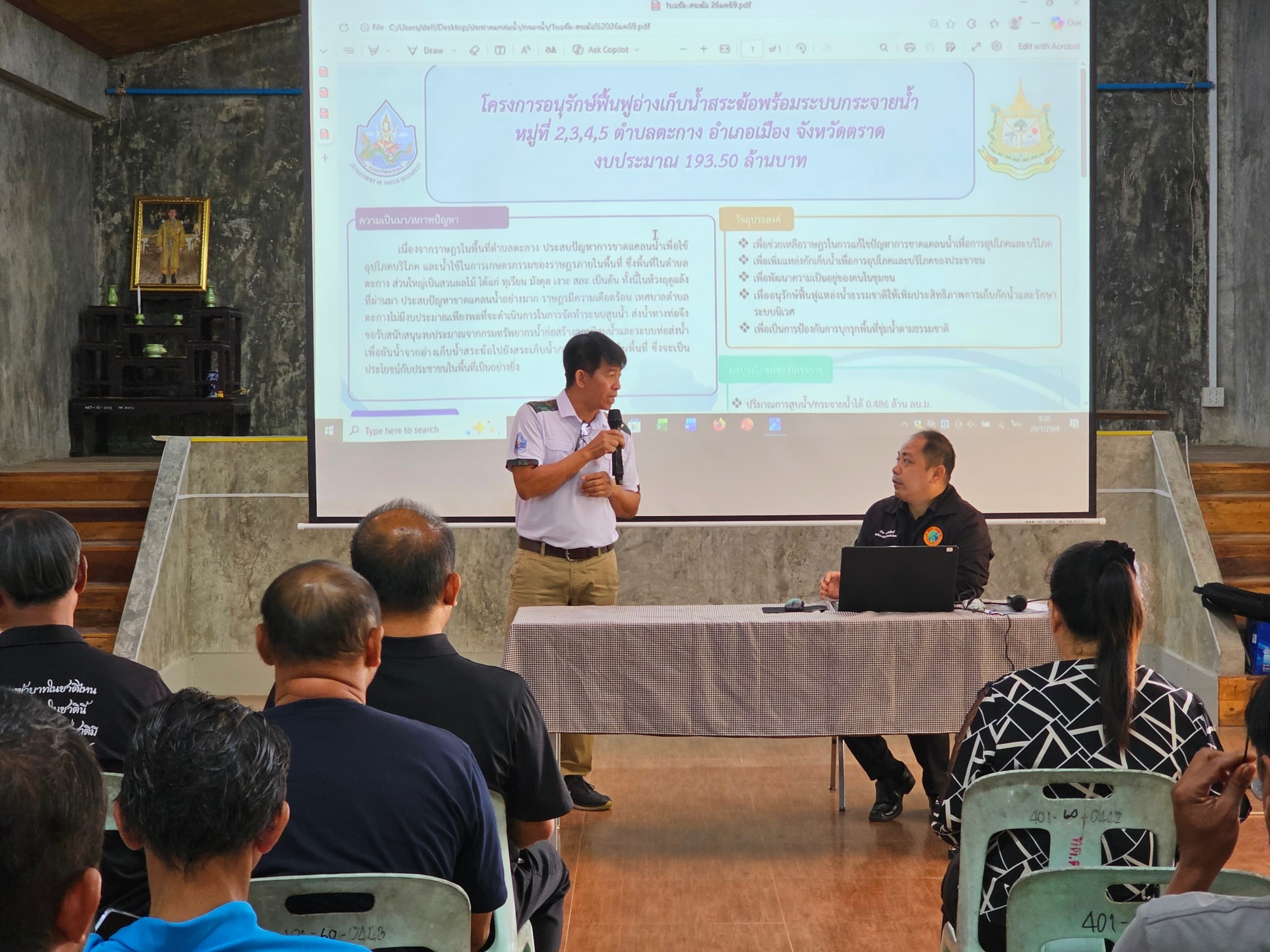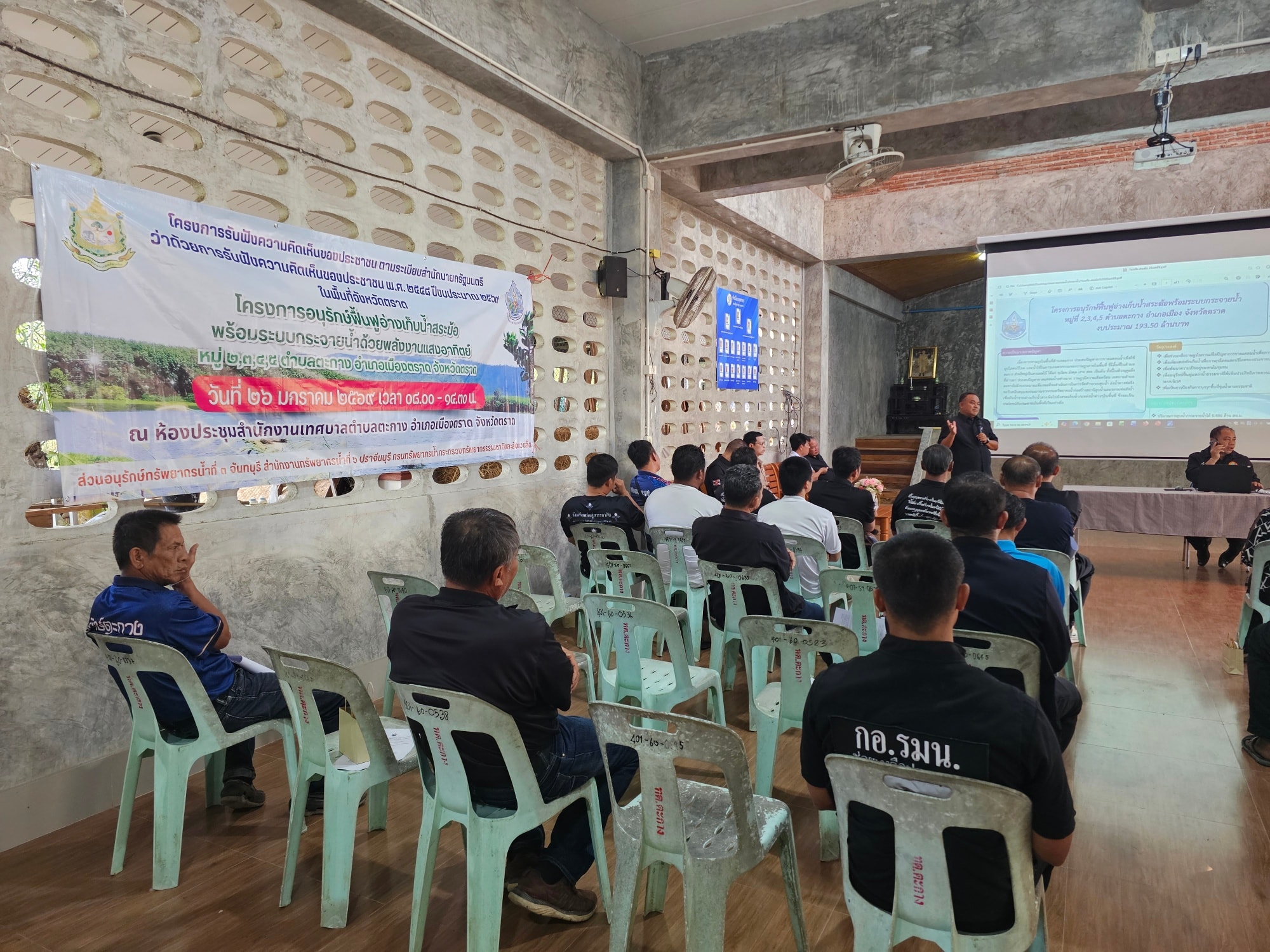 วันที่ 26 มกราคม 2569 สำนักงานทรัพยากรน้ำที่ 6 โดยส่วนอนุรักษ์ทรัพยากรน้ำที่ 3 จันทบุรี นำโดยนางสาวศลิษา พานิชผล ผู้อำนวยการส่วนอนุรักษ์ทรัพยากรน้ำที่ 3 จันทบุรี พร้อมด้วยเจ้าหน้าที่ ดำเนินการรับฟังความคิดเห็นของประชาชน พ.ศ.2548 โครงการอนุรักษ์ฟื้นฟูอ่างเก็บน้ำสระฆ้อ พร้อมระบบกระจายน้ำด้วยพลังงานแสงอาทิตย์ หมู่ 2,3,4,5 ตำบลตะกาง อำเภอเมืองตราด จังหวัดตราด โดยมีเจ้าหน้าที่สำนักงานทรัพยากรน้ำที่ 6 ร่วมเป็นวิทยากร โครงการฯ ดังกล่าวมีวัตถุประสงค์เพื่อช่วยเหลือประชาชนจากสถานการณ์ภัยแล้ง บรรเทาปัญหาอุทกภัยในพื้นที่ เป็นแหล่งกักเก็บน้ำไว้ใช้ในช่วงฤดูแล้งสำหรับอุปโภค บริโภค และเกษตรกรรม ปรับปรุงระบบนิเวศให้เกิดสมดุลกลับคืนสู่ธรรมชาติ โดยมีผู้แทนกองอำนวยการรักษาความมั่นคงภายในจังหวัดตราด ผู้แทนอำเภอเมืองตราด ผู้แทนสำนักงานทรัพยากรธรรมชาติและสิ่งแวดล้อมจังหวัดตราด นายกเทศมนตรีตำบลตะกาง รองนายกเทศมนตรีตำบลตะกาง ประชาชนและผู้มีส่วนได้ส่วนเสียในพื้นที่เข้าร่วมรับฟังความคิดเห็นฯ จำนวน 44 คน