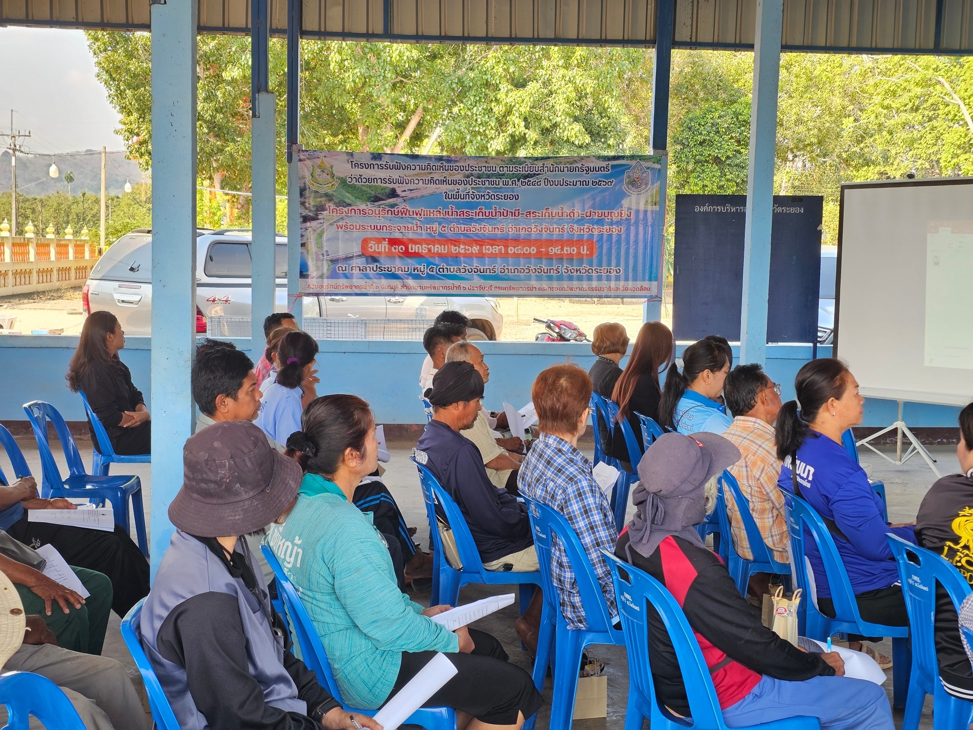 วันที่ 30 มกราคม 2569 สำนักงานทรัพยากรน้ำที่ 6 โดยส่วนอนุรักษ์ทรัพยากรน้ำที่ 3 จันทบุรี นำโดยนางสาวศลิษา พานิชผล ผู้อำนวยการส่วนอนุรักษ์ทรัพยากรน้ำที่ 3 จันทบุรี พร้อมด้วยเจ้าหน้าที่ ดำเนินการรับฟังความคิดเห็นของประชาชน พ.ศ.2548 โครงการอนุรักษ์ฟื้นฟูแหล่งน้ำสระเก็บน้ำป้ามี-สระเก็บน้ำดำ-ฝายบุญยิ่ง พร้อมระบบกระจายน้ำ หมู่ 5 ตำบลวังจันทร์ อำเภอวังจันทร์ จังหวัดระยอง โดยมีเจ้าหน้าที่สำนักงานทรัพยากรน้ำที่ 6 ร่วมเป็นวิทยากร โครงการฯ ดังกล่าวมีวัตถุประสงค์ เพื่อช่วยเหลือประชาชนจากสถานการณ์ภัยแล้ง บรรเทาปัญหาอุทกภัยในพื้นที่ เป็นแหล่งกักเก็บน้ำไว้ใช้ในช่วงฤดูแล้งสำหรับอุปโภค บริโภค และเกษตรกรรม ปรับปรุงระบบนิเวศให้เกิดสมดุลกลับคืนสู่ธรรมชาติ โดยมีผู้แทนกองอำนวยการรักษาความมั่นคงภายในจังหวัดระยอง /ผู้แทนอำเภอเมืองระยอง /ผู้แทนสำนักงานทรัพยากรธรรมชาติและสิ่งแวดล้อมจังหวัดระยอง / ผู้แทนองค์การบริหารส่วนตำบลวังจันทร์ /ผู้ใหญ่บ้าน หมู่ 5 /ผู้ช่วยผู้ใหญ่บ้าน หมู่ 5 / ส.อบต.วังจันทร์ ประชาชนและผู้มีส่วนได้ส่วนเสียในพื้นที่เข้าร่วมรับฟังความคิดเห็นฯ จำนวน 40 คน