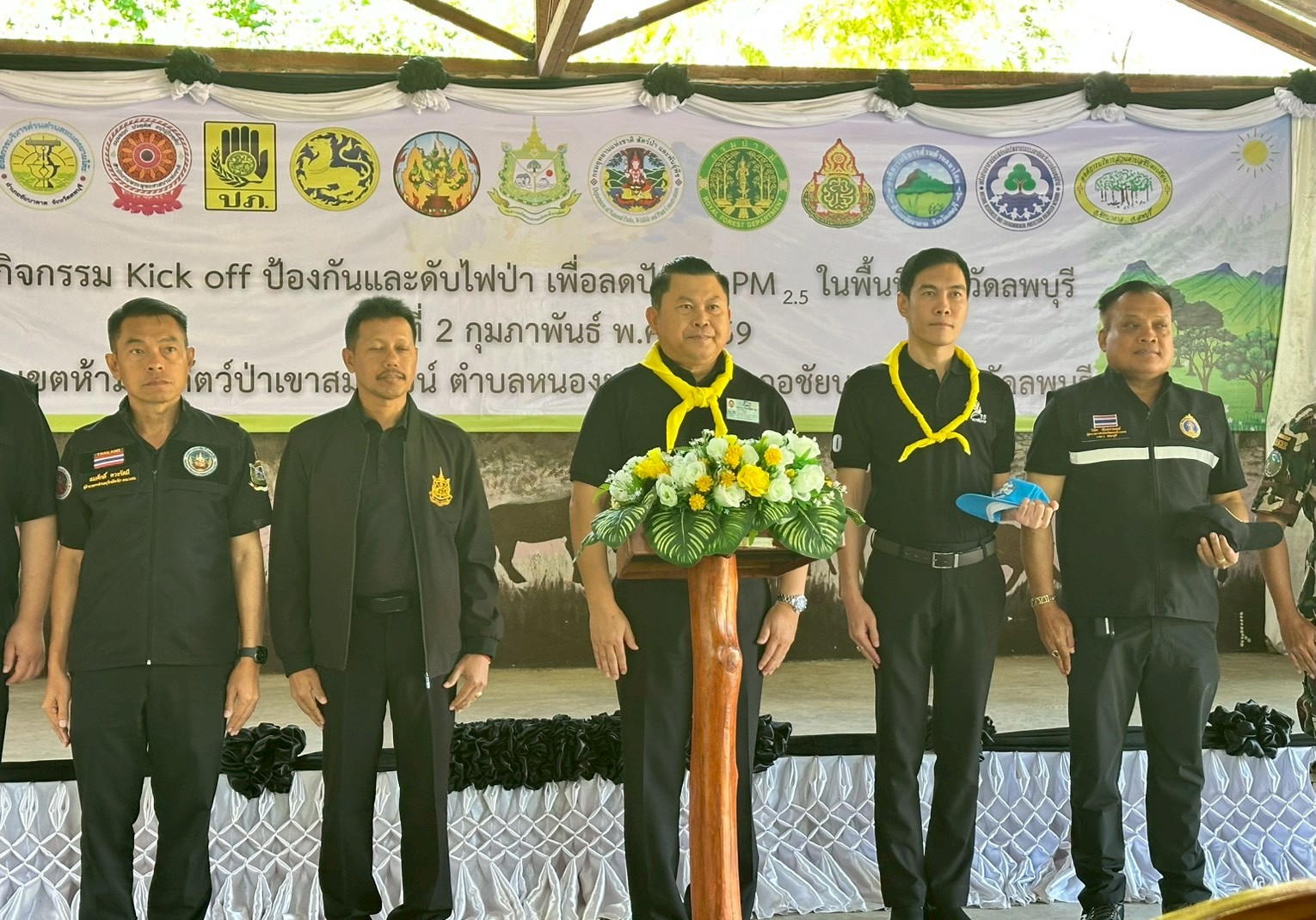 นายปรัชญา เปปะตัง รองผู้ว่าราชการจังหวัดลพบุรี เป็นประธานในพิธีเปิดกิจกรรม Kick off ป้องกันและดับไฟป่า เพื่อลดปัญหา PM ในพื้นที่จังหวัดลพบุรี ณ เขตห้ามล่าสัตว์ป่าเขาสมโภชน์ ตำบลหนองยายโต๊ะ อำเภอชัยบาดาล จังหวัดลพบุรี ภายใต้หัวข้อ “การอนุรักษ์ทรัพยากรธรรมชาติและสิ่งแวดล้อมเพื่อรองรับการเปลี่ยนแปลงสภาพภูมิอากาศ” จัดโดยสำนักงานทรัพยากรธรรมชาติและสิ่งแวดล้อมลพบุรี ในการนี้สำนักงานทรัพยากรน้ำที่ 2 โดยส่วนอนุรักษ์ทรัพยากรน้ำที่ 3 ลพบุรี เข้าร่วมกิจกรรมฯ ดังกล่าว