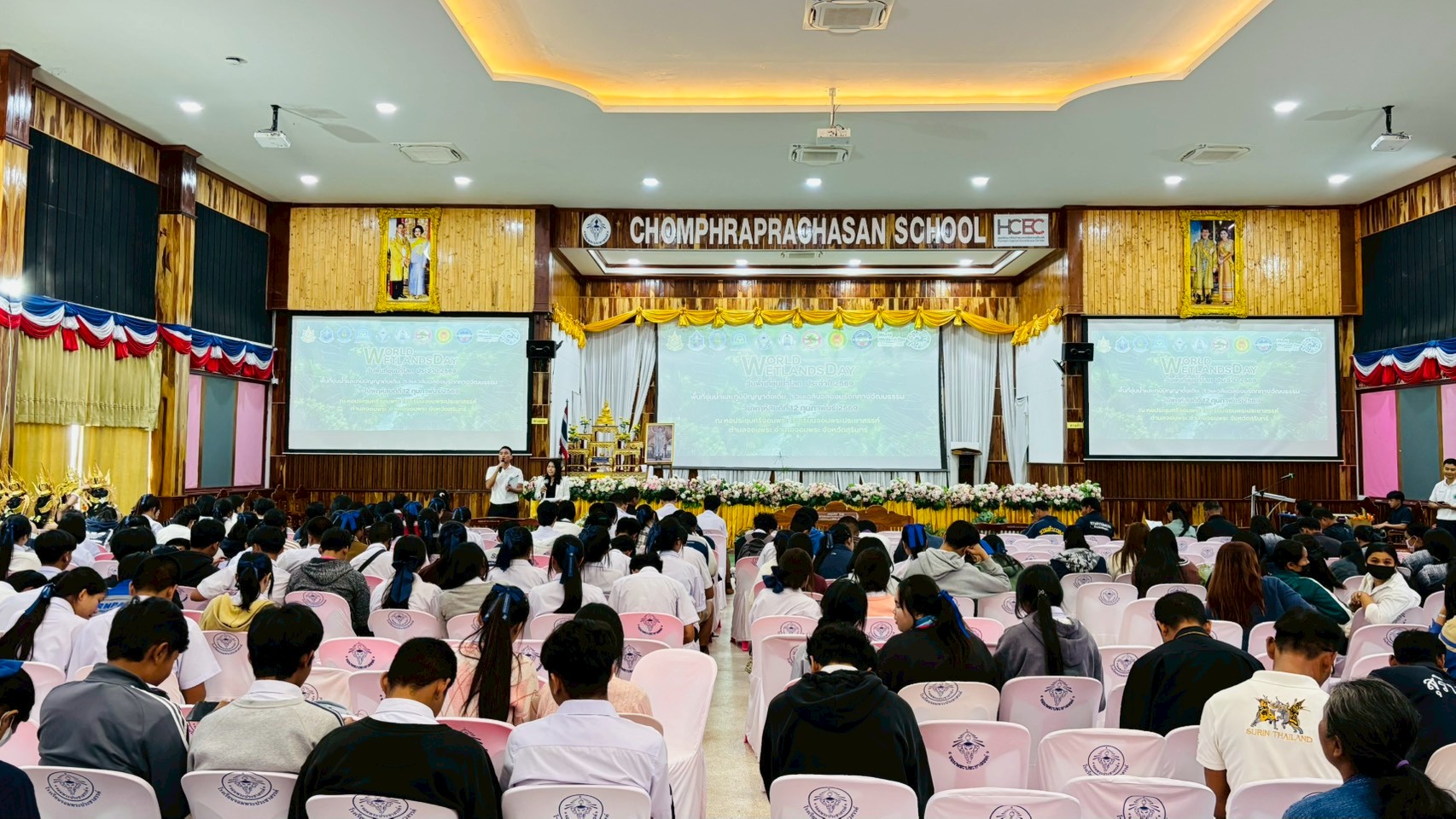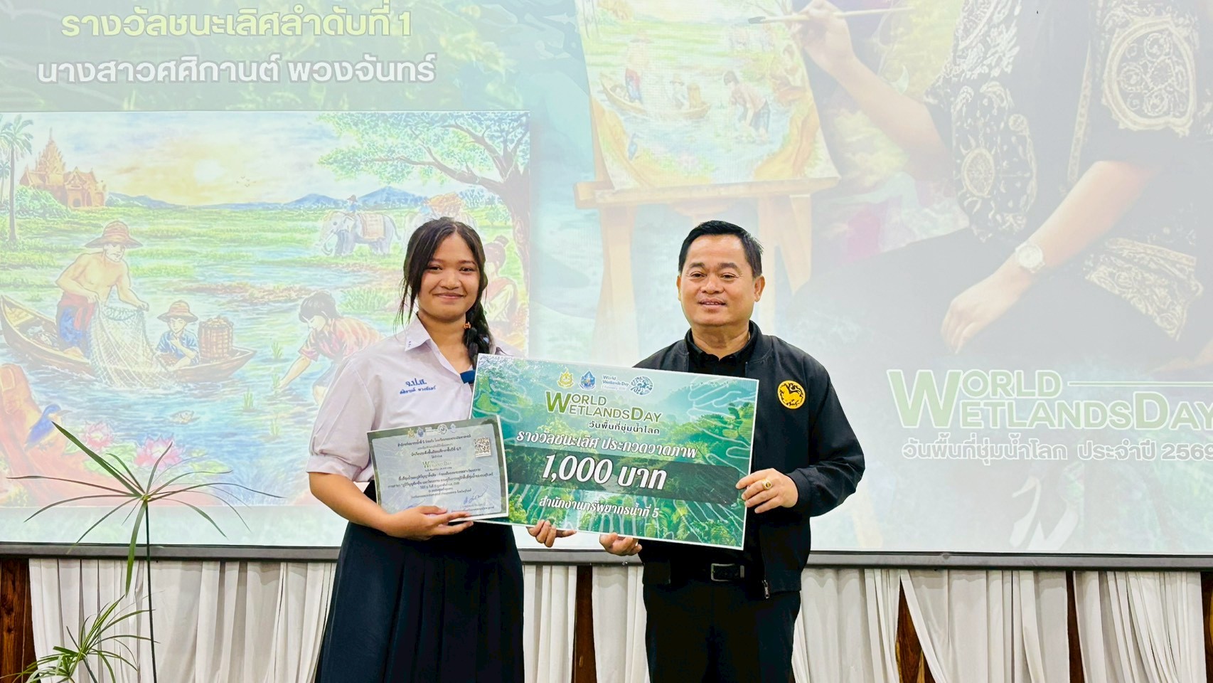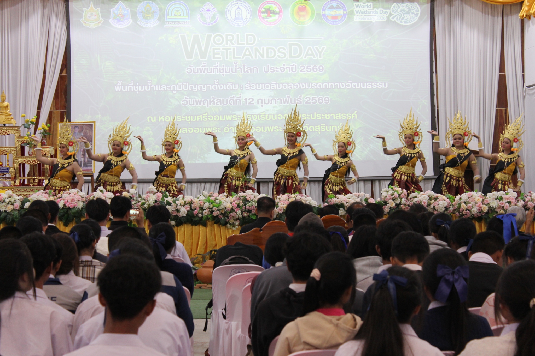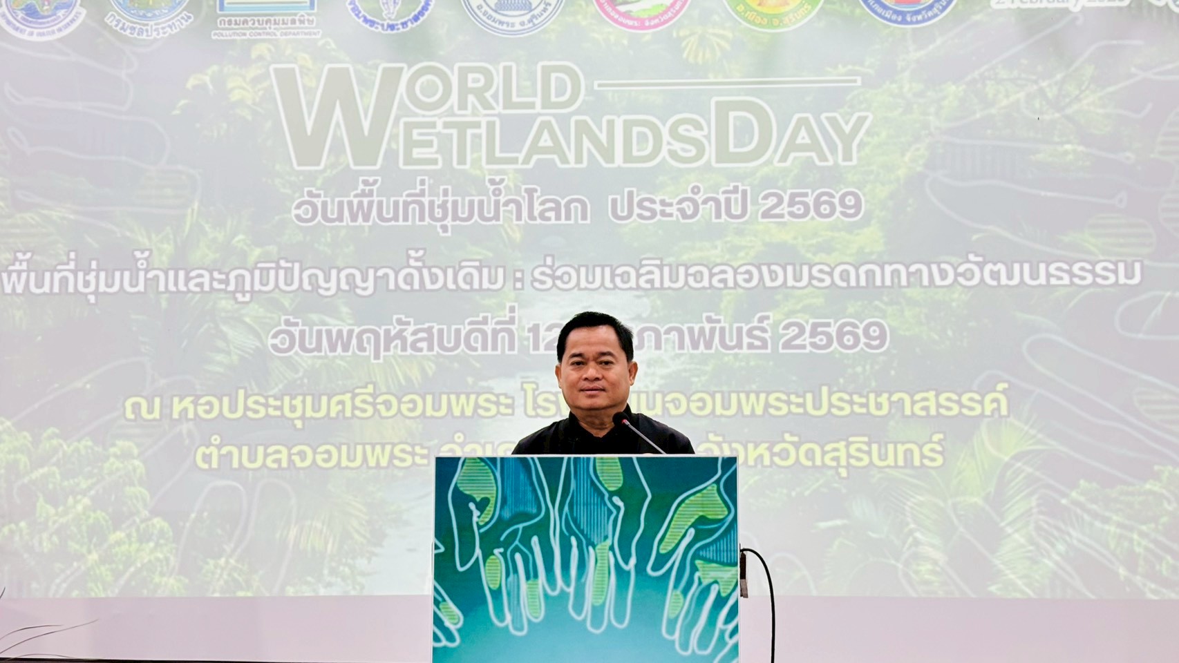 12 กุมภาพันธ์ 2569 นายกิตติ สัตย์ซื่อ รองผู้ว่าราชการจังหวัดสุรินทร์ เป็นประธานเปิดงาน เนื่องในวันพื้นที่ชุ่มน้ำโลก ประจำปี พ.ศ. 2569 ณ หอประชุมโรงเรียนจอมพระประชาสรรค์ ตำบลจอมพระ อำเภอจอมพระ จังหวัดสุรินทร์ โดยมี นายสุมิต สีสา ผู้อำนวยการสำนักงานทรัพยากรน้ำที่ 5 กล่าวรายงานวัตถุประสงค์ของการจัดงานฯ ซึ่งปีนี้จัดขึ้นในหัวข้อ “พื้นที่ชุ่มน้ำและภูมิปัญญาดั้งเดิม ร่วมฉลองมรดกทางวัฒนธรรม” เเสดงให้เห็นถึงความ สำคัญของพื้นที่ชุ่มน้ำต่อวิถีชีวิต เสริมสร้างความรู้ ความเข้าใจอันจะนำไปสู่การอนุรักษ์ รักษา และหวงแหนพื้นที่ชุ่มน้ำเเละภูมิปัญญาท้องถิ่น พร้อมต่อยอดสู่การบริหารจัดการทรัพยากรธรรมชาติอย่างชาญฉลาดเเละยั่งยืนในอนาคต กิจกรรมภายในงาน ประกอบด้วย การเสวนาในหัวข้อ “ภูมิปัญญาท้องถิ่น และวัฒนธรรมควบคู่กับการอนุรักษ์พื้นที่ชุ่มน้ำของคนสุรินทร์” กิจกรรมรณรงค์สร้างจิตสำนึกให้แก่เยาวชนตระหนักถึงคุณค่า และความสำคัญของพื้นที่ชุ่มน้ำ กิจกรรมประกวดวาดภาพ ในหัวข้อ “ความหลากหลายทางชีวภาพในพื้นที่ชุ่มน้ำ กับวิถีชีวิตของชาวสุรินทร์" ตลอดจนการจัดนิทรรศการของส่วนราชการ สถาบันการศึกษา และการจำหน่ายผลิตภัณฑ์ชุมชนท้องถิ่น ผู้เข้าร่วมงานประกอบด้วย ประชาชน เยาวชน สถาบันการศึกษา ภาคเอกชน หน่วยงานราชการ ข้าราชการและเจ้าหน้าที่กรมทรัพยากรน้ำ จำนวน 350 คน