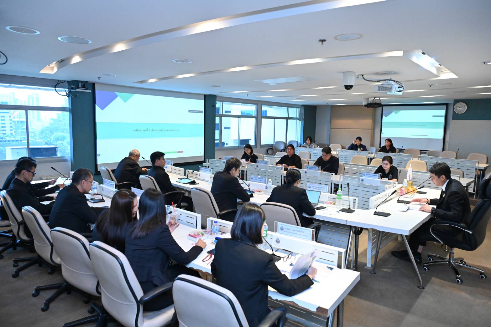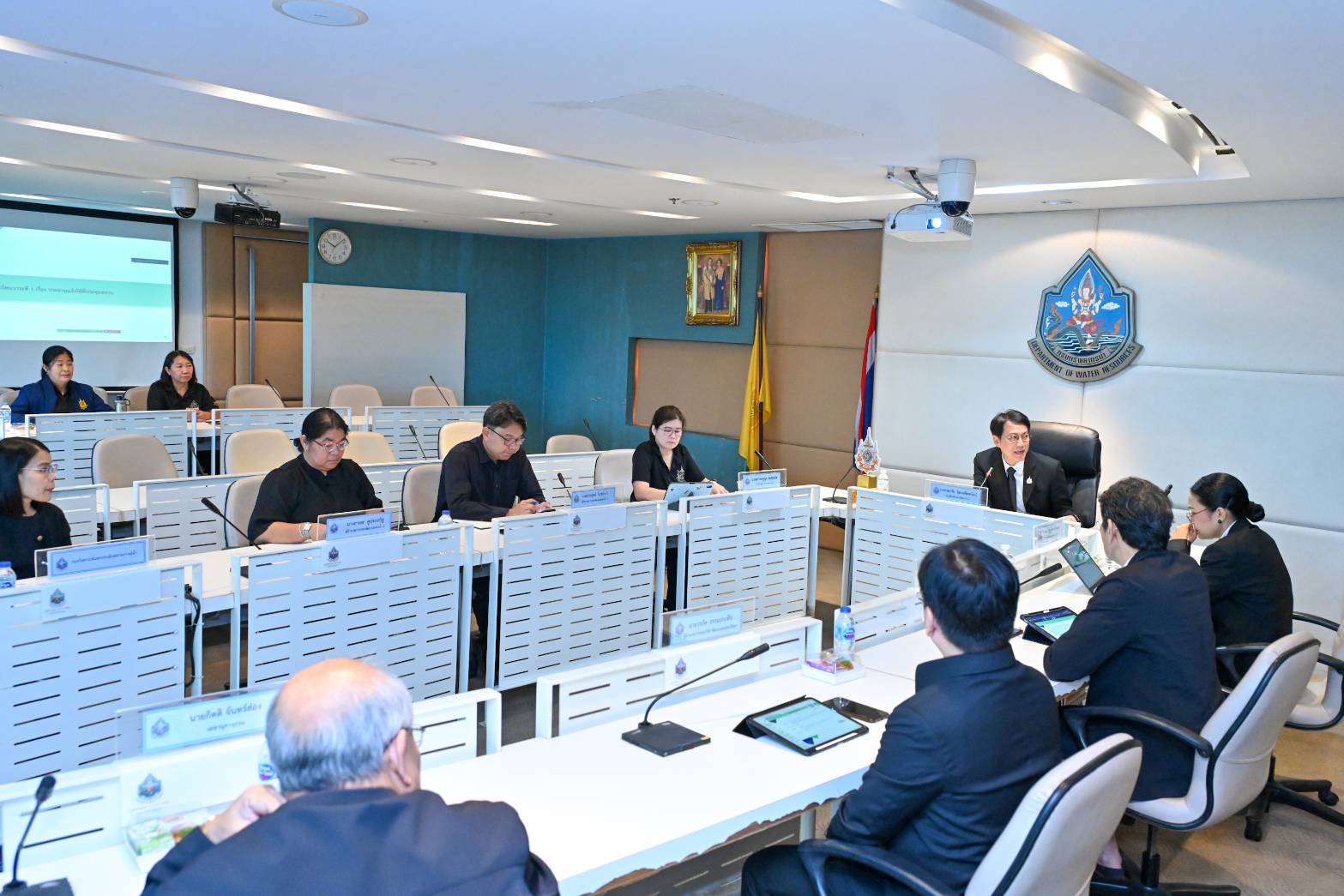 คณะกรรมการติดตามและประเมินผลการดำเนินงานโครงการของกรมทรัพยากรน้ำ ครั้งที่ 1/2569 พร้อมด้วย นางสาวบุญธิดา เปล่งแสง รองอธิบดีกรมทรัพยากรน้ำ ผู้บริหารและเจ้าหน้าที่ที่เกี่ยวข้องเข้าร่วมพิจารณาร่างรายงานการติดตามและประเมินผลการดำเนินงานโครงการของกรมทรัพยากรน้ำ ประจำปีงบประมาณ พ.ศ. 2568 รวมถึงพิจารณาแผนการประเมินผลสัมฤทธิ์โครงการของกรมทรัพยากรน้ำ ประจำปีงบประมาณ พ.ศ. 2569 เพื่อให้การใช้จ่ายงบประมาณของกรมทรัพยากรน้ำมีประสิทธิภาพและเกิดประโยชน์สูงสุดต่อประชาชน ณ ห้องประชุมสายชล ชั้น 9 อาคารกรมทรัพยากรน้ำ และผ่านระบบ Zoom Meeting