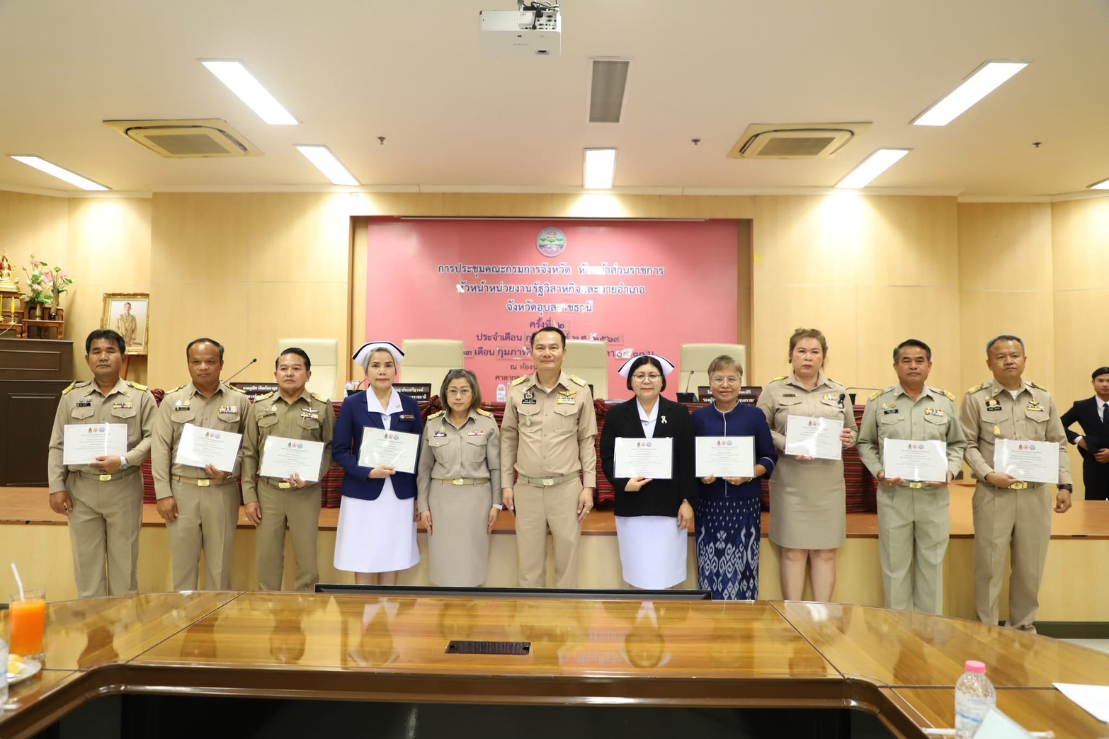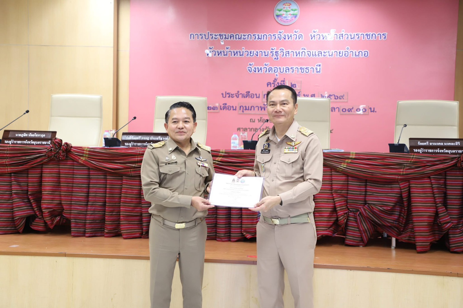 วันที่ 23 กุมภาพันธ์ 2569 นายโภคิน ช้ำเกตุ ผู้อำนวยการสำนักงานทรัพยากรน้ำที่ 11 เข้ารับมอบเกียรติบัตรยกย่องเชิดชูเกียรติองค์กร และอำเภอคุณธรรม ระดับคุณธรรมต้นแบบ ประจำปีงบประมาณ พ.ศ. 2568 ในการประชุมคณะกรมการจังหวัดอุบลราชธานี ด้วยคณะกรรมการส่งเสริมคุณธรรมแห่งชาติ ในคราวประชุม ครั้งที่ 1/2568 มีมติเห็นชอบให้สำนักงานทรัพยากรน้ำที่ 11 มีผลการประเมินชุมชน องค์กร และอำเภอคุณธรรมต้นแบบดังกล่าว โดยมีนายณรงค์ เทพเสนา ผู้ว่าราชการจังหวัดอุบลราชธานี เป็นประธานมอบ ณ ห้องประชุมพรหมวรราช ชั้น 4 ศาลากลางจังหวัดอุบลราชธานี