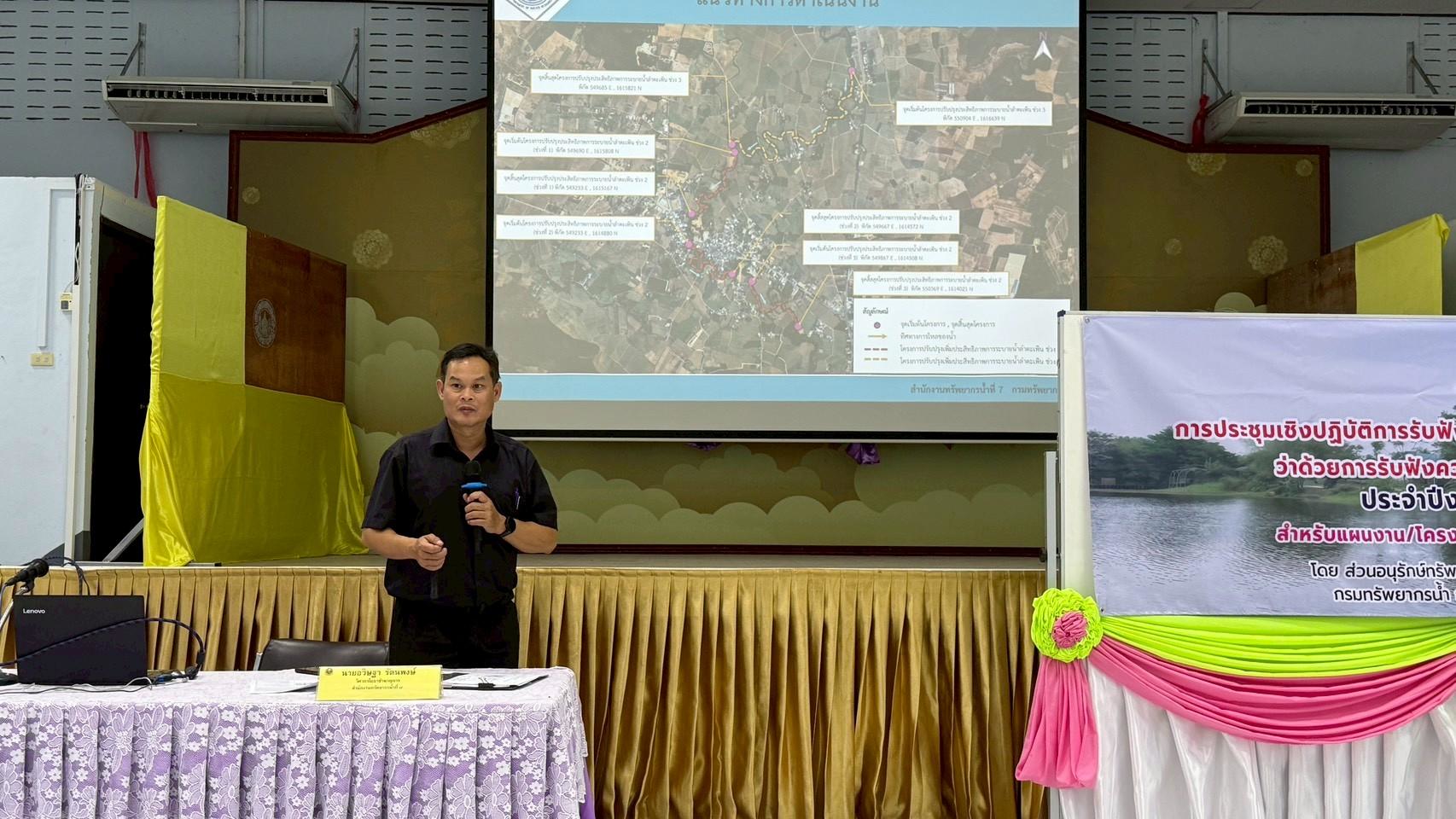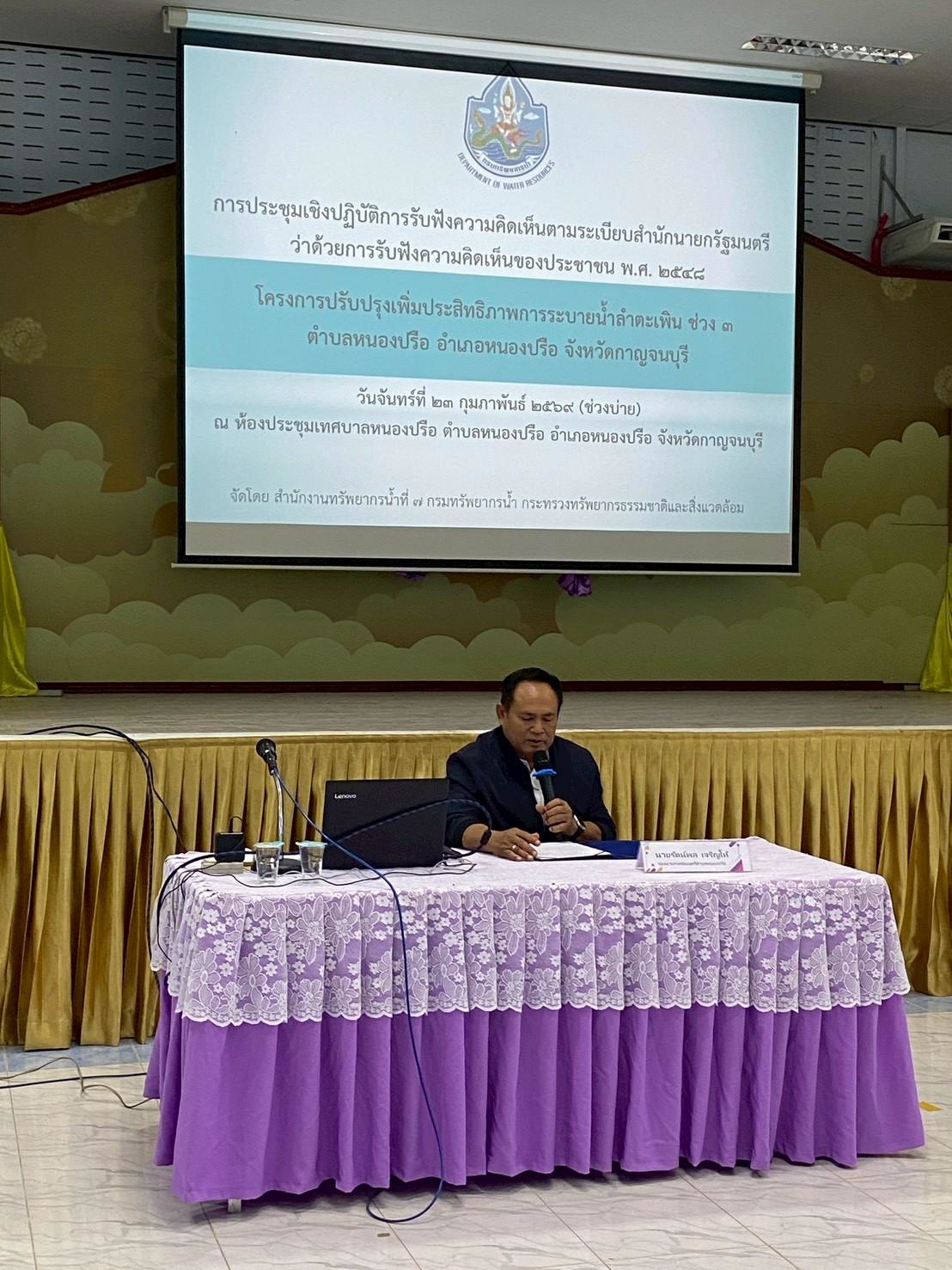 สทน.7 จัดประชุมปฏิบัติการรับฟังความคิดเห็นของประชาชน โครงการปรับปรุงเพิ่มประสิทธิภาพการระบายน้ำลำตะเพิน ช่วง 3 ตำบลหนองปรือ อำเภอหนองปรือ จังหวัดกาญจนบุรี