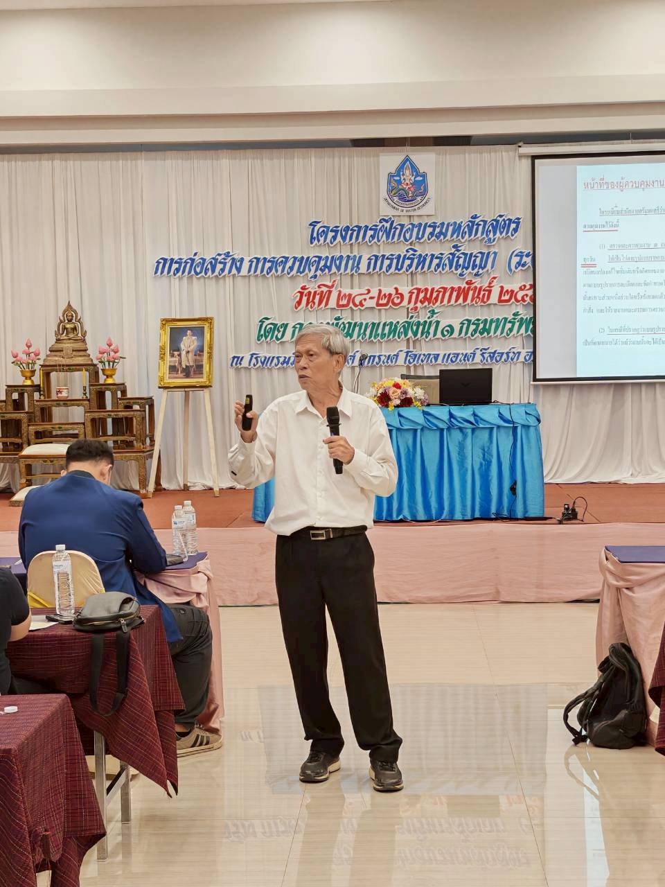 วันนี้ (24 ก.พ. 69) นายเวสารัช โสภณดิเรกรัตน์ รองอธิบดีกรมทรัพยากรน้ำ เป็นประธานเปิดโครงการฝึกอบรมหลักสูตร “การก่อสร้าง การควบคุมงาน และการบริหารสัญญา (ระดับต้น/ระดับกลาง)” ระหว่างวันที่ 24 – 26 กุมภาพันธ์ 2569 ณ โรงแรมมีพรสวรรค์ แกรนด์ โฮเทล แอนด์ รีสอร์ท จังหวัดพิจิตร