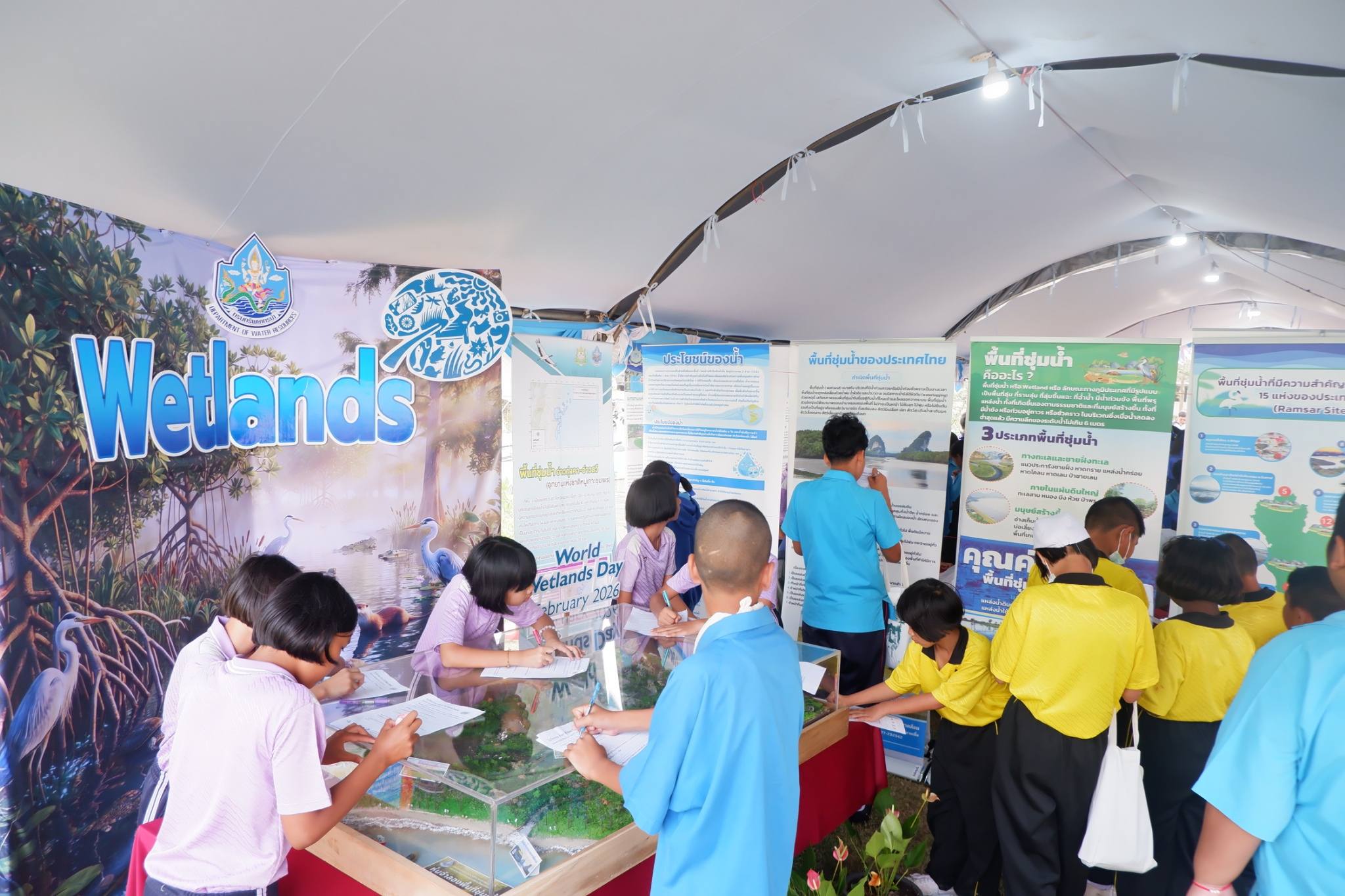 สำนักงานทรัพยากรน้ำที่ 10 โดยส่วนอนุรักษ์ทรัพยากรน้ำที่ 3 ชุมพร จัดกิจกรรมวันพื้นที่ชุ่มน้ำโลก ประจำปี 2569 ภายใต้หัวข้อ “พื้นที่ชุ่มน้ำและภูมิปัญญาท้องถิ่น : ร่วมฉลองมรดกทางวัฒนธรรม” ในวันพุธที่ 18 กุมภาพันธ์ 2569 ณ อุทยานแห่งชาติหมู่เกาะชุมพร ตำบลหาดทรายรี อำเภอเมืองชุมพร จังหวัดชุมพร ผู้เข้าร่วมโครงการประกอบด้วย ภาคราชการ องค์กรปกครองส่วนท้องถิ่น ภาคเอกชน กลุ่มผู้ใช้น้ำ ประชาชน เยาวชน ข้าราชการและเจ้าหน้าที่ของสำนักงานทรัพยากรน้ำที่ 10 วิทยากรและผู้สังเกตการณ์ จำนวน 313 คน โดยมีวัตถุประสงค์ ดังนี้