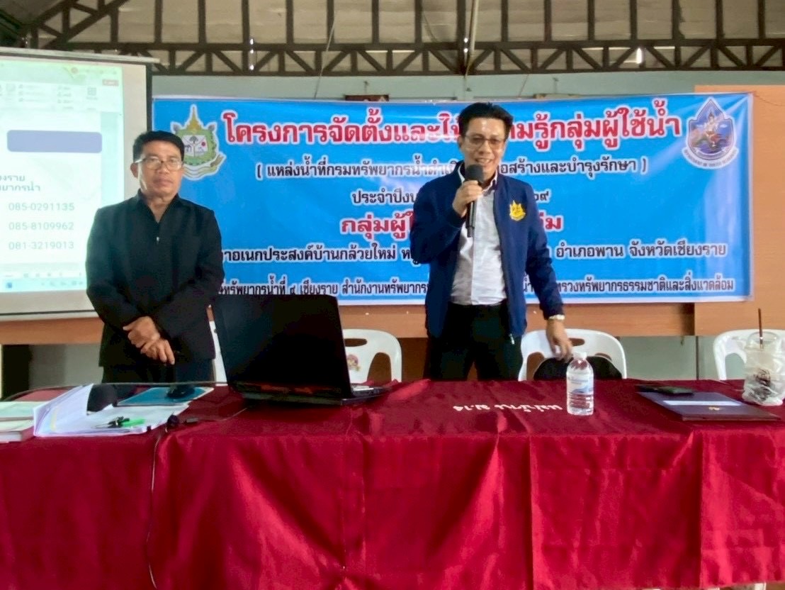 นางสาว สุพัดสอน สีมืด ผู้อำนวยการสำนักงานทรัพยากรน้ำที่ 1 มอบหมายให้ ส่วนอนุรักษ์ทรัพยากรน้ำที่ 4 เชียงราย ดำเนินโครงการประชุมเชิงปฏิบัติการเพื่อจัดตั้งและให้ความรู้กลุ่มผู้ใช้น้ำ(แหล่งน้ำที่กรมทรัพยากรน้ำดำเนินการก่อสร้างและบำรุงรักษา)ประจำปีงบประมาณ พ.ศ.2569 ตามงบประมาณที่ได้รับจัดสรร จากกองอนุรักษ์ทรัพยากรน้ำ กรมทรัพยากรน้ำ ของกลุ่มผู้ใช้น้ำหนองกุ่ม ต.สันมะเค็ด อ.พาน จ.เชียงราย โดยมีผู้แทนนายอำเภอพาน นางพิจรณา งามสมบัติ ปลัดอำเภอหัวหน้ากลุ่มงานทะเบียนบัตร เป็นประธานเปิดโครงการฯ ณ ศาลาอเนกประสงค์บ้านกล้วยใหม่ หมู่14 ต.สันมะเค็ด อ.พาน จ.เชียงราย มีผู้เข้าร่วมโครงการฯ 55 คน โดยผู้เข้าร่วมประชุม ได้ร่วมกันดำเนินการ ดังนี้