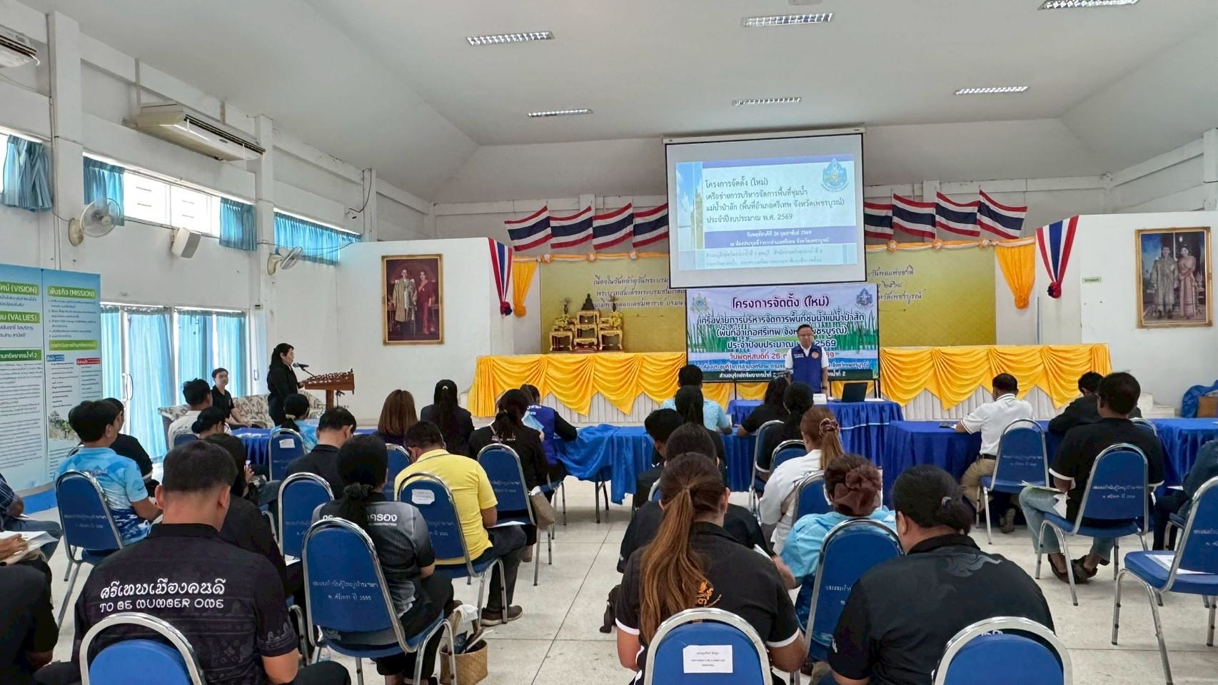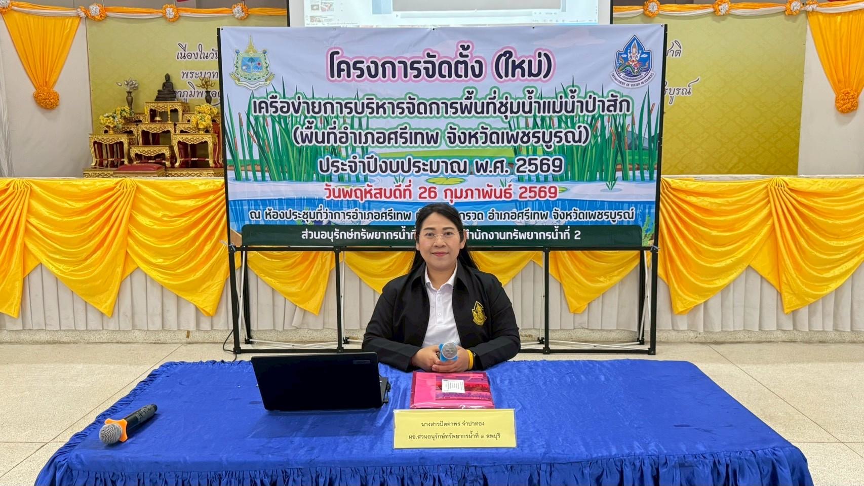สำนักงานทรัพยากรน้ำที่ 2 โดยนางสาวปัตตาพร จำปาทอง ผู้อำนวยการส่วนอนุรักษ์ทรัพยากรน้ำที่ 3 ลพบุรี พร้อมเจ้าหน้าที่ ดำเนินการจัดโครงการจัดตั้ง (ใหม่) เครือข่ายการบริหารจัดการพื้นที่ชุ่มน้ำแม่น้ำป่าสัก (พื้นที่อำเภอศรีเทพ จังหวัดเพชรบูรณ์) ประจำปีงบประมาณ พ.ศ. 2569 ณ ห้องประชุมที่ว่าการอำเภอศรีเทพ ตำบลสระกรวด อำเภอศรีเทพ จังหวัดเพชรบูรณ์ เพื่อให้เกิดกระบวนการมีส่วนร่วมของผู้มีส่วนได้ส่วนเสีย มีการรวมกลุ่มของสมาชิกที่มีความคิดเห็นและเป้าหมายเดียวกันในการบริหารจัดการพื้นที่ชุ่มน้ำ เสริมสร้างความรู้ความเข้าใจเกี่ยวกับพื้นที่ชุ่มน้ำ รวมถึงปัญหา วิธีการแก้ไข และแนวทางการปฏิบัติในการอนุรักษ์และใช้ประโยชน์พื้นที่ชุ่มน้ำ และเสริมสร้างความเข้มแข็ง เกิดกระบวนการเรียนรู้ และตระหนักถึงคุณค่าและความสำคัญของพื้นที่ชุ่มน้ำ โดยมีนายวิทยา รัตนมณี นายอำเภอศรีเทพ เป็นประธานกล่าวเปิดโครงการฯ ซึ่งมีวิทยากรจากสำนักงานทรัพยากรธรรมชาติและสิ่งแวดล้อมจังหวัดเพชรบูรณ์ ร่วมให้ความรู้เสริมศักยภาพเครือข่ายพื้นที่ชุ่มน้ำในครั้งนี้ด้วย