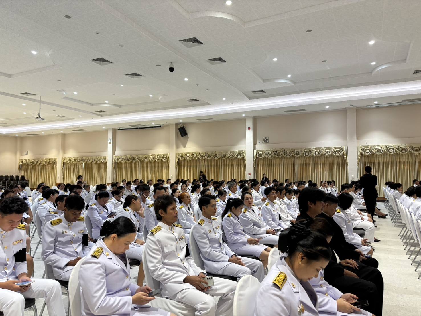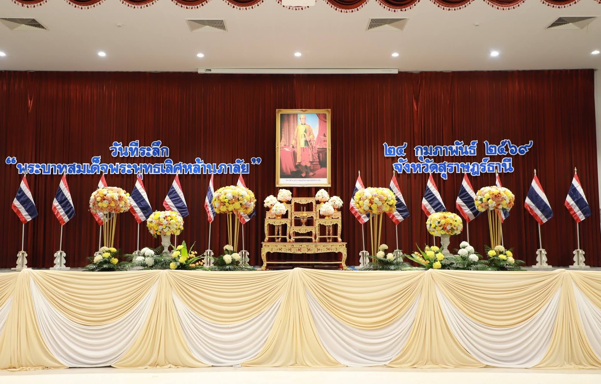 สำนักงานทรัพยากรน้ำที่ 10 โดยส่วนยุทธศาสตร์และแผนงาน ส่วนอนุรักษ์ทรัพยากรน้ำที่ 1 สุราษฎร์ธานี และส่วนอนุรักษ์ทรัพยากรน้ำที่ 3 ชุมพร เข้าร่วมงานรัฐพิธีวันที่ระลึก “พระบาทสมเด็จพระพุทธเลิศหล้านภาลัย” ณ อาคารศูนย์กลางการประชุมสัมมนาภาคใต้ตอนบน ศูนย์ราชการจังหวัดสุราษฎร์ธานี ในการนี้ได้รับเกียรติจากนายจุมพฏ วรรณฉัตรสิริ ผู้ว่าราชการจังหวัดสุราษฎร์ธานี เป็นประธานในพิธี พร้อมหัวหน้าส่วนราชการ และหน่วยงานต่าง ๆ เข้าร่วมพิธีอย่างพร้อมเพรียง เพื่อแสดงถึงความจงรักภักดีต่อสถาบันพระมหากษัตริย์และน้อมรำลึกในพระมหากรุณาธิคุณของพระองค์ที่มีต่อพสกนิกรชาวไทย