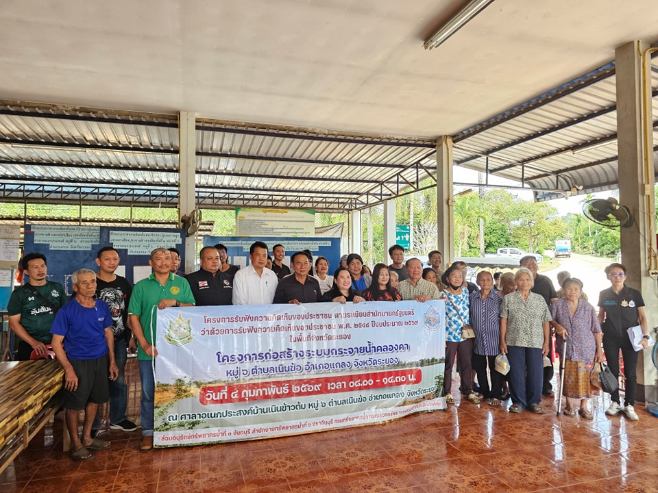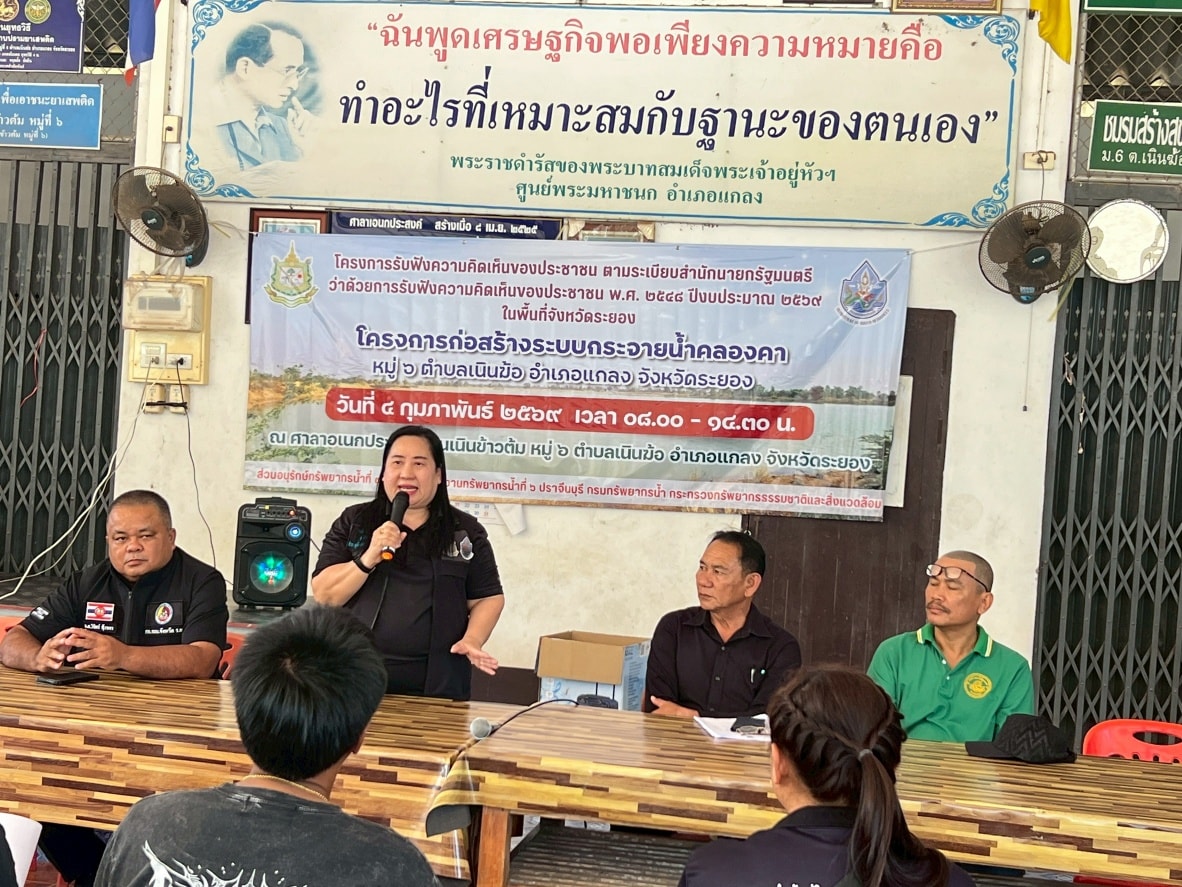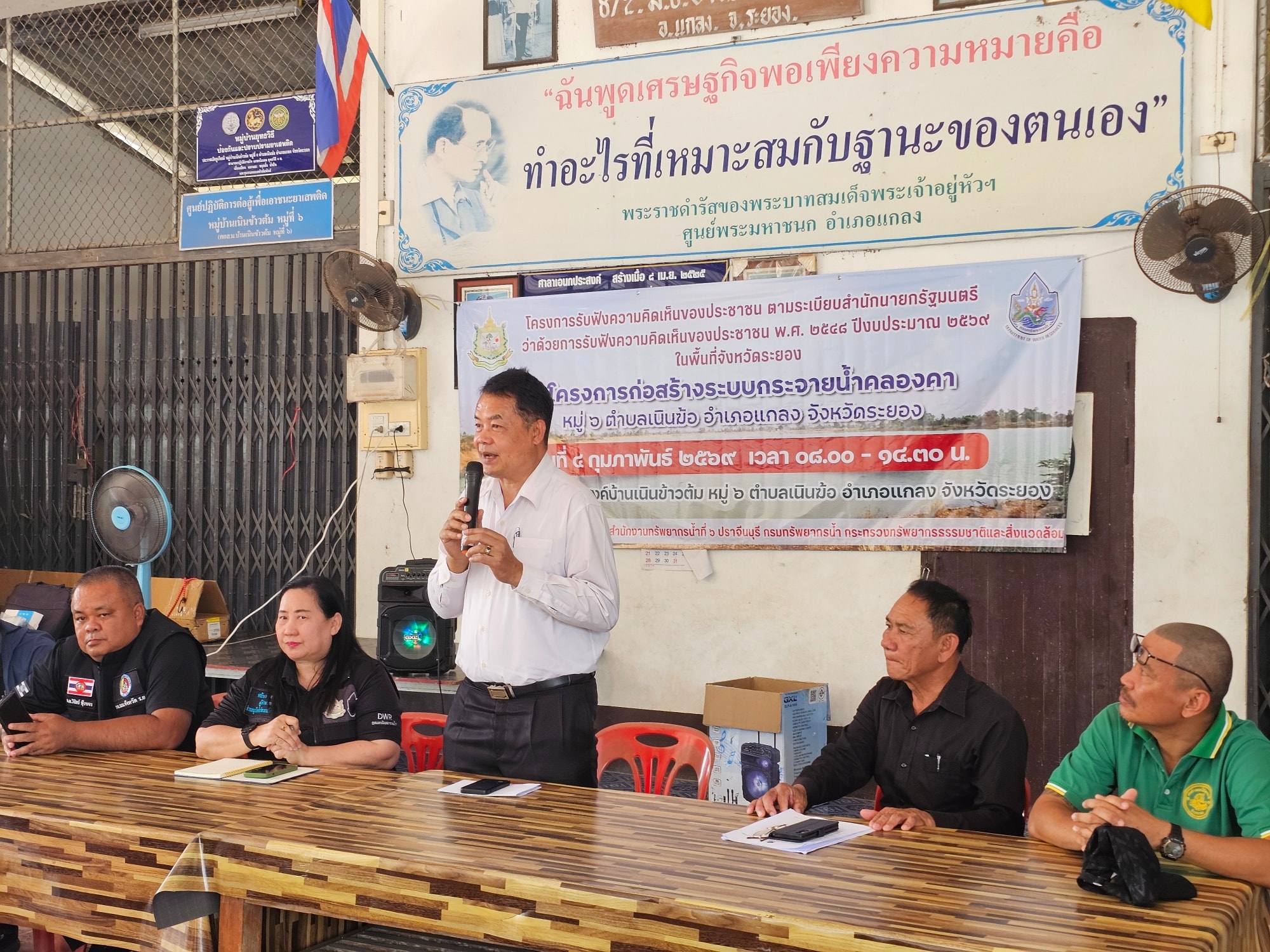 วันที่ 4 กุมภาพันธ์ 2569 สำนักงานทรัพยากรน้ำที่ 6 โดยส่วนอนุรักษ์ทรัพยากรน้ำที่ 3 จันทบุรี นำโดยนางสาวศลิษา พานิชผล ผู้อำนวยการส่วนอนุรักษ์ทรัพยากรน้ำที่ 3 จันทบุรี พร้อมด้วยเจ้าหน้าที่ ดำเนินการรับฟังความคิดเห็นของประชาชนตามระเบียบ สำนักนายกรัฐมนตรี ว่าด้วยการรับฟังความคิดเห็นของประชาชน พ.ศ.2548 โครงการก่อสร้างระบบกระจายน้ำคลองคา หมู่ 6 ตำบลเนินฆ้อ อำเภอแกลง จังหวัดระยอง โดยมีเจ้าหน้าที่สำนักงานทรัพยากรน้ำที่ 6 ร่วมเป็นวิทยากร โครงการฯ ดังกล่าว มีวัตถุประสงค์เพื่อช่วยเหลือประชาชนจากสถานการณ์ภัยแล้ง บรรเทาปัญหาอุทกภัยในพื้นที่ เป็นแหล่งกักเก็บน้ำไว้ใช้ในช่วงฤดูแล้งสำหรับอุปโภค บริโภค และเกษตรกรรม เพิ่มศักยภาพพื้นที่เพาะปลูกและแก้ปัญหาการขาดแคลนน้ำที่ยั่งยืน ปรับปรุงระบบนิเวศ ให้เกิดสมดุลกลับคืนสู่ธรรมชาติ โดยมีผู้แทนกองอำนวยการรักษาความมั่นคงภายในจังหวัดระยอง ผู้แทนสำนักงานทรัพยากรธรรมชาติและสิ่งแวดล้อมจังหวัดระยอง นายกเทศมนตรีส่วนตำบลเนินฆ้อ ผู้ใหญ่บ้าน ประชาชนและผู้มีส่วนได้ส่วนเสียในพื้นที่เข้าร่วมรับฟังความคิดเห็นฯ จำนวน 51 คน