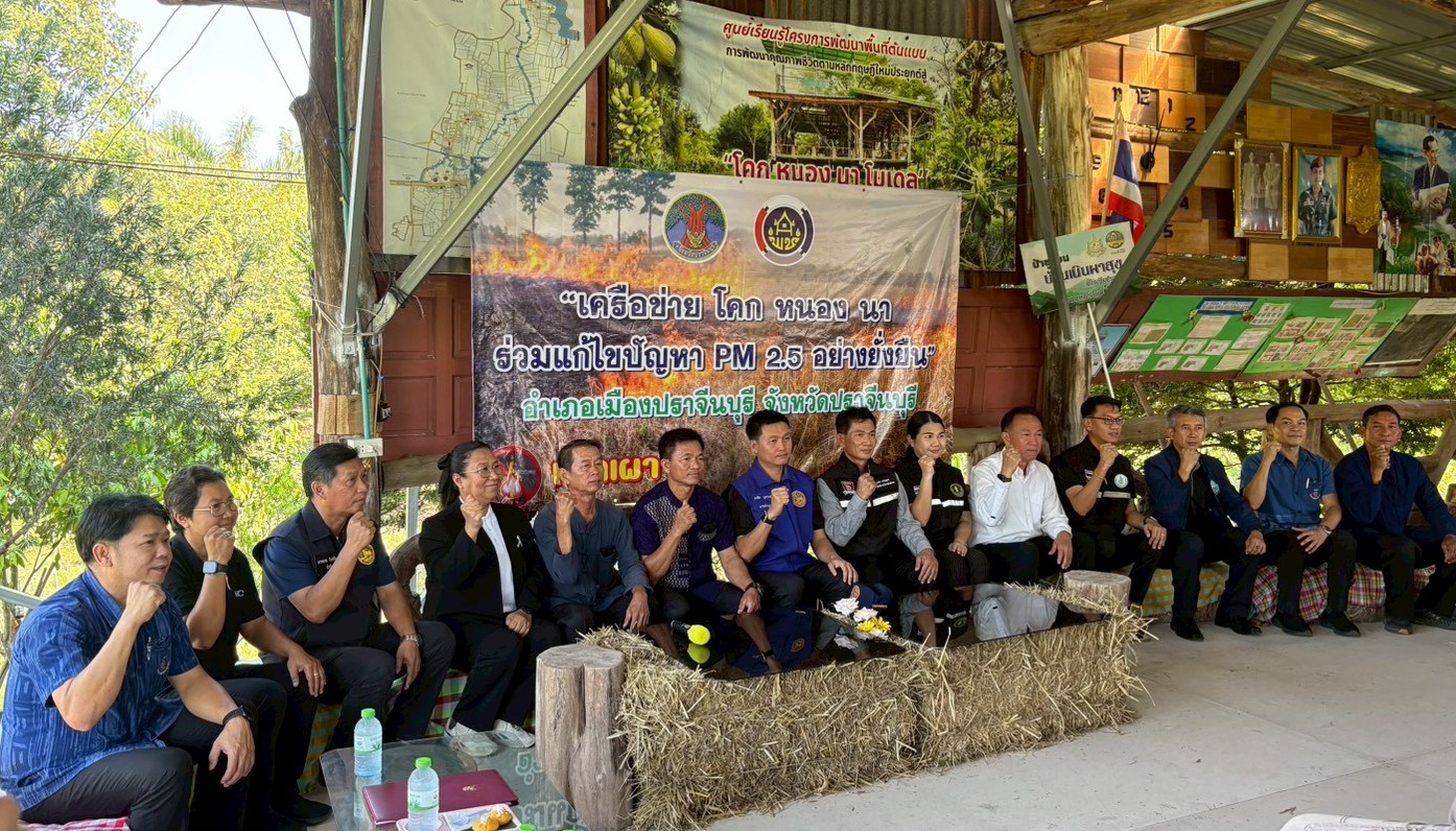 วันอังคารที่ 10 กุมภาพันธ์ 2569 สำนักงานทรัพยากรน้ำที่ 6 โดยส่วนอนุรักษ์ทรัพยากรน้ำที่ 1 ปราจีนบุรี นำโดยนายกัมปนาท ภักดีโชติ ผู้อำนวยการส่วนอนุรักษ์ทรัพยากรน้ำที่ 1 ปราจีนบุรี พร้อมเจ้าหน้าที่ และเครือข่ายกลุ่มผู้ใช้น้ำโครงการอนุรักษ์ฟื้นฟูอ่างเก็บน้ำคลองฟันปลา พร้อมระบบกระจายน้ำ หมู่ที่ 13 เข้าร่วม "เครือข่าย โคก หนอง นา ร่วมแก้ไขปัญหา PM 2.5 อย่างยั่งยืน" ณ ศูนย์เรียนรู้โคกหนองนาโมเดล หมู่ที่ 13 ตำบลดงขี้เหล็ก อำเภอเมือง จังหวัดปราจีนบุรี โดยมี นายธงชัย บุตรวงษ์ นายอำเภอเมืองปราจีนบุรี เป็นประธาน