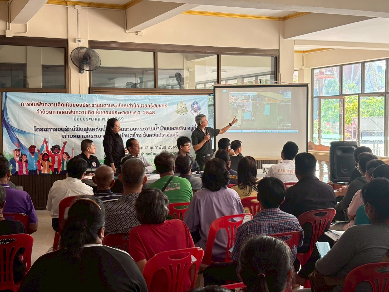 วันพฤหัสบดีที่ 12 กุมภาพันธ์ 2569 สำนักงานทรัพยากรน้ำที่ 6 โดยส่วนอนุรักษ์ทรัพยากรน้ำที่ 1 ปราจีนบุรี นำโดยนายกัมปนาท ภักดีโชติ ผู้อำนวยการส่วนอนุรักษ์ทรัพยากรน้ำที่ 1 ปราจีนบุรี พร้อมเจ้าหน้าที่ ดำเนินการจัดรับฟังความคิดเห็นของประชาชน ตามระเบียบสำนักนายกรัฐมนตรี ว่าด้วยการรับฟังความคิดเห็นของประชาชน พ.ศ. 2548 โครงการอนุรักษ์ฟื้นฟูแหล่งน้ำ พร้อมระบบกระจายน้ำบ้านแหลมลิง หมู่ที่ 6 ตำบลบางกระเบา อำเภอบ้านสร้าง จังหวัดปราจีนบุรี ณ ศาลาวัดบางกระเบา อำเภอบ้านสร้าง จังหวัดปราจีนบุรีผู้เข้าร่วมประชุมประกอบด้วยปลัดอำเภอบ้านสร้าง นายกองค์การบริหารส่วนตำบลบางกระเบา ผู้แทน กอ.รมน.จังหวัดปราจีนบุรี ผู้แทนสำนักงานทรัพยากรธรรมชาติและสิ่งแวดล้อมจังหวัดนครนายก กำนันตำบลบางกระเบา ผู้นำชุมชน และผู้มีส่วนได้ส่วนเสียต่อโครงการ โดยมีวัตถุประสงค์ของโครงการ เพื่อชี้แจงให้ผู้มีส่วนได้ส่วนเสียเข้าใจในสาระสำคัญโครงการ และให้ทราบถึงขั้นตอนการดำเนินงาน พร้อมทั้ง ร่วมแสดงความคิดเห็นและข้อเสนอแนะต่อโครงการ ซึ่งผลการรับฟัง "มีมติเห็นชอบให้ดำเนินโครงการ" ทั้งนี้ สำนักงานทรัพยากรน้ำที่ 6 จะนำข้อเสนอแนะและความต้องการของที่ประชุมไปเป็นแนวทาง เพื่อขอรับการสนับสนุนงบประมาณปี 2570 ในการก่อสร้างโครงการต่อไป