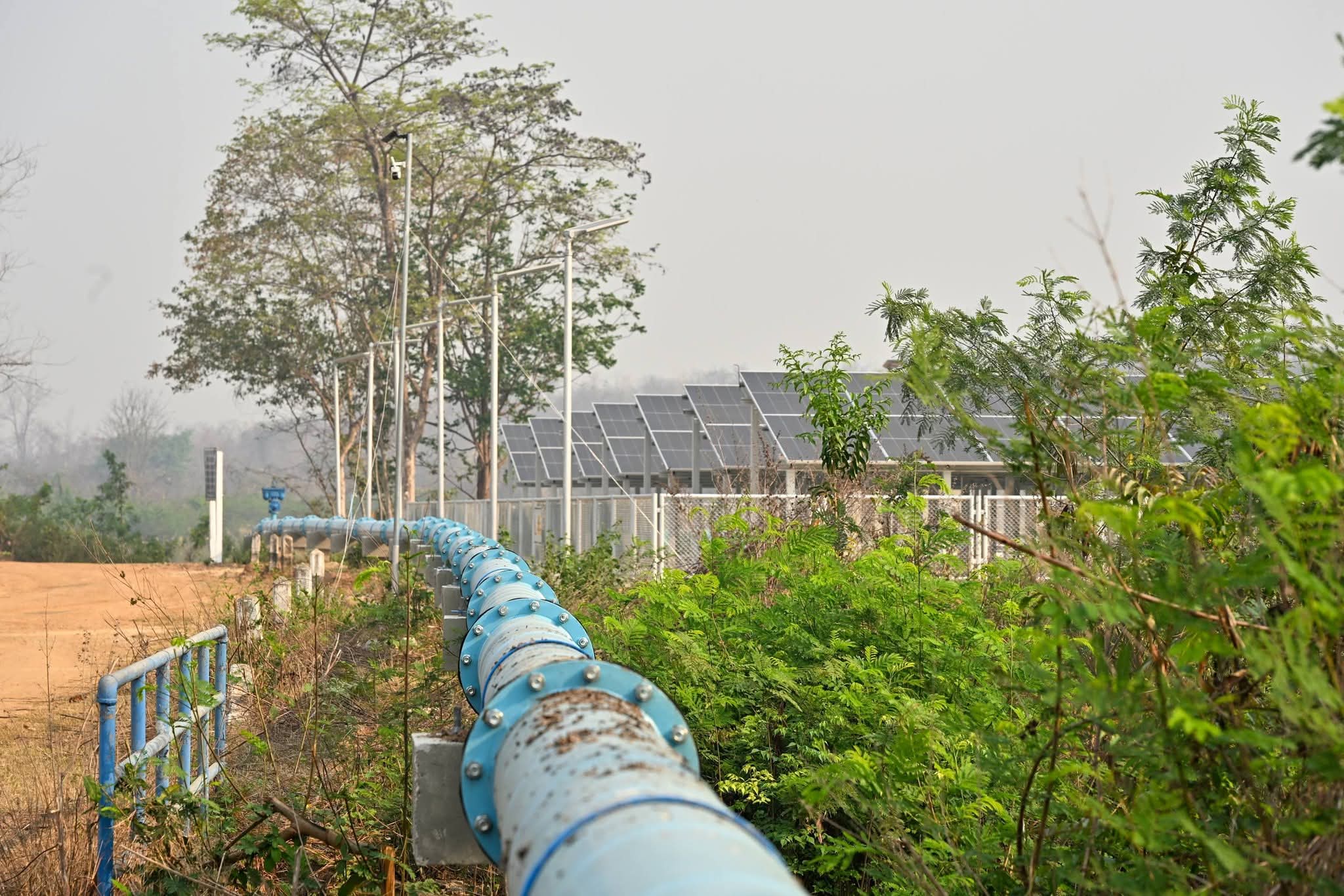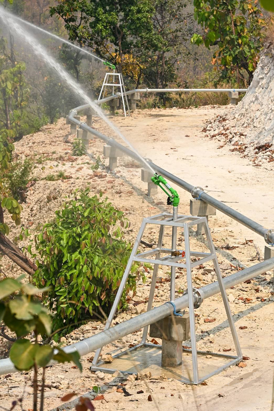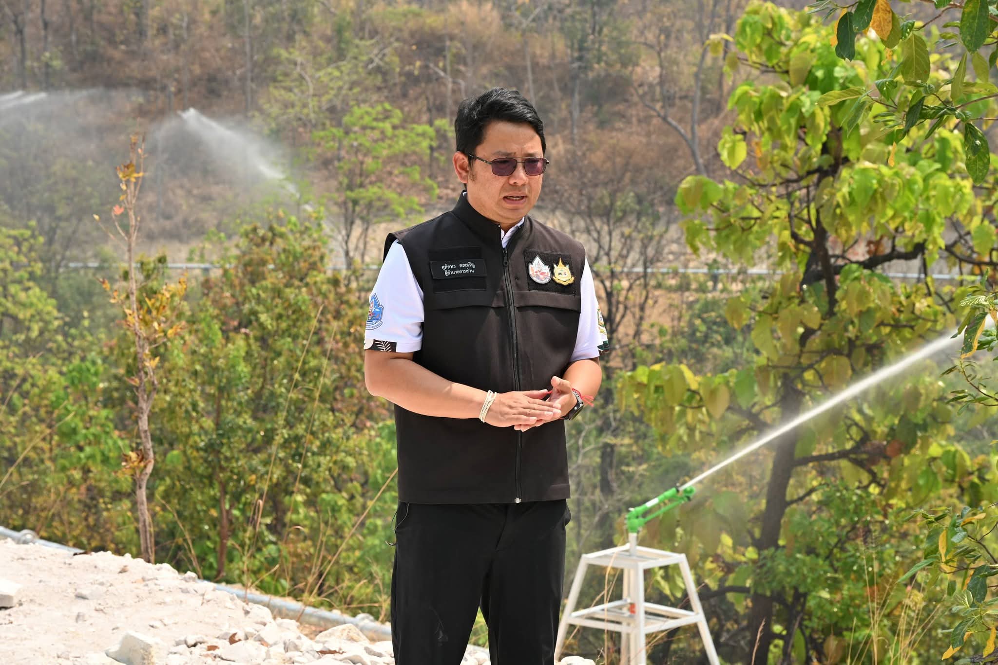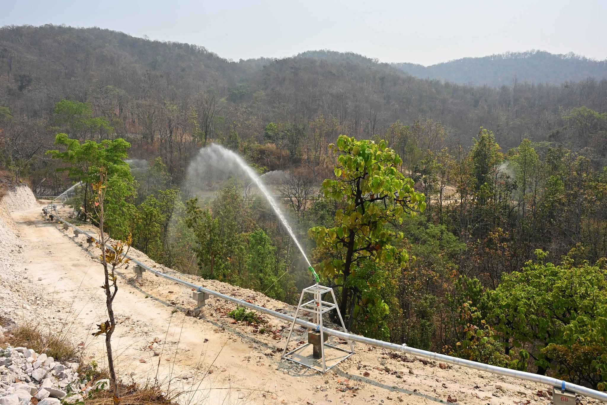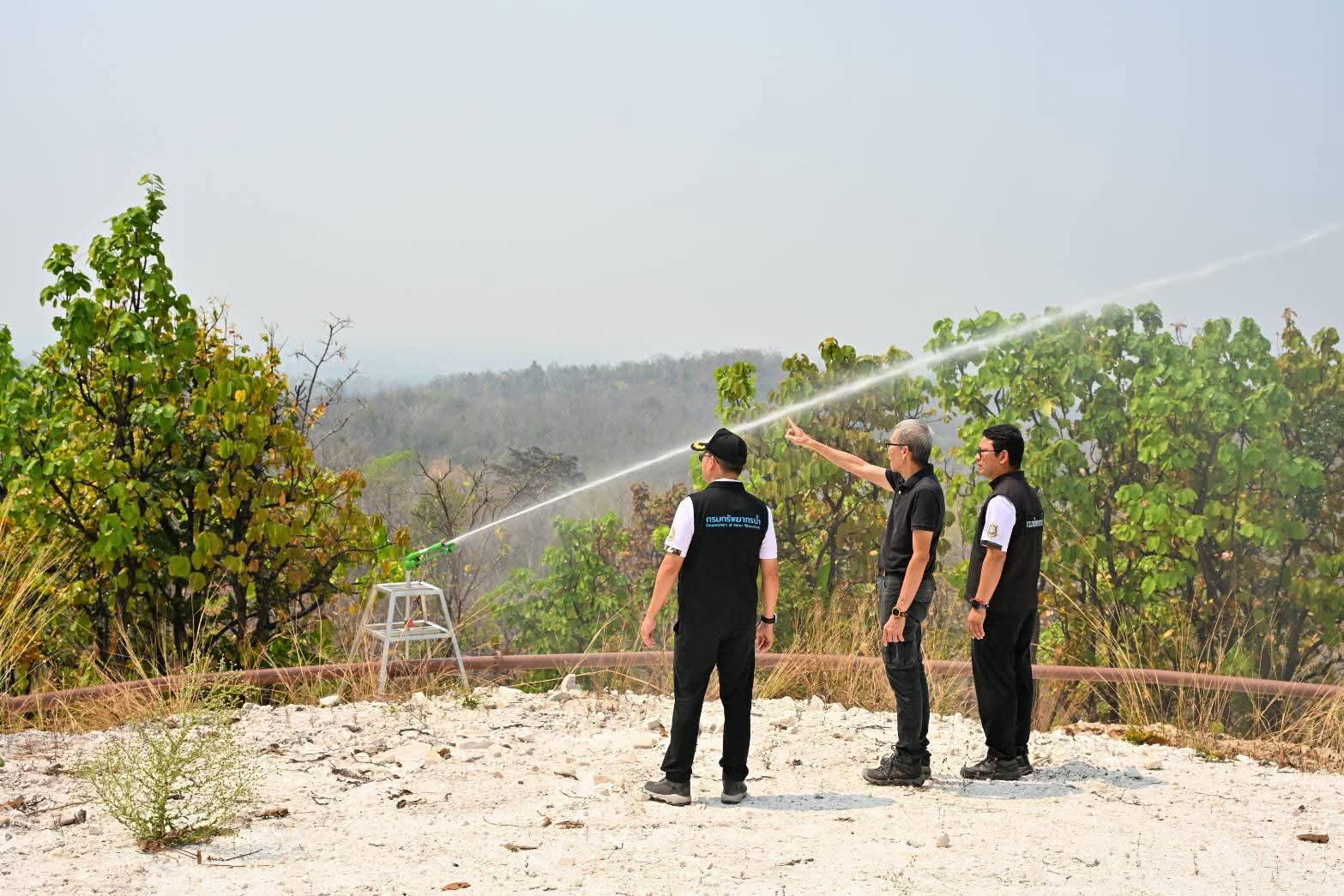 วันนี้ (3 มีนาคม 2569) นายธีระชุณ บุญสิทธิ์ อธิบดีกรมทรัพยากรน้ำ มอบหมายให้สำนักงานทรัพยากรน้ำที่ 1 ลงพื้นที่ติดตามความก้าวหน้าโครงการก่อสร้างระบบกระจายน้ำสนับสนุนการควบคุมไฟป่าดอยพระบาท ภายในพื้นที่อุทยานแห่งชาติเขลางค์บรรพต ตำบลพิชัย อำเภอเมืองลำปาง จังหวัดลำปาง โดยมีนายศุภักษร ผลเจริญ ผู้อำนวยการส่วนพัฒนาและฟื้นฟูแหล่งน้ำ พร้อมด้วยเจ้าหน้าที่และผู้นำชุมชน ลงพื้นที่ติดตามผลการดำเนินงาน โครงการดังกล่าวเป็นการน้อมนำแนวพระราชดำริ “ป่าเปียก” ของพระบาทสมเด็จพระบรมชนกาธิเบศร มหาภูมิพลอดุลยเดชมหาราช บรมนาถบพิตร มาประยุกต์ใช้ โดยสำนักงานทรัพยากรน้ำที่ 1 ได้ออกแบบและก่อสร้างระบบสูบน้ำพลังงานแสงอาทิตย์ สูบน้ำจากอ่างเก็บน้ำศูนย์ราชการขึ้นสู่ดอยพระบาท ก่อนกระจายน้ำผ่านท่อส่งไปยังจุดสูงสุด และปล่อยน้ำผ่านหัวบิ๊กกันสปริงเกอร์ เพื่อเพิ่มความชุ่มชื้นให้ผืนป่าและหน้าดิน สนับสนุนภารกิจป้องกันและควบคุมไฟป่าในพื้นที่อย่างเป็นรูปธรรม ตลอดจนช่วยลดปัญหาหมอกควันและค่าฝุ่นละออง PM2.5 สร้างความมั่นคงด้านทรัพยากรธรรมชาติและคุณภาพชีวิตที่ดีให้กับประชาชนในพื้นที่อย่างยั่งยืน
