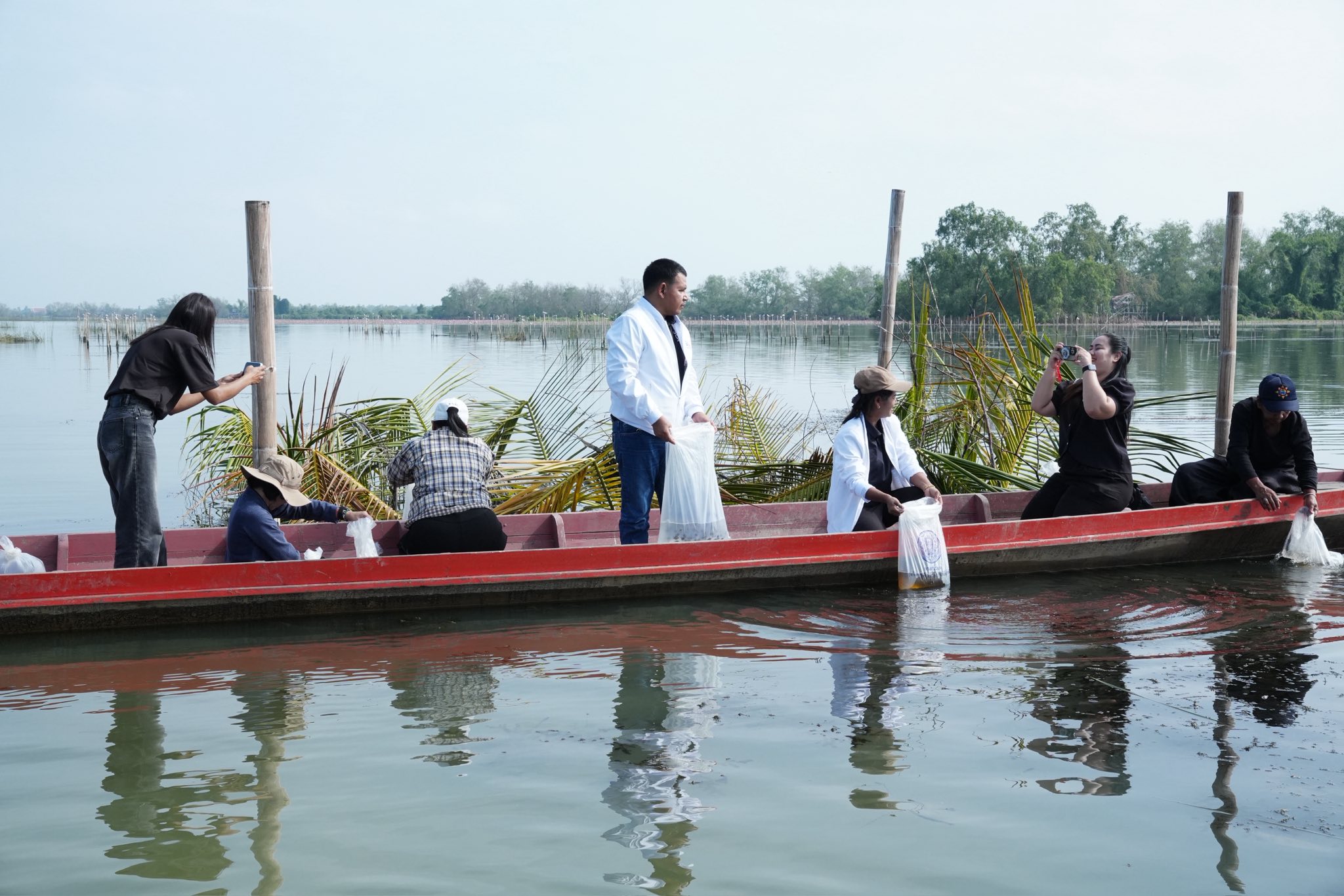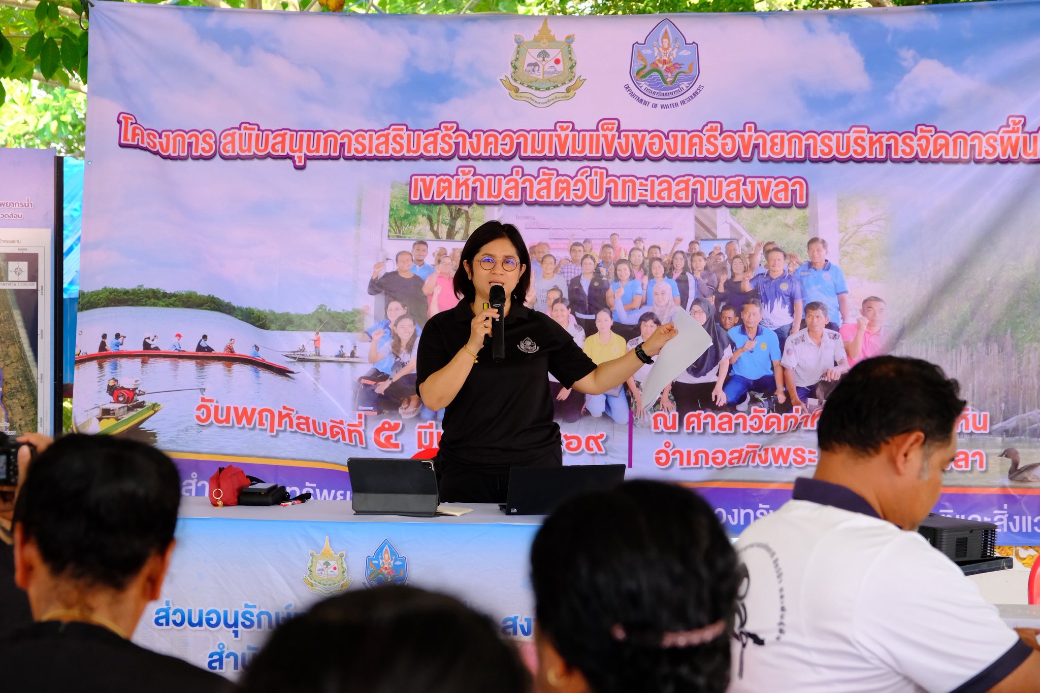 วันที่ 5 มีนาคม 2569 นายกิตติศักดิ์ ใจดี ผู้อำนวยการสำนักงานทรัพยากรน้ำที่ 8 มอบหมายให้นางกศิรินทร์ พลนาค ผู้อำนวยการส่วนอนุรักษ์ทรัพยากรน้ำที่ 1 สงขลา พร้อมด้วยเจ้าหน้าที่ ดำเนินโครงการสนับสนุนกิจกรรมการสร้างความเข้มแข็งของเครือข่ายการบริหารจัดการพื้นที่ชุ่มน้ำเขตห้ามล่าสัตว์ป่าทะเลสาบสงขลา ณ บริเวณพื้นที่ชุ่มน้ำเขตห้ามล่าสัตว์ป่าทะเลสาบสงขลา วัดท่าหิน ตำบลท่าหิน อำเภอสทิงพระ จังหวัดสงขลา ภายในโครงการฯ ประกอบด้วยกิจกรรม การสร้างบ้านปลาเพื่อฟื้นฟูทรัพยากรสัตว์น้ำในพื้นที่ชุ่มน้ำ การปล่อยพันธุ์ปลาและพันธุ์กุ้ง การบรรยายให้ความรู้เกี่ยวกับความสำคัญของพื้นที่ชุ่มน้ำและการใช้ประโยชน์พื้นที่ชุ่มน้ำอย่างชาญฉลาด รวมทั้งการตอบแบบสำรวจสถานภาพพื้นที่ชุ่มน้ำเขตห้ามล่าสัตว์ป่าทะเลสาบ