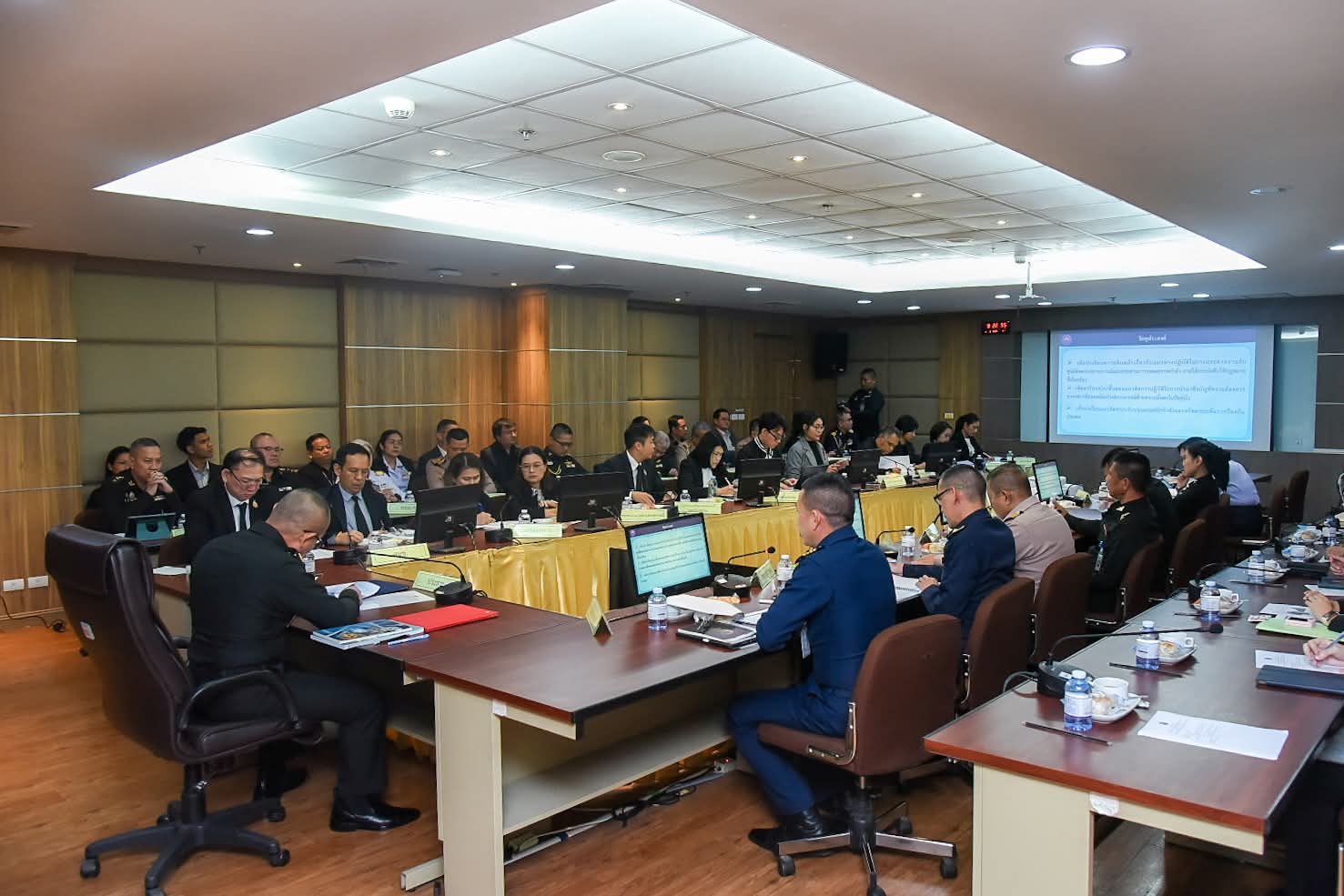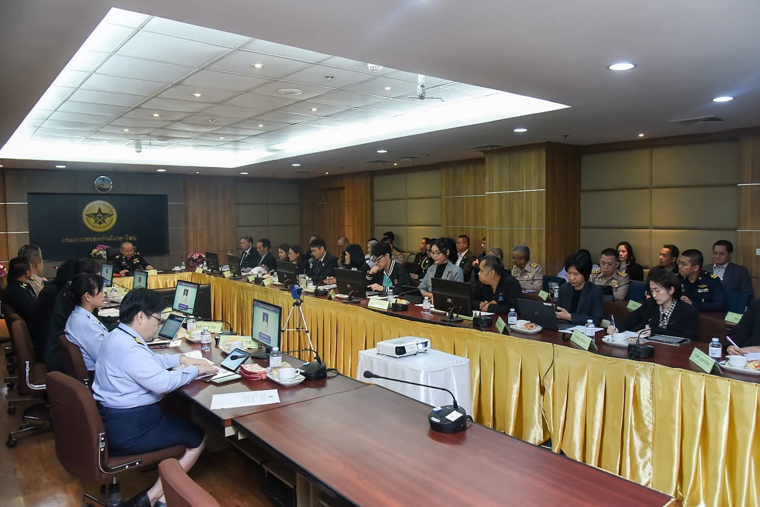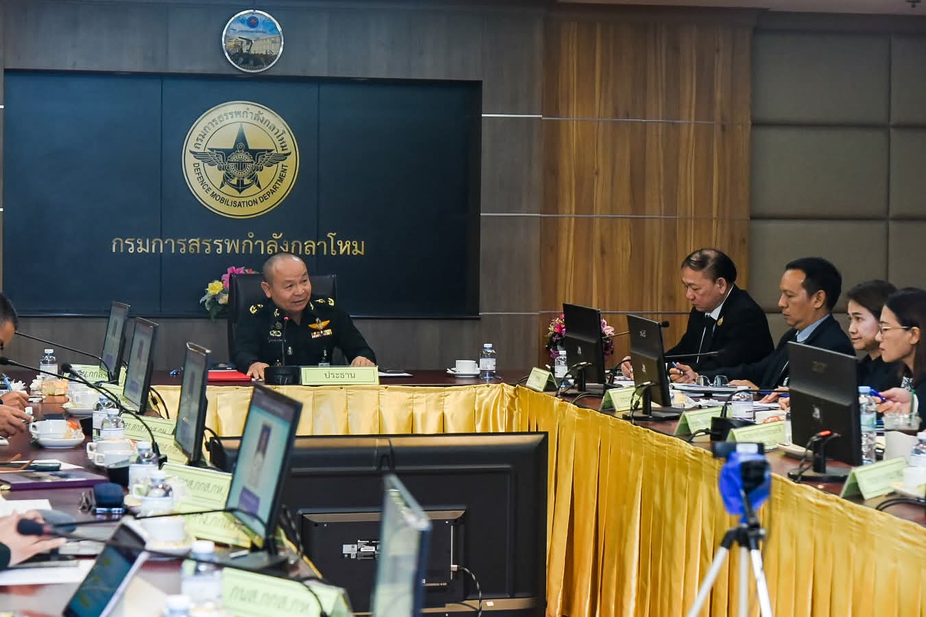 วันนี้ (6 มีนาคม 2569) พลตรี คมกฤษณ์ แสงไชยราช รองเจ้ากรมการสรรพกำลังกลาโหม เป็นประธานการประชุมติดตามความคืบหน้าการดำเนินงานของศูนย์ติดตามสถานการณ์และประสานการระดมสรรพกำลัง โดยมีหน่วยงานที่เกี่ยวข้องเข้าร่วมประชุม ณ ห้องประชุม กสศ.กท. ชั้น 5 อาคาร สป. (ศรีสมาน) กรุงเทพมหานคร ในการนี้ นายพงศ์พัฒน์ เสมอคำ รองอธิบดีกรมทรัพยากรน้ำ พร้อมด้วย นายสุประภาพ พัฒน์สิงหเสนีย์ ผู้อำนวยการกองวิเคราะห์และประเมินสถานการณ์น้ำ เข้าร่วมการประชุม เพื่อติดตามความคืบหน้าการดำเนินงานของศูนย์ฯ รวมทั้งรับทราบผลการดำเนินงานที่ผ่านมา และหารือแนวทางการปรับปรุงแผนกำลังและทรัพยากร ตลอดจนกลไกการประสานงานและการรายงานสถานการณ์ระหว่างหน่วยงานที่เกี่ยวข้องให้มีประสิทธิภาพยิ่งขึ้น