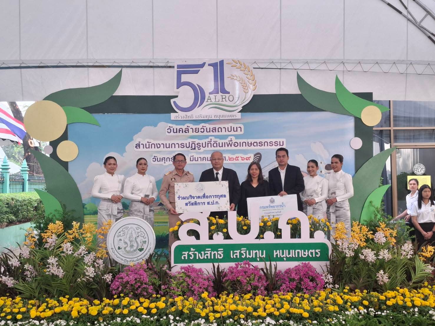 วันนี้ (6 มีนาคม 2569) นายกิตติ จันทร์ส่อง เลขานุการกรม กรมทรัพยากรน้ำ เป็นผู้แทนกรมฯ ร่วมงานวันคล้ายวันสถาปนาสำนักงานปฏิรูปที่ดินเพื่อการเกษตรกรรม ครบรอบ 51 ปี พร้อมร่วมบริจาคเงินเพื่อการกุศลแก่มูลนิธิไชยยงค์ ชูชาติ และกองทุนสวัสดิการ ส.ป.ก. เพื่อสนับสนุนกิจกรรมด้านสาธารณประโยชน์และสวัสดิการบุคลากรของหน่วยงาน ณ สำนักงานการปฏิรูปที่ดินเพื่อเกษตรกรรม