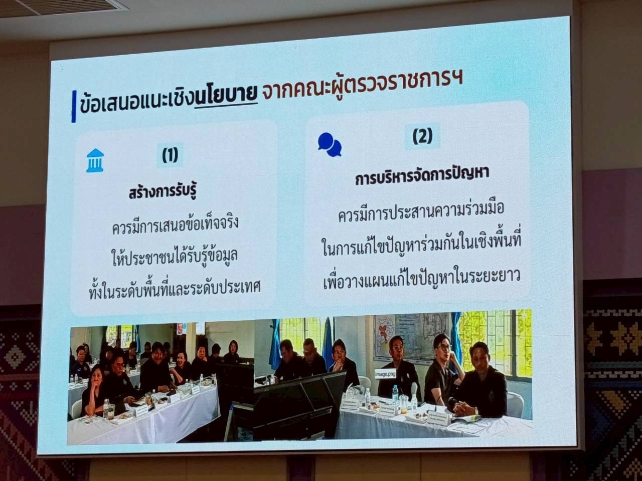 -การแก้ปัญหาร่วมกันทั้งระดับนโยบายและพื้นที่ รวมถึงการประชาสัมพันธ์ลดผลกระทบ
