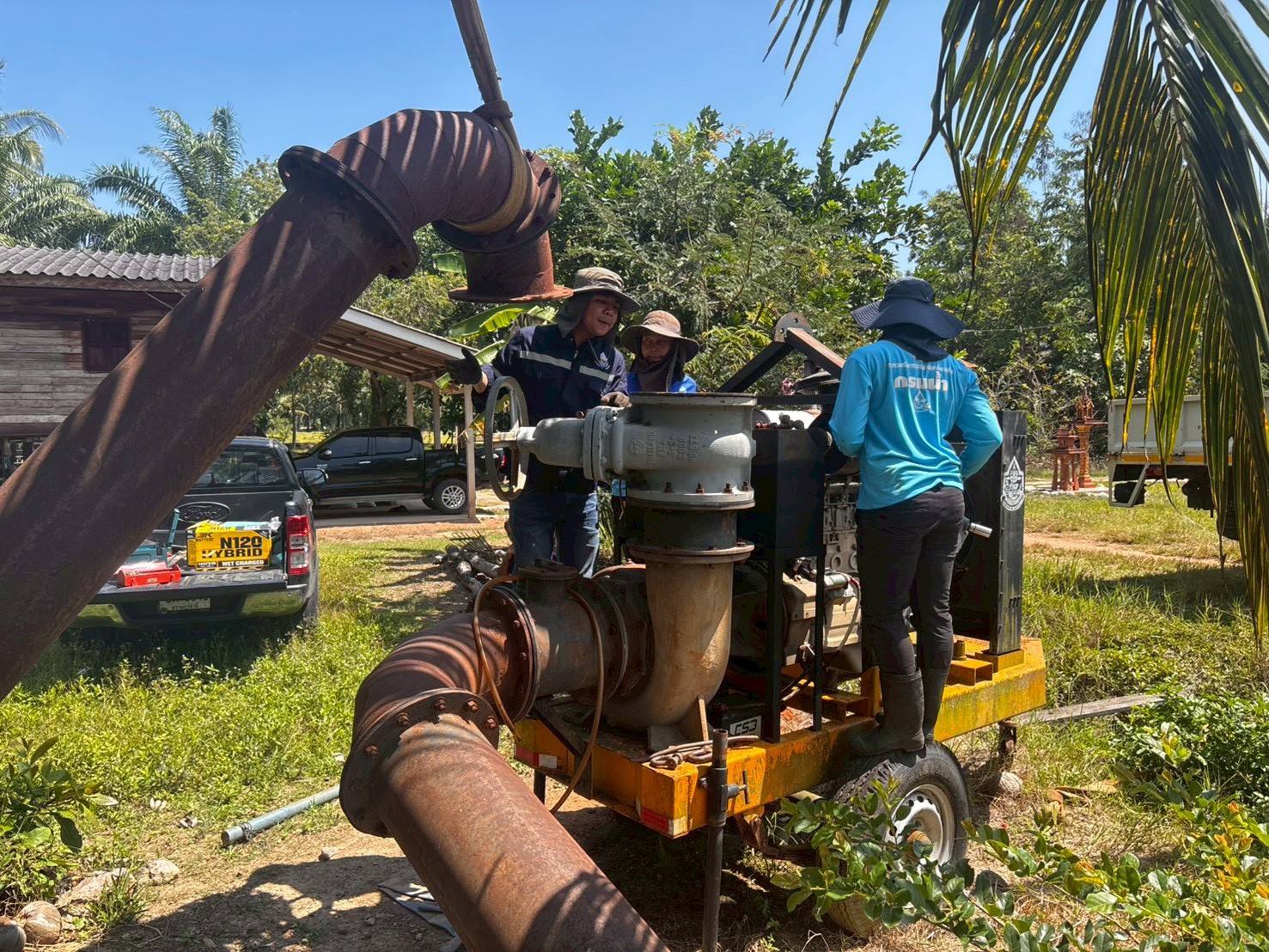 ศูนย์อำนวยการติดตามและแก้ไขปัญหาภาวะน้ำแล้งและภาวะน้ำท่วม (ส่วนหน้า) เร่งเดินหน้ามาตรการเชิงรุกเพื่อบรรเทาความเดือดร้อนของประชาชนในช่วงฤดูแล้ง เจ้าหน้าที่ส่วนเครื่องกล สำนักงานทรัพยากรน้ำที่ 10 ดำเนินการติดตั้งเครื่องสูบน้ำ จำนวน 2 จุด ณ พื้นที่องค์การบริหารส่วนตำบลหัวเตย อำเภอพุนพิน จังหวัดสุราษฎร์ธานี เพื่อเตรียมความพร้อมในการสูบส่งน้ำอุปโภค และน้ำเพื่อการเกษตร เนื่องจากปัจจุบันเริ่มเข้าสู่สภาวะขาดแคลนน้ำจากสถานการณ์ภัยแล้ง ปี 2569