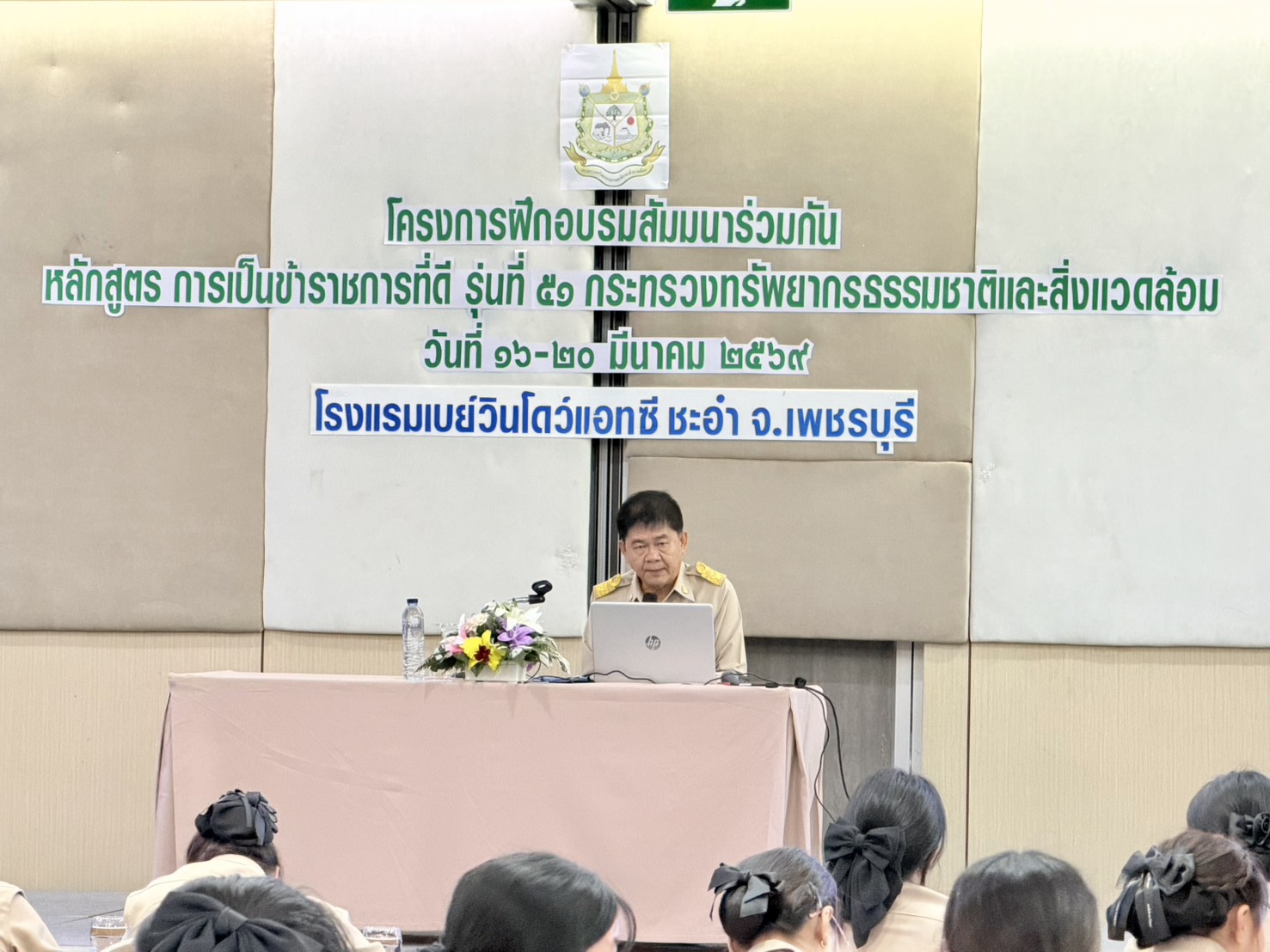 วันที่ 16 มีนาคม 2569 นายอนันต์ โพธิ์พันธุ์ ผู้อำนวยการสำนักงานทรัพยากรน้ำที่ 7 ได้รับเชิญเป็นวิทยากรบรรยายให้ความรู้ภายใต้หัวข้อ “เรียนรู้ภารกิจหลักของกระทรวงทรัพยากรธรรมชาติและสิ่งแวดล้อม” แก่ข้าราชการบรรจุใหม่ ในโครงการฝึกอบรมหลักสูตรการเป็นข้าราชการที่ดี รุ่นที่ 51 ณ โรงแรมเอกชน จังหวัดเพชรบุรี เพื่อถ่ายทอดองค์ความรู้ ประสบการณ์ และสร้างความรู้ ความเข้าใจเกี่ยวกับบทบาทภารกิจของกรมทรัพยากรน้ำและของกระทรวงฯ ให้แก่ผู้เข้ารับการอบรมได้เตรียมความพร้อมในการปฏิบัติหน้าที่ราชการได้อย่างมีประสิทธิภาพต่อไป