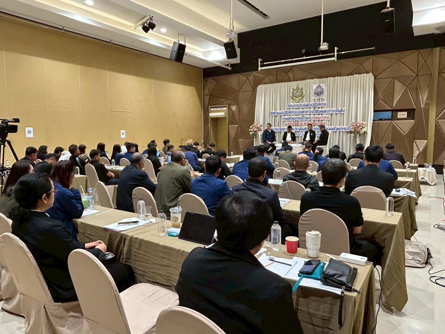 นายพงศ์พัฒน์ เสมอคำ รองอธิบดีกรมทรัพยากรน้ำ เป็นประธานเปิดการประชุมเชิงปฏิบัติการ “การจัดทำแผนปฏิบัติการบรรเทาภาวะน้ำท่วมและภาวะน้ำแล้ง ของกรมทรัพยากรน้ำ พ.ศ. 2569/2570” โดยมี ผู้บริหารและเจ้าหน้าที่กรมทรัพยากรน้ำจากส่วนกลาง และสำนักงานทรัพยากรน้ำที่ 1–11 เข้าร่วมประชุม ณ ห้องประชุมแกรนด์บอลรูม 4 โรงแรมบรรจงบุรี จังหวัดสุราษฎร์ธานี ในการนี้ นายสิทธิชัย ปริญญาขจร ผู้อำนวยการสำนักงานทรัพยากรน้ำที่ 2 พร้อม ผู้อำนวยการส่วนบำรุงรักษาแหล่งน้ำ และผู้อำนวยการส่วนเครื่องกล พร้อมเจ้าหน้าที่ เข้าร่วมประชุมดังกล่าวเพื่อจัดทำแผนปฏิบัติงานในการป้องกันและบรรเทาภาวะน้ำท่วมและภัยแล้งจากสถานการณ์ที่ผ่านมา เพื่อเป็นแนวทางในการวิเคราะห์และแก้ไขปัญหาวิกฤติน้ำในครั้งถัดไป ลดความเสียหายที่อาจจะเกิดขึ้น อีกทั้งยังเป็นการเตรียมความพร้อมเสำหรับการให้ความช่วยเหลือ ในด้านกำลังพล เครื่องจักรและอุปกรณ์ ในการประชุมได้มีการเปิดโอกาสให้ผู้เข้าร่วมประชุมร่วมแลกเปลี่ยนข้อมูลและข้อเสนอแนะ เพื่อให้แผนปฏิบัติการมีความสมบูรณ์ และสามารถนำไปใช้ได้จริงในพื้นที่