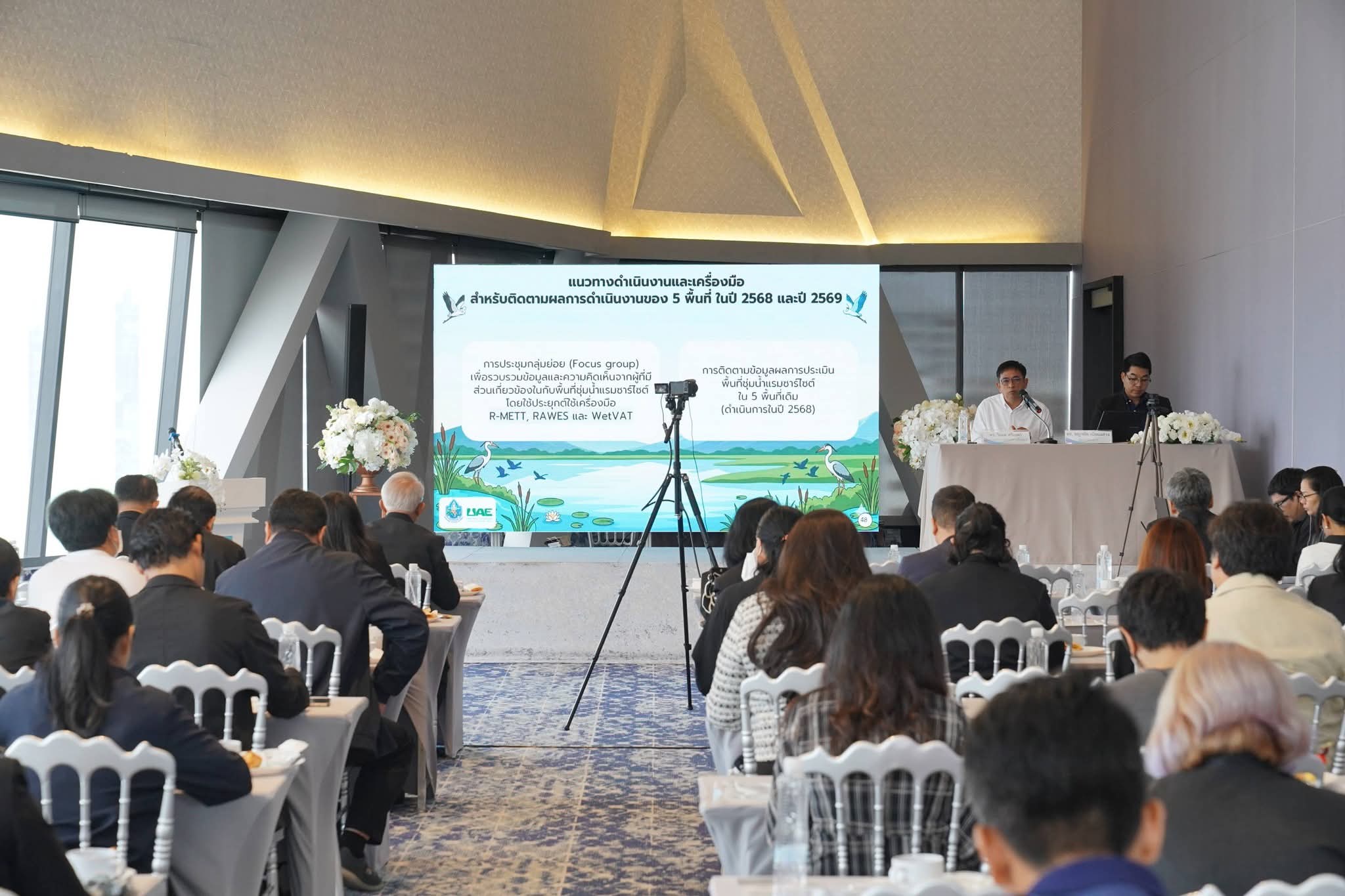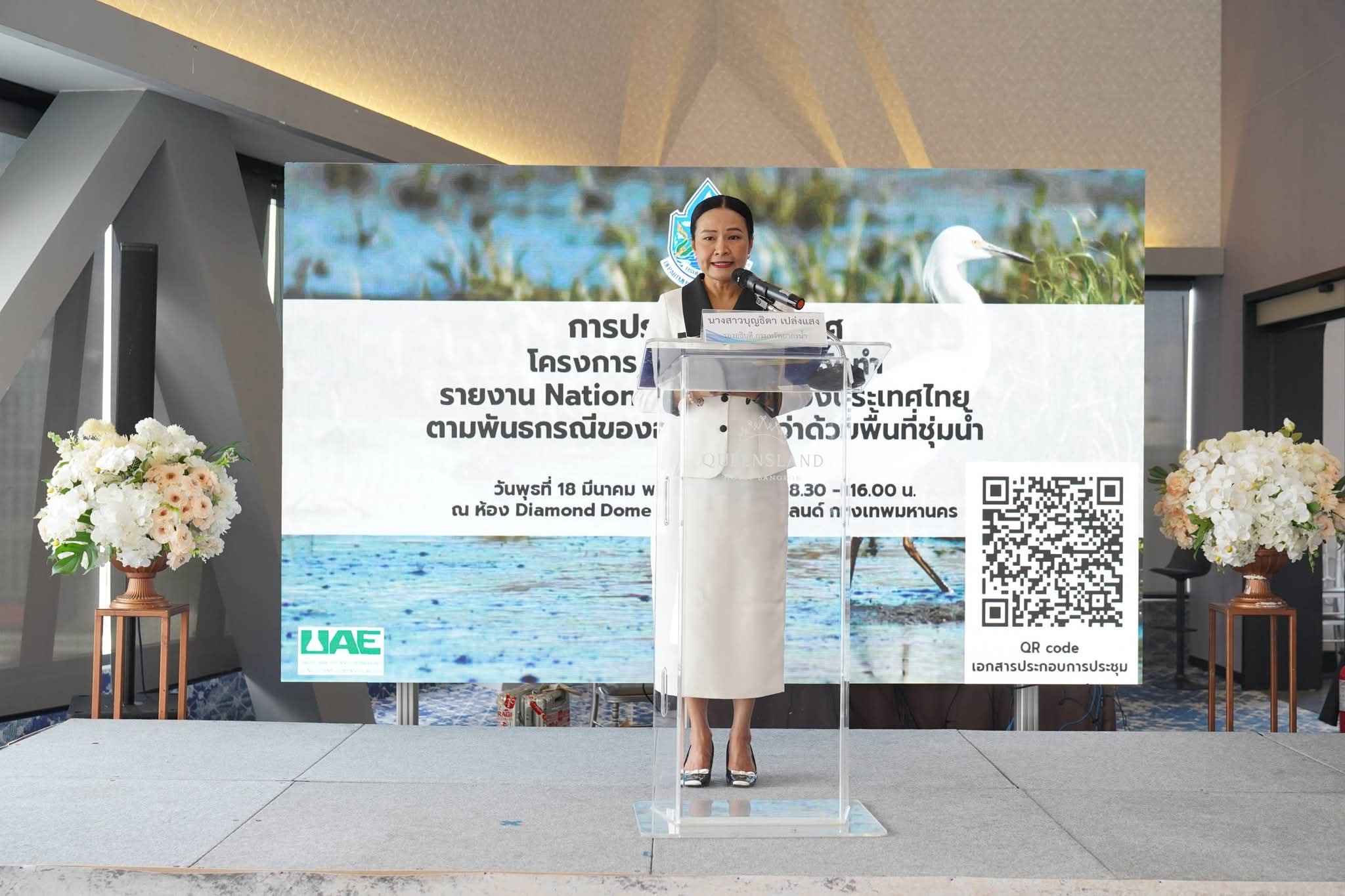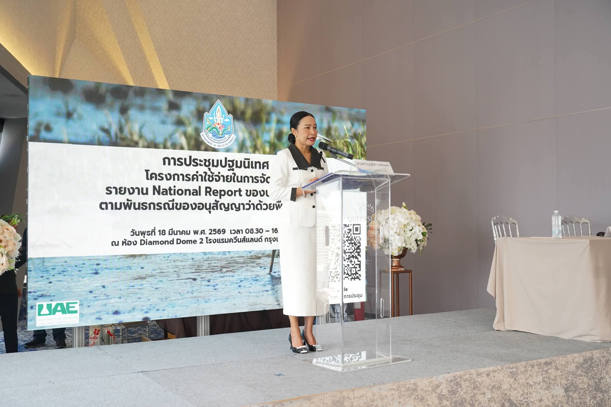 วันนี้ (18 มีนาคม 2569) นางสาวบุญธิดา เปล่งแสง รองอธิบดีกรมทรัพยากรน้ำ เป็นประธานเปิดการประชุมปฐมนิเทศโครงการ ค่าใช้จ่ายในการจัดทำรายงาน National Report ของประเทศไทย ตามพันธกรณีของอนุสัญญาว่าด้วยพื้นที่ชุ่มน้ำ ประจำปี พ.ศ 2569 โดยมีวัตถุประสงค์เพื่อจัดทำรายงานแห่งชาติ (National Report) สำหรับรายงานสถานการณ์ของพื้นที่ชุ่มน้ำที่เป็นปัจจุบัน และเสริมสร้างความรู้ความเข้าใจเรื่องการบริหารจัดการพื้นที่ชุ่มน้ำให้กับผู้ที่เกี่ยวข้อง โดยมีผู้บริหารกรมฯ หน่วยงานภายในกระทรวงทรัพยากรธรรมชาติและสิ่งแวดล้อม ผู้แทนภาครัฐ รัฐวิสาหกิจ ภาคเอกชน สถาบันการศึกษา มูลนิธิ และสมาคม เข้าร่วมประชุม ณ ห้องประชุม Diamond Dome 2 โรงแรมควีนส์แลนด์ ถนนศรีอยุธยา กรุงเทพมหานคร และผ่านระบบออนไลน์ Zoom Meeting โครงการดังกล่าวจัดขึ้นโดยกองอนุรักษ์ทรัพยากรน้ำ กรมทรัพยากรน้ำ มีเป้าหมายเพื่อเป็นการจัดเตรียมทำรายงานแห่งชาติ หรือ National Report ซึ่งเป็นไปตามพันธกรณีที่ประเทศไทยจะต้องรายงานสถานการณ์ของพื้นที่ชุ่มน้ำที่เป็นปัจจุบันต่อสำนักงานเลขาธิการอนุสัญญาแรมซาร์ ทุก ๆ 3 ปี โดยในปี 2568 ที่ผ่านมา กรมทรัพยากรน้ำได้รับงบประมาณสนับสนุนให้ดำเนินการศึกษาด้านความหลากหลายทางชีวภาพและข้อมูลต่าง ๆ ของพื้นที่ชุ่มน้ำที่มีความสำคัญระหว่างประเทศ (Ramsar Site) จำนวน 5 แห่ง และในปีงบประมาณ พ.ศ. 2569 นี้ โครงการนี้ได้รับงบประมาณสนับสนุนต่อเนื่อง เพื่อศึกษาใน 5 พื้นที่ Ramsar Site เพิ่มเติมในลำดับที่ 6 – 10 ต่อเนื่องจากปีที่ผ่านมา ซึ่งโครงการนี้ถือเป็นภารกิจสำคัญในการดำเนินงานภายใต้กรอบ อนุสัญญาว่าด้วยพื้นที่ชุ่มน้ำ หรือ Ramsar Convention ของประเทศไทย