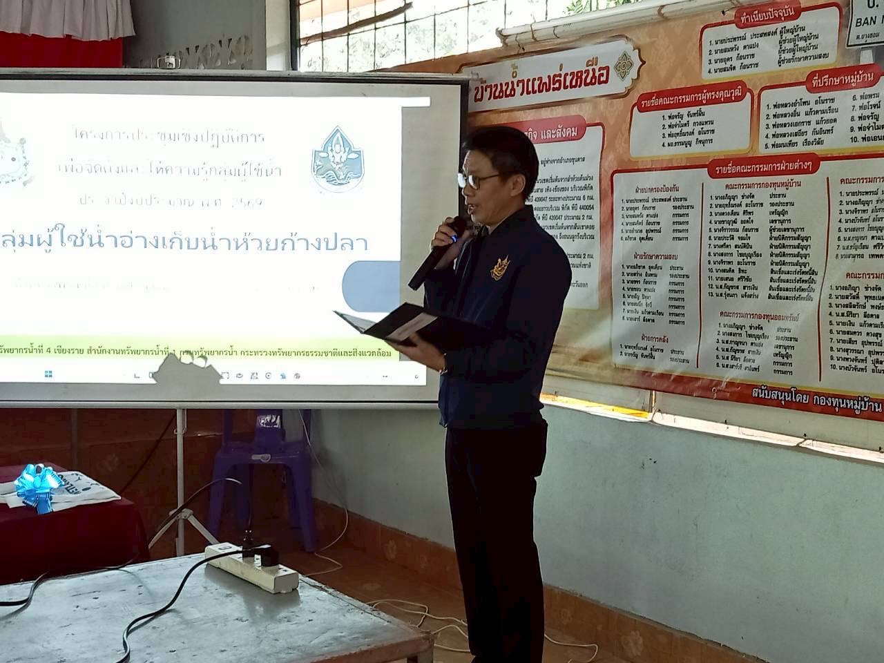 นางสาวสุพัดสอน สีมืด ผู้อำนวยการสำนักงานทรัพยากรน้ำที่ 1 มอบหมายให้ส่วนอนุรักษ์ทรัพยากรน้ำที่ 4 เชียงราย ดำเนินโครงการประชุมเชิงปฏิบัติการเพื่อจัดตั้งและให้ความรู้กลุ่มผู้ใช้น้ำ(แหล่งน้ำที่กรมทรัพยากรน้ำดำเนินการก่อสร้างและบำรุงรักษา) ประจำปีงบประมาณ พ.ศ.2569