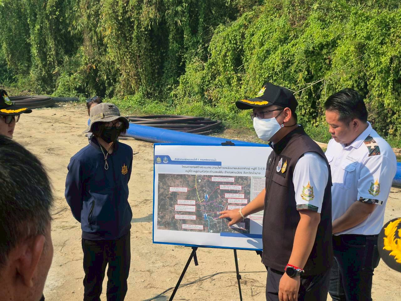 นางสาวสุพัดสอน สีมืด ผู้อำนวยการสำนักงานทรัพยากรน้ำที่ 1 พร้อมด้วยนายสมชาย ยิ้มแฉล้ม ผู้อำนวยการสำนักงาน ป.ป.ช.ประจำจังหวัดลำปาง ผู้แทนจากหน่วยงานราชการ ได้แก่ คลังจังหวัดลำปาง สำนักงาน ป.ป.ช.ภาค 5 สำนักงานตรวจเงินแผ่นดินจังหวัดลำปาง และหน่วยงานที่เกี่ยวข้อง ลงพื้นที่ติดตามและเฝ้าระวังการดำเนินโครงการตามแผนขับเคลื่อนเศรษฐกิจภายใต้กรอบวงเงิน (กระตุ้นเศรษฐกิจ) ในโครงการก่อสร้างระบบกระจายน้ำด้วยพลังงานแสงอาทิตย์ หมู่ที่ 3,4,9 หมู่ที่ 3 บ้านหัวทุ่ง ตำบลแม่สัน อำเภอห้างฉัตร จังหวัดลำปาง