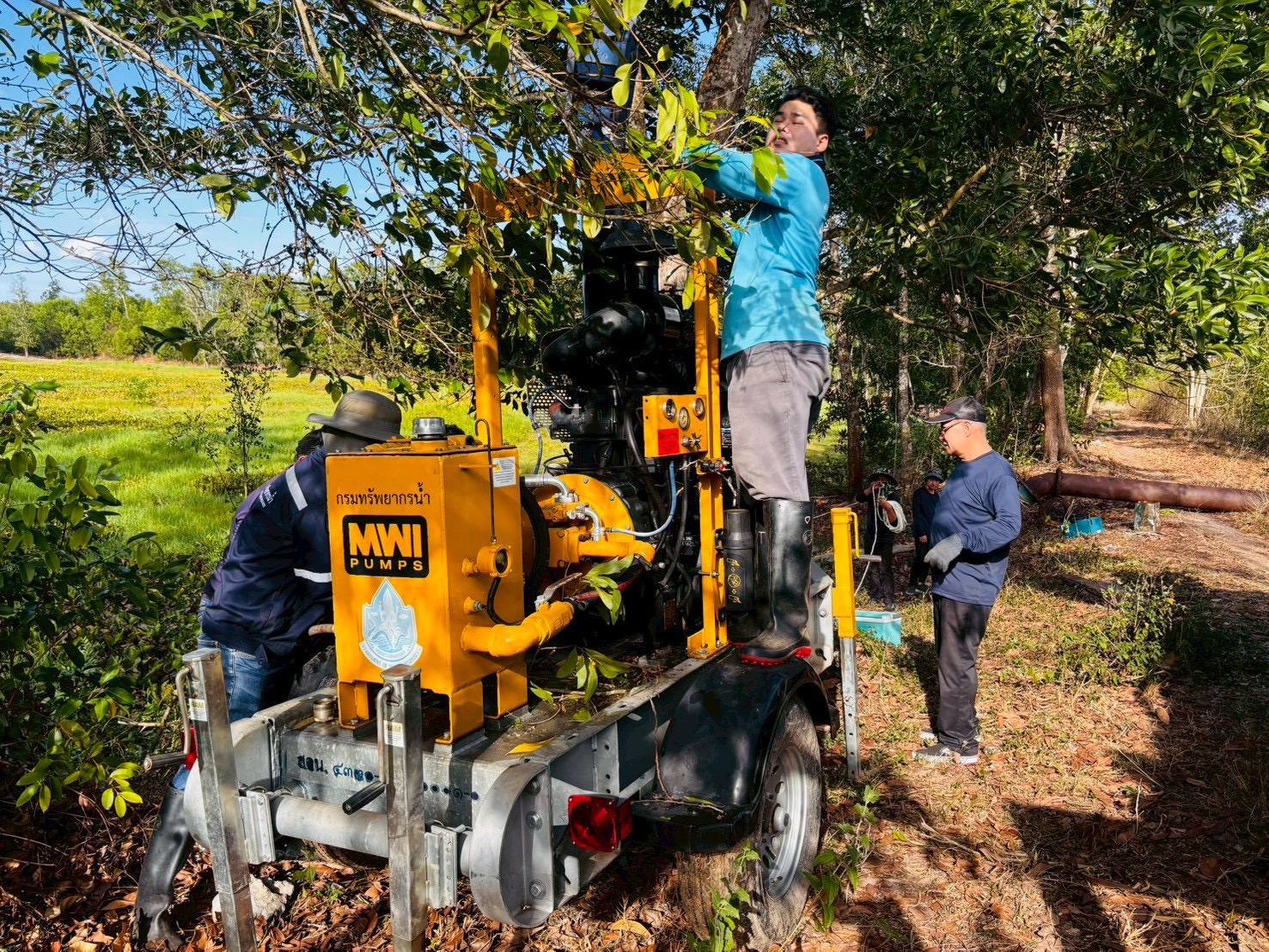 สำนักงานทรัพยากรน้ำที่ 10 โดยศูนย์อำนวยการ ติดตามและแก้ไขปัญหาภาวะน้ำแล้งและภาวะน้ำท่วม (ส่วนหน้า) เข้าดำเนินการติดตั้งเครื่องสูบน้ำขนาด 12 นิ้ว ณ บริเวณสระทุ่งหัวสน พื้นที่ตำบลช้างขวา อำเภอกาญจนดิษฐ์ จังหวัดสุราษฎร์ธานี ตามการขอรับการสนับสนุนจากเทศบาลตำบลช้างขวา เพื่อสูบน้ำช่วยเหลือประชาชนที่ได้รับผลกระทบจากสถานการณ์ภัยแล้ง และบรรเทาความเดือดร้อนให้เกษตรกรและประชาชนในพื้นที่ให้มีน้ำสำหรับอุปโภคบริโภคและใช้ในการเกษตรอย่างเพียงพอในช่วงฤดูแล้ง