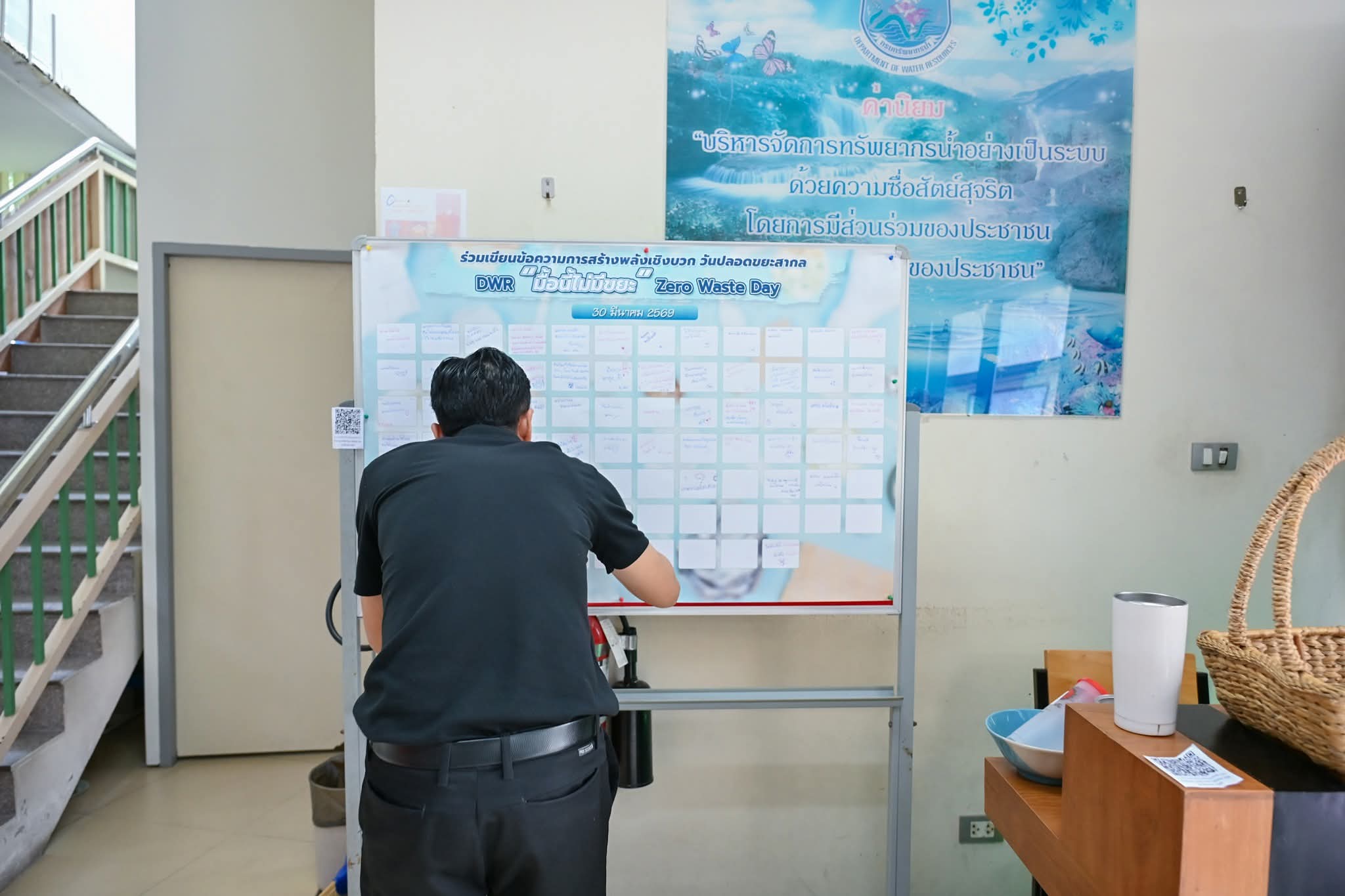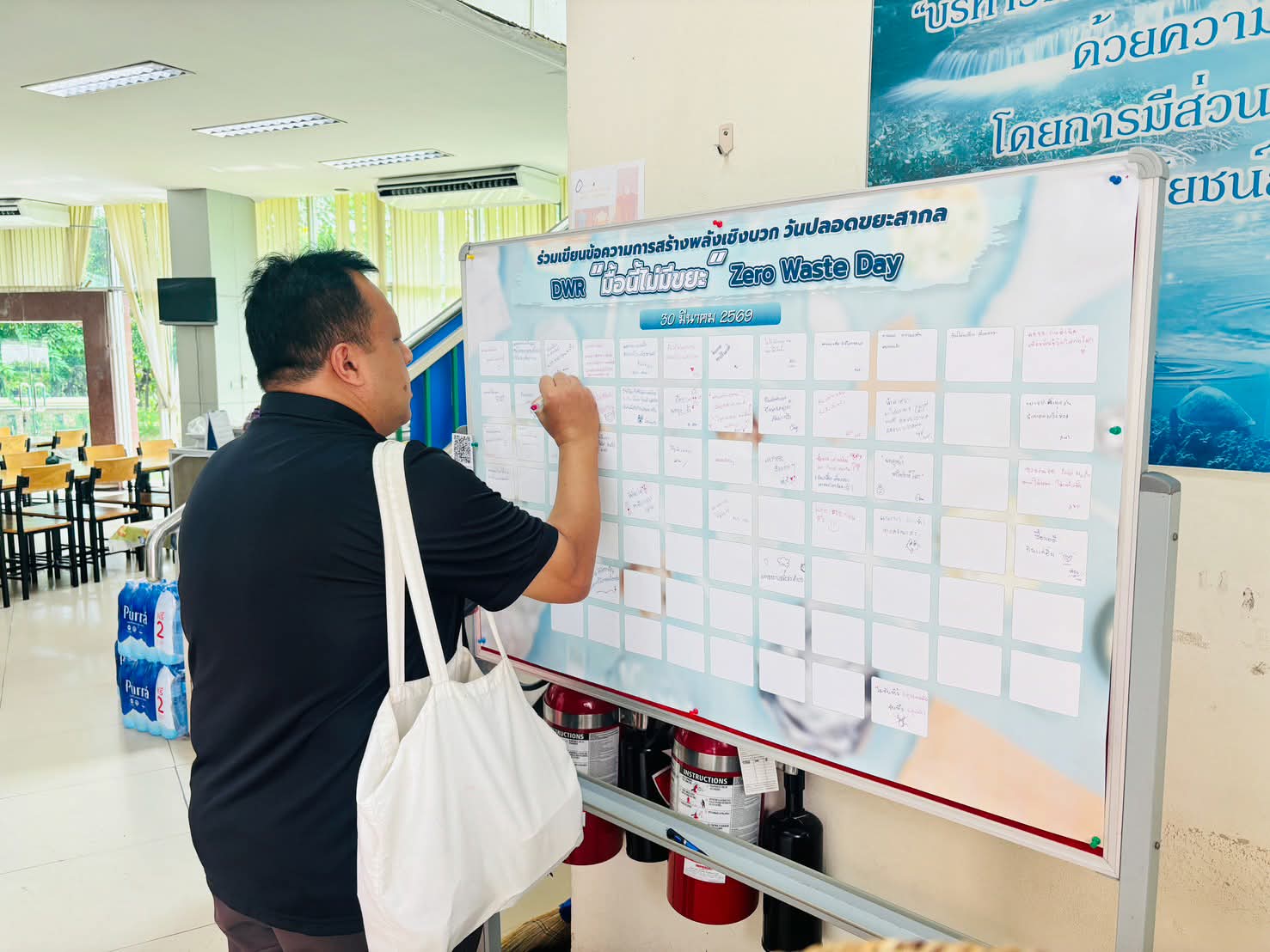วันนี้ (30 มีนาคม 2569) กรมทรัพยากรน้ำจัดกิจกรรม “DWR Zero Waste Day : มื้อนี้ไม่มีขยะ” เนื่องในวันปลอดขยะสากล ซึ่งตรงกับวันที่ 30 มีนาคมของทุกปี โดยมีผู้บริหาร ข้าราชการ และเจ้าหน้าที่เข้าร่วมกิจกรรม ณ โรงอาหารกรมทรัพยากรน้ำ เพื่อร่วมลดขยะอาหารและงดการใช้พลาสติกแบบครั้งเดียวทิ้ง ภายในงานส่งเสริมการนำภาชนะส่วนตัวมาใช้ พร้อมมอบส่วนลดค่าอาหาร 5 บาทต่อออเดอร์ และแจกน้ำพันซ์ฟรีสำหรับผู้ที่นำแก้วมาเอง นอกจากนี้ยังมีกิจกรรม “DWR Green Path” ร่วมเขียนปณิธานตามหลัก 3R และแจกถุงผ้ามือสอง เพื่อสนับสนุนการใช้ทรัพยากรอย่างคุ้มค่า