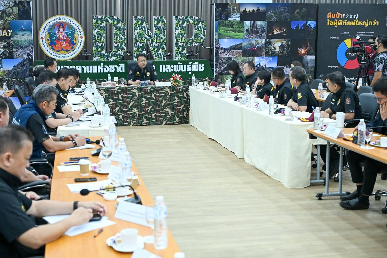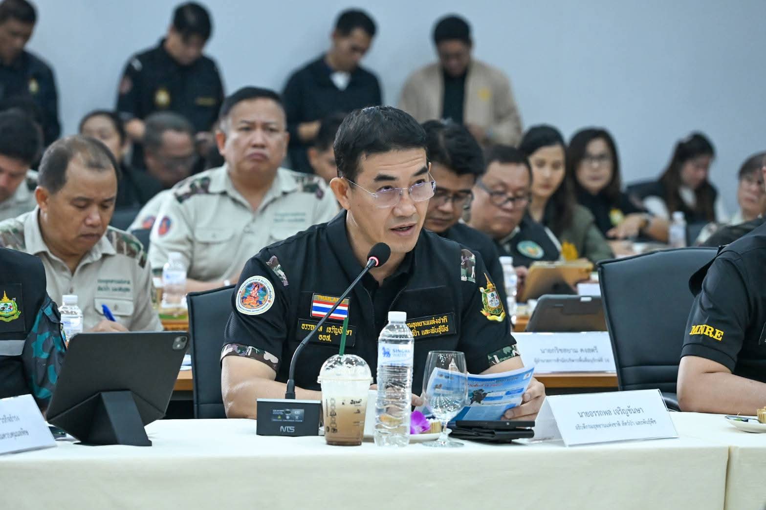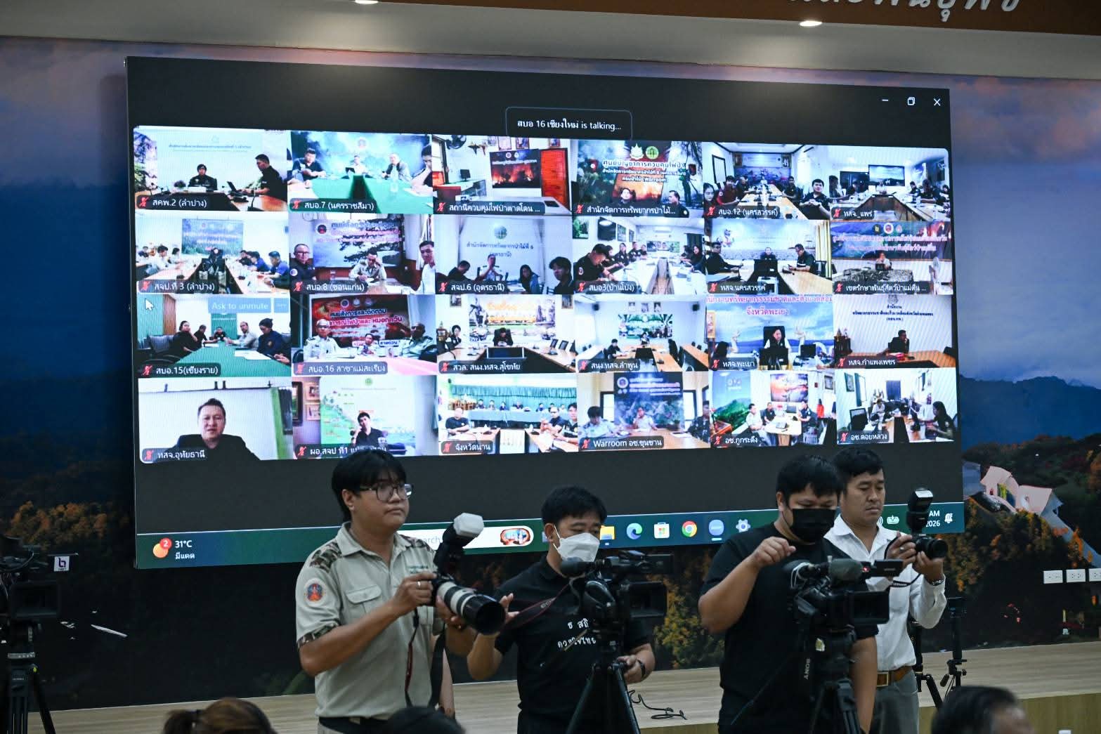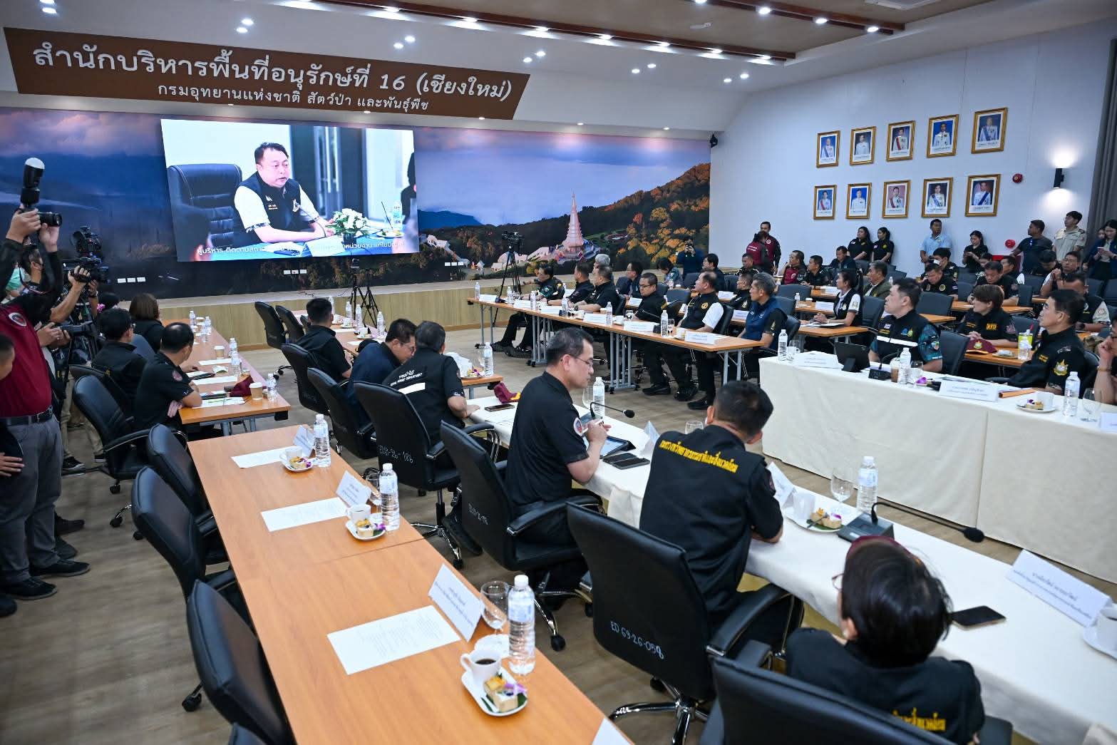 วันนี้ (31 มีนาคม 2569) เวลา 10.00 น. นายสุชาติ ชมกลิ่น รองนายกรัฐมนตรีและรัฐมนตรีว่าการกระทรวงทรัพยากรธรรมชาติและสิ่งแวดล้อม เป็นประธานการประชุมคณะทำงานศูนย์ปฏิบัติการเฝ้าระวัง ควบคุมไฟป่าและหมอกควันในพื้นที่ 14 กลุ่มป่า พร้อมผู้บริหารระดับสูงในสังกัดกระทรวงฯ โดยมีนายธีระชุณ บุญสิทธิ์ อธิบดีกรมทรัพยากรน้ำ และนางสาวสุพัดสอน สีมืด ผู้อำนวยการสำนักทรัพยากรน้ำที่ 1 เข้าร่วมฯ พร้อมมอบน้ำดื่ม 2,000 ขวด สนับสนุนการดับไฟป่าของเจ้าหน้าที่ในพื้นที่ ในการประชุมครั้งนี้เพื่อติดตามสถานการณ์อย่างใกล้ชิด ร่วมกับนายรัฐพล นราดิศร ผู้ว่าราชการจังหวัดเชียงใหม่ และนายธีรพัฒน์ คัชมาตย์ อธิบดีกรมป้องกันและบรรเทาสาธารณภัย ณ ห้องประชุมพิทักษ์ไพร สำนักบริหารพื้นที่อนุรักษ์ที่ 16 (เชียงใหม่) และผ่านระบบ VDO Conference นายสุชาติ เปิดเผยว่า แม้สภาพอากาศแห้งแล้งและความชื้นต่ำจะเอื้อต่อการลุกลามของไฟป่า แต่จากการบูรณาการทำงานอย่างเข้มข้นตั้งแต่ต้นเดือนมีนาคม ส่งผลให้จุดความร้อนลดลงกว่าร้อยละ 30 เมื่อเทียบกับปีก่อน พร้อมสั่งการเร่งส่งเฮลิคอปเตอร์ 2 ลำ สนับสนุนภารกิจดับไฟในจังหวัดแม่ฮ่องสอน และให้สับเปลี่ยนกำลังพลเพื่อลดความอ่อนล้าของเจ้าหน้าที่ ทั้งนี้ ได้เน้นย้ำ 5 มาตรการสำคัญ ได้แก่ การขับเคลื่อนยุทธศาสตร์ “14 กลุ่มป่าไร้รอยต่อ” การยกระดับจุดเฝ้าระวัง 3,895 จุดทั่วประเทศ การเสริมกำลังเจ้าหน้าที่และภาคีเครือข่ายประชาชน การใช้เทคโนโลยี Real-time สนับสนุนการตัดสินใจ และการบังคับใช้กฎหมายอย่างเด็ดขาดควบคู่การสื่อสารข้อมูลที่ถูกต้อง โดยย้ำว่า “คนในพื้นที่คือผู้ที่เข้าใจป่าดีที่สุด” และเป็นกำลังสำคัญในการร่วมคืนอากาศบริสุทธิ์ให้ประชาชน พร้อมทั้งขอบคุณสภาลมหายใจภาคเหนือ ภาคเอกชน และประชาชนทุกภาคส่วนที่ร่วมกันทำงานเป็นทีมเดียวเพื่อแก้ไขปัญหาหมอกควันไฟป่าให้เกิดความยั่งยืน