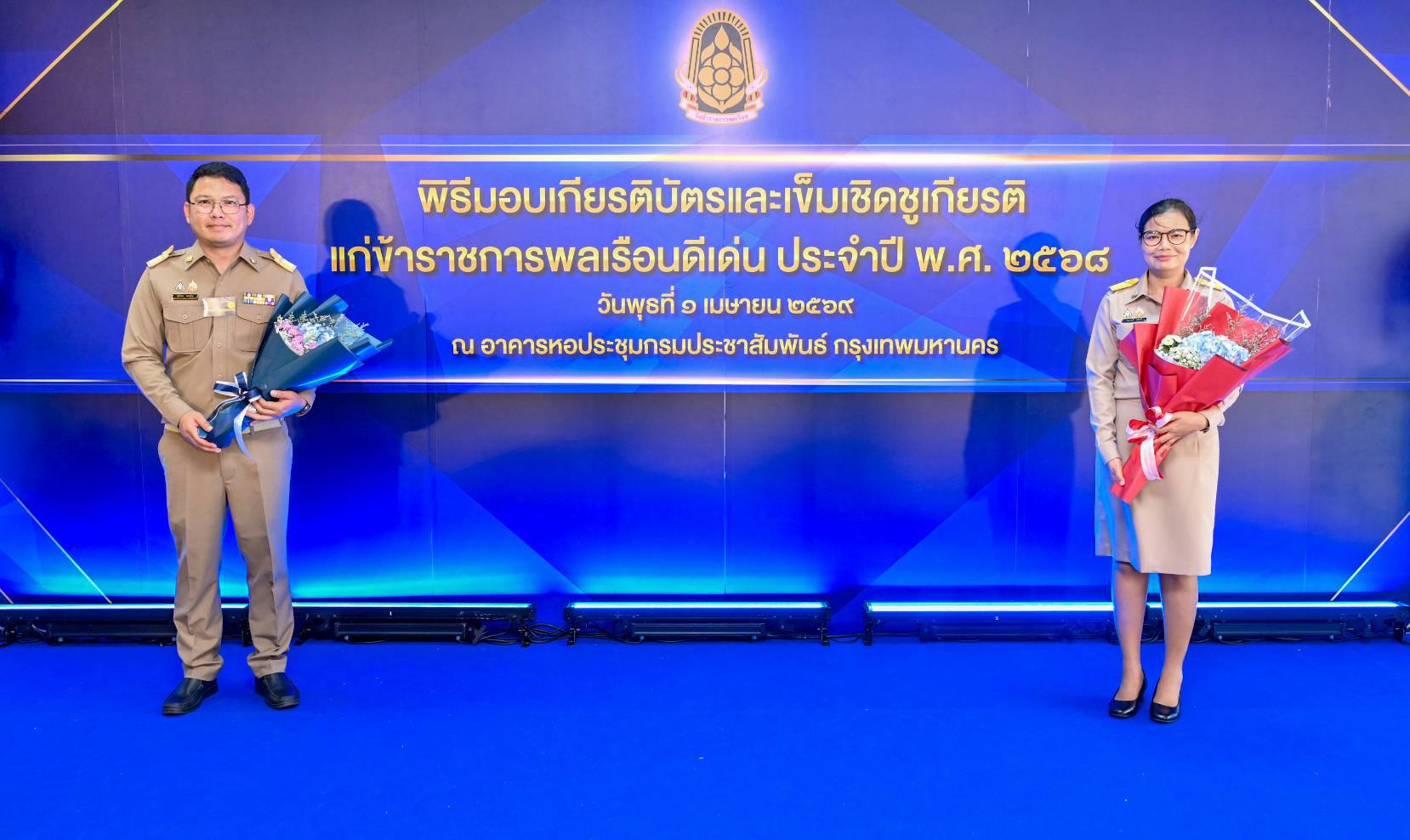 วันนี้ (1 เมษายน 2569) นายอนุทิน ชาญวีรกูล นายกรัฐมนตรี เป็นประธานในพิธีมอบเกียรติบัตรและเข็มเชิดชูเกียรติแก่ข้าราชการพลเรือนดีเด่น ประจำปี พ.ศ. 2568 เนื่องในโอกาสวันข้าราชการพลเรือน ประจำปี พ.ศ. 2569 ณ หอประชุมกรมประชาสัมพันธ์ กรุงเทพฯ