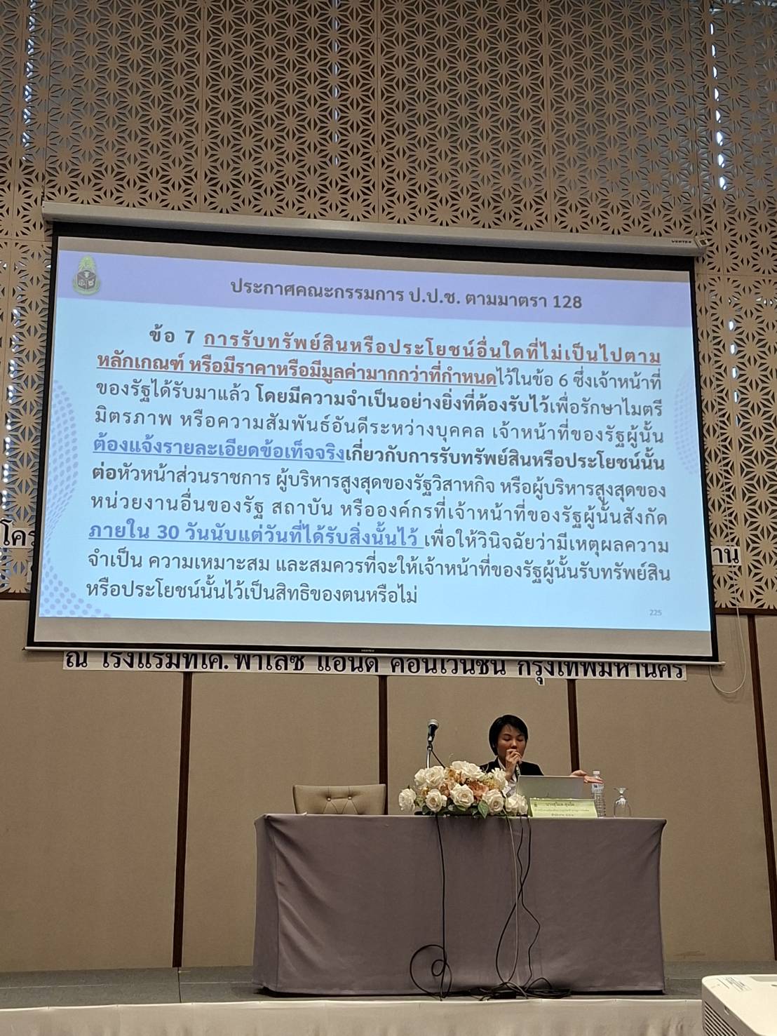 การสัมมนามีการบรรยายในหัวข้อ “การประเมินความเสี่ยงการทุจริต” โดยวิทยากรจากสำนักงาน ป.ป.ท. และหัวข้อ “สินบน ระบบอุปถัมภ์ อำนาจ อิทธิพล และการขัดกันระหว่างผลประโยชน์ส่วนตนกับประโยชน์ส่วนรวม” โดยวิทยากรจากสำนักงาน ป.ป.ช. โดยมีเจ้าหน้าที่จากหน่วยงานภายในสังกัดกระทรวงทรัพยากรธรรมชาติและสิ่งแวดล้อม เข้าร่วมโครงการรวมจำนวน 100 คน ในการนี้ นายธีระชุณ บุญสิทธิ์ อธิบดีกรมทรัพยากรน้ำ มอบหมายให้เจ้าหน้าที่กลุ่มงานจริยธรรม สำนักงานเลขานุการกรม กองยุทธศาสตร์และแผนงาน และกองพัฒนาแหล่งน้ำ 2 เข้าร่วมโครงการดังกล่าว ณ โรงแรมทีเค. พาเลซ & คอนเวนชั่น กรุงเทพมหานคร