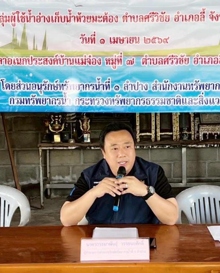 นางสาวสุพัดสอน สีมืด ผู้อำนวยการสำนักงานทรัพยากรน้ำที่ 1 มอบหมายให้ส่วนอนุรักษ์ทรัพยากรน้ำที่ 1 ลำปาง จัดโครงการประชุมเชิงปฏิบัติการเพื่อจัดตั้งและให้ความรู้กลุ่มผู้ใช้น้ำ (แหล่งน้ำที่กรมทรัพยากรน้ำดำเนินการก่อสร้างและบำรุงรักษา) กลุ่มผู้ใช้น้ำอ่างเก็บน้ำห้วยมะต้อง ณ ศาลาอเนกประสงค์บ้านแม่จ๋อง หมู่ที่ 7 ตำบลศรีวิชัย อำเภอลี้ จังหวัดลำพูน โดยมี นายประเวศน์ พรมยืน นายกเทศมนตรีตำบลศรีวิชัย เป็นประธานเปิดการประชุม มีผู้เข้าร่วมประชุม ประกอบด้วย ผู้ใหญ่บ้าน ประชาชนในพื้นที่ และกลุ่มผู้ใช้น้ำอ่างเก็บน้ำห้วยมะต้อง จำนวน 51 คนซึ่งส่วนอนุรักษ์ทรัพยากรน้ำที่ 1 ลำปาง ได้บรรยายให้ความรู้ทางวิชาการสร้างความเข้าใจเกี่ยวกับบทบาทหลักของกรมทรัพยากรน้ำและภารกิจของส่วนอนุรักษ์ทรัพยากรน้ำที่ 1 ลำปาง รวมทั้งจัดตั้งกลุ่มผู้ใช้น้ำในพื้นที่ดังกล่าว โดยมีวัตถุประสงค์เพื่อสนับสนุนการมีส่วนร่วมของประชาชน พัฒนาองค์ความรู้ เผยแพร่ประชาสัมพันธ์และสร้างเครือข่ายการบริหารจัดการน้ำที่มีความเข้มแข็ง รวมถึงสร้างความตระหนักรู้เรื่องการจัดการน้ำอย่างยั่งยืน ลดความขัดแย้งในการใช้น้ำ เพิ่มประสิทธิภาพการใช้น้ำภาคการเกษตร ส่งเสริมการอนุรักษ์ทรัพยากรน้ำ และทำให้ผู้ใช้น้ำมีส่วนร่วมในการพัฒนาและฟื้นฟูแหล่งน้ำ ซึ่งนำไปสู่การใช้น้ำอย่างมีคุณภาพและเกิดประโยชน์สูงสุดต่อชุมชนและสิ่งเเวดล้อม