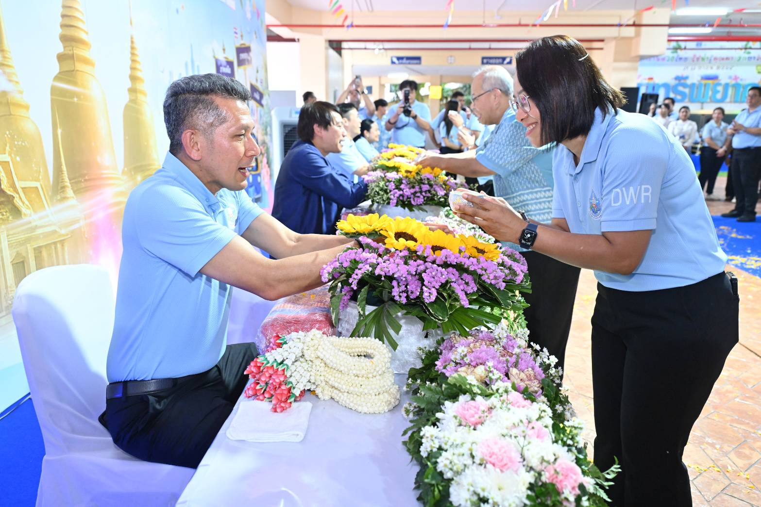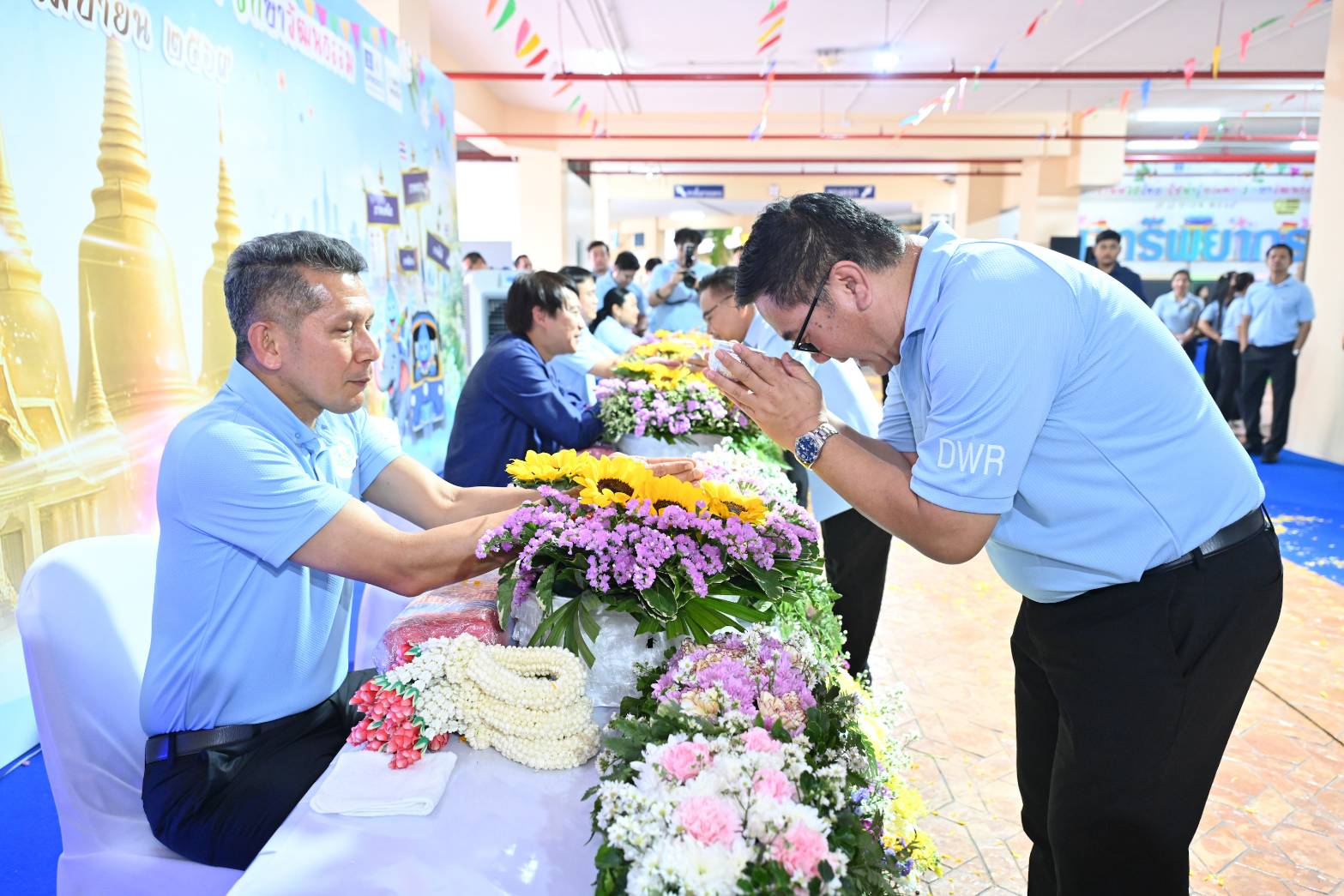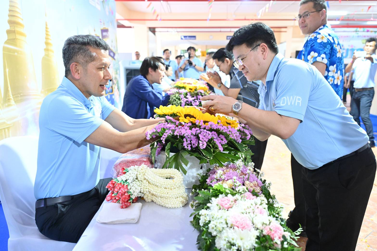 วันนี้ (7 เมษายน 2569) นายธีระชุณ บุญสิทธิ์ อธิบดีกรมทรัพยากรน้ำ นำคณะผู้บริหาร ข้าราชการ และเจ้าหน้าที่กรมทรัพยากรน้ำ ร่วมทำบุญตักบาตรพระสงฆ์จำนวน 9 รูป เนื่องในเทศกาลสงกรานต์ ประจำปี เพื่อสืบสานประเพณีอันดีงามของไทย ภายใต้แนวคิด “สงกรานต์วิถีไทย ใช้น้ำรู้คุณค่า รักษาวัฒนธรรม” โดยภายในงานมีพิธีรดน้ำขอพรจากผู้บริหาร เพื่อแสดงความเคารพและเป็นสิริมงคล รวมถึงมีการรณรงค์ให้ทุกคนตระหนักถึงคุณค่าของทรัพยากรน้ำ ใช้น้ำอย่างรู้คุณค่า และร่วมกันลดการสร้างขยะ ตามแนวทาง “Zero Waste” เพื่อสร้างจิตสำนึกด้านการอนุรักษ์ทรัพยากรธรรมชาติควบคู่ไปกับการอนุรักษ์วัฒนธรรมไทย ณ บริเวณชั้น 1 อาคารกรมทรัพยากรน้ำ