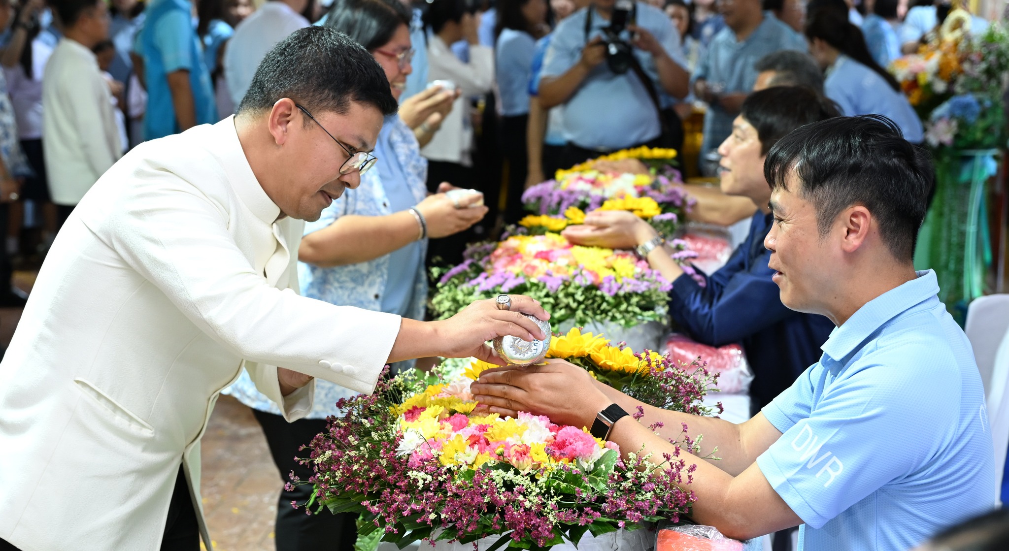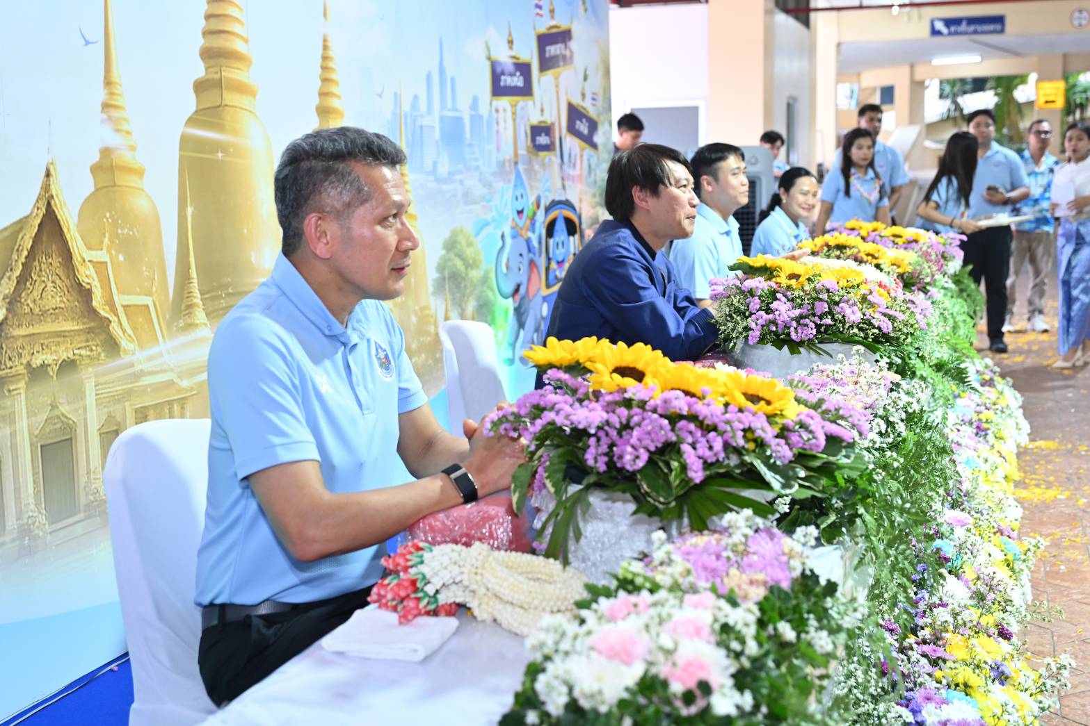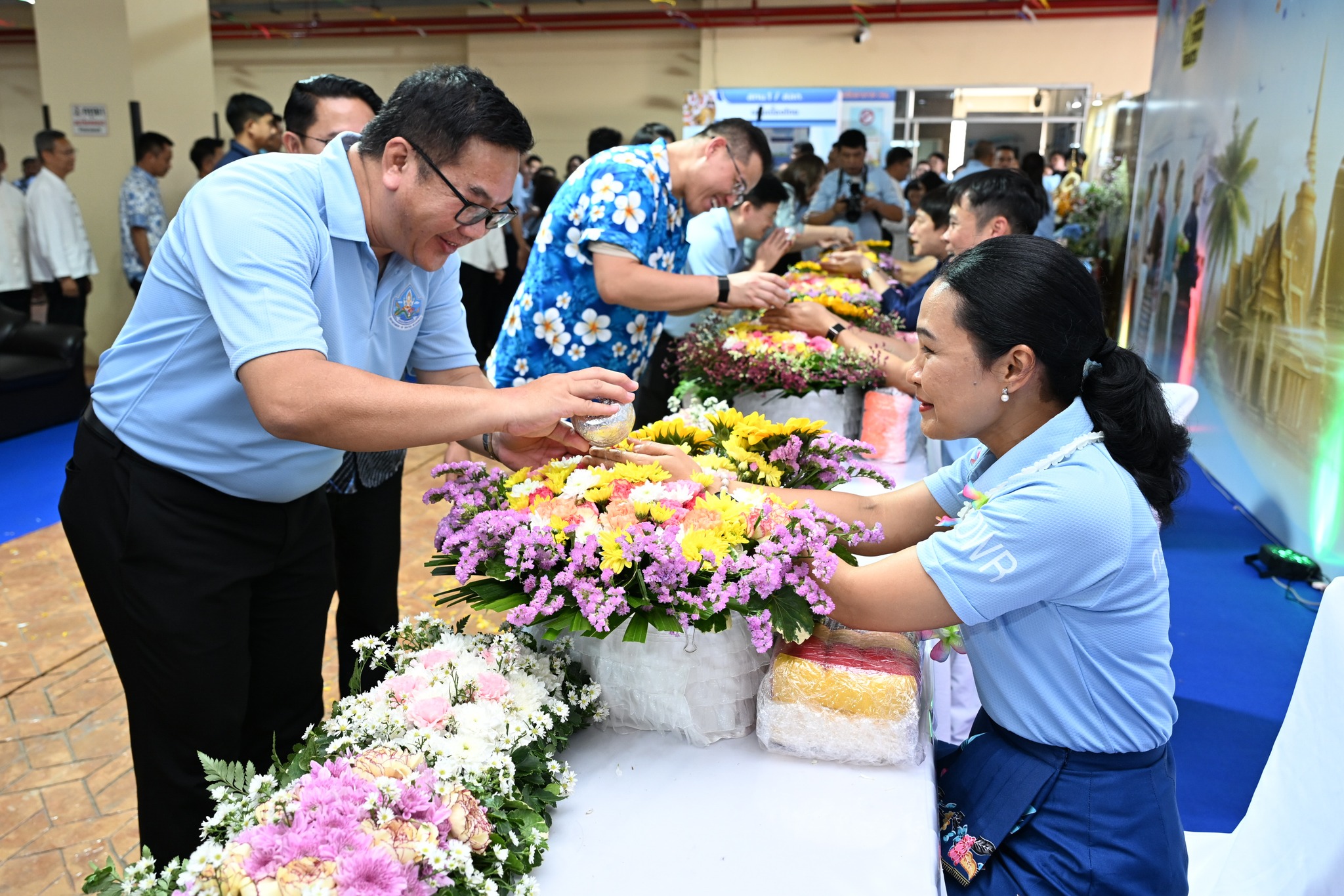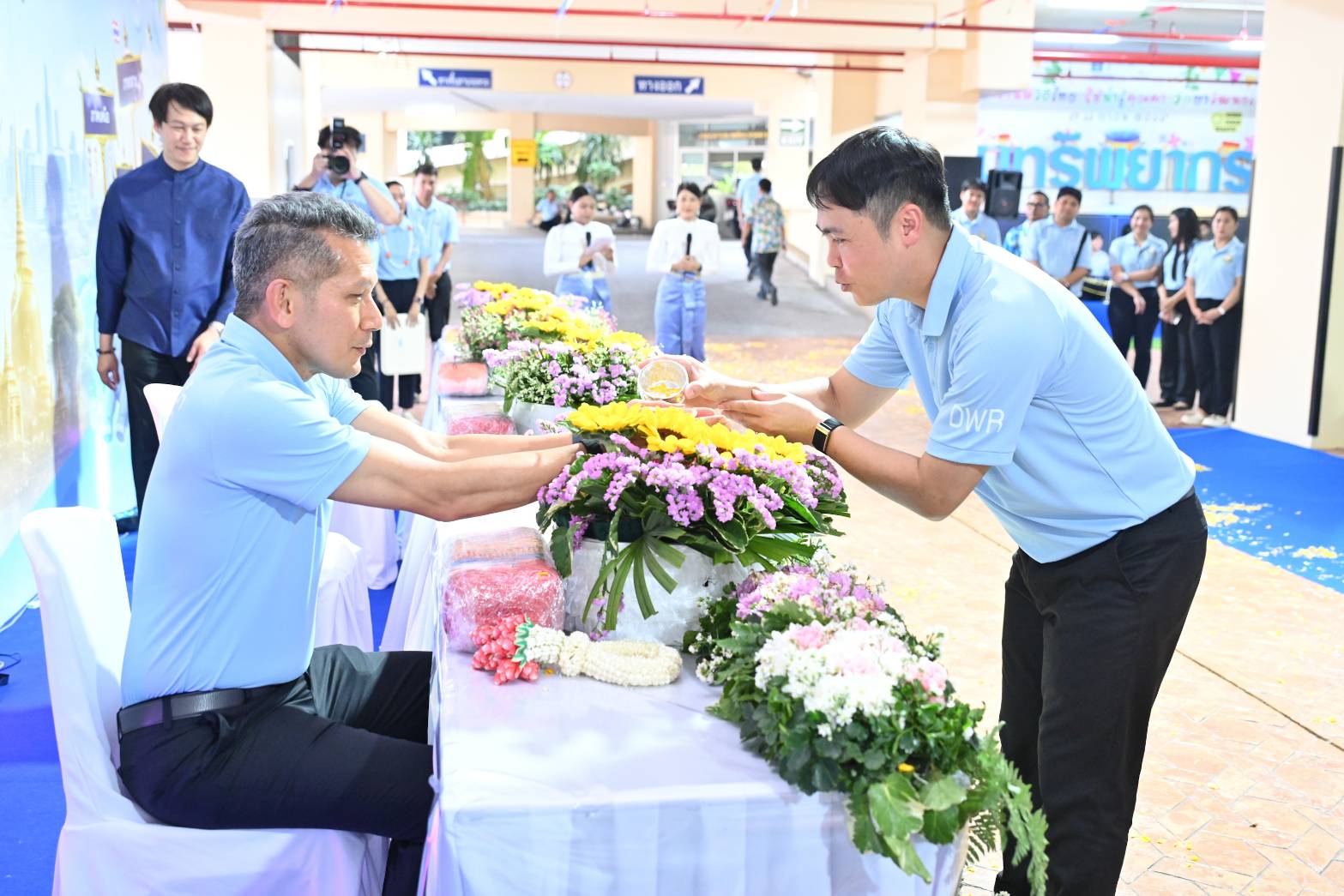 วันนี้ (7 เมษายน 2569) นายธีระชุณ บุญสิทธิ์ อธิบดีกรมทรัพยากรน้ำ นำคณะผู้บริหาร ข้าราชการ และเจ้าหน้าที่กรมทรัพยากรน้ำ ร่วมทำบุญตักบาตรพระสงฆ์จำนวน 9 รูป เนื่องในเทศกาลสงกรานต์ ประจำปี เพื่อสืบสานประเพณีอันดีงามของไทย ภายใต้แนวคิด “สงกรานต์วิถีไทย ใช้น้ำรู้คุณค่า รักษาวัฒนธรรม” โดยภายในงานมีพิธีรดน้ำขอพรจากผู้บริหาร เพื่อแสดงความเคารพและเป็นสิริมงคล รวมถึงมีการรณรงค์ให้ทุกคนตระหนักถึงคุณค่าของทรัพยากรน้ำ ใช้น้ำอย่างรู้คุณค่า และร่วมกันลดการสร้างขยะ ตามแนวทาง “Zero Waste” เพื่อสร้างจิตสำนึกด้านการอนุรักษ์ทรัพยากรธรรมชาติควบคู่ไปกับการอนุรักษ์วัฒนธรรมไทย ณ บริเวณชั้น 1 อาคารกรมทรัพยากรน้ำ