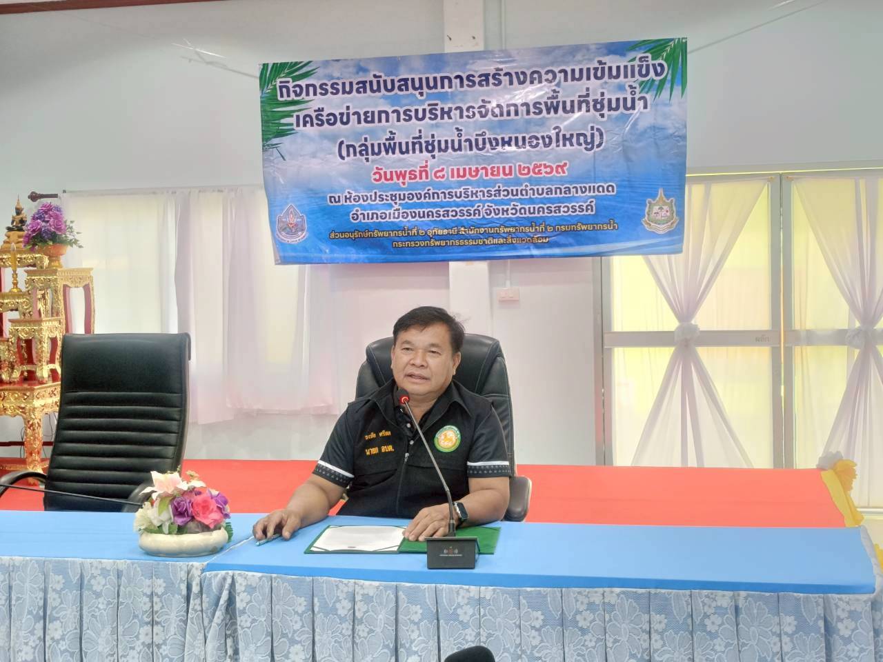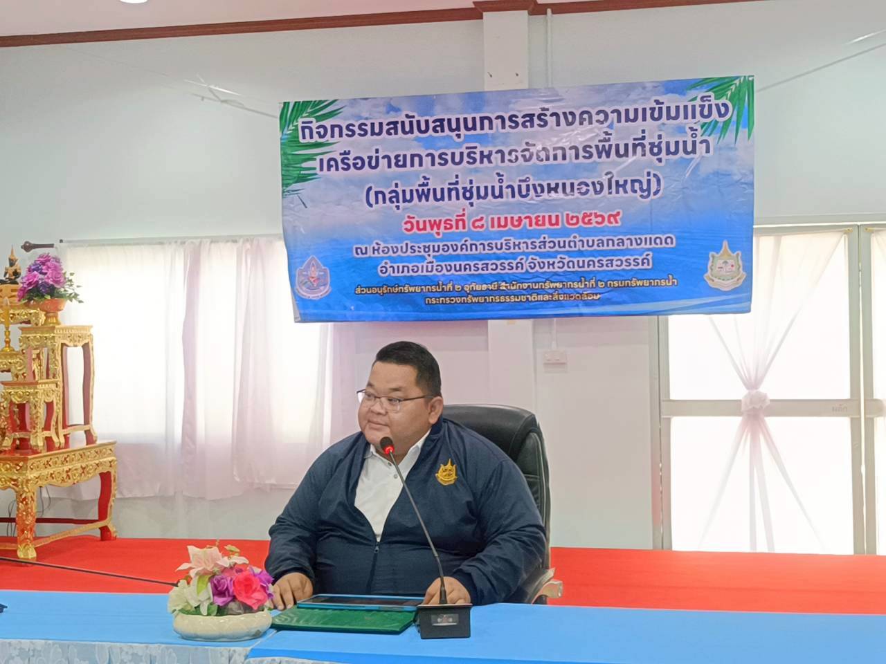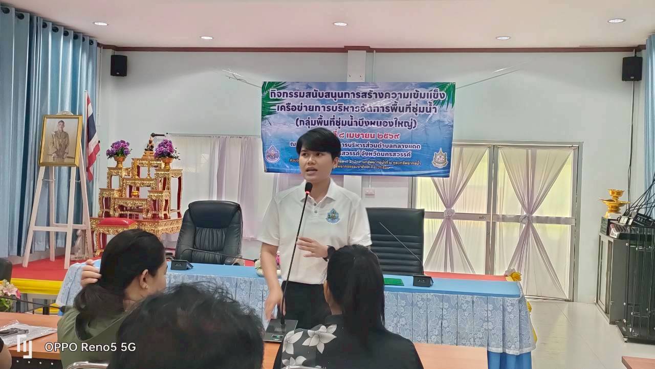 นายสิทธิชัย ปริญญาขจร ผู้อำนวยการสำนักงานทรัพยากรน้ำที่ 2 มอบหมายให้ นายบุรุษรัตน์ นาวิก ผู้อำนวยการส่วนอนุรักษ์ทรัพยากรน้ำที่ 2 อุทัยธานี พร้อมด้วยเจ้าหน้าที่ ดำเนินการจัดกิจกรรมสนับสนุนการสร้างความเข้มแข็งเครือข่ายการบริหารจัดการพื้นที่ชุ่มน้ำ (กลุ่มพื้นที่ชุ่มน้ำบึงหนองใหญ่) ณ ห้องประชุมองค์การบริหารส่วนตำบลกลางแดด อำเภอเมืองนครสวรรค์ จังหวัดนครสวรรค์ (ผู้เข้าร่วมโครงการ จำนวน 64 คน) โดยมีวัตถุประสงค์เพื่อให้เกิดกระบวนการมีส่วนร่วมของผู้มีส่วนได้ส่วนเสียในพื้นที่ในการบริหารจัดการพื้นที่ชุ่มน้ำอย่างเหมาะสม ผ่านการบรรยายให้ความรู้เพื่อเสริมสร้างความรู้ ความเข้าใจ และความตระหนักถึงคุณค่า ความสำคัญ และแนวทางการใช้ประโยชน์พื้นที่ชุ่มน้ำอย่างยั่งยืน พร้อมทั้งดำเนินกิจกรรมจิตอาสา และปล่อยพันธุ์ปลาเพื่อส่งเสริมความสมดุลของระบบนิเวศพื้นที่ชุ่มน้ำ โดยได้รับเกียรติจาก นายธงชัย ศรีสด นายกองค์การบริหารส่วนตำบลกลางแดด เป็นประธานเปิดโครงการฯ