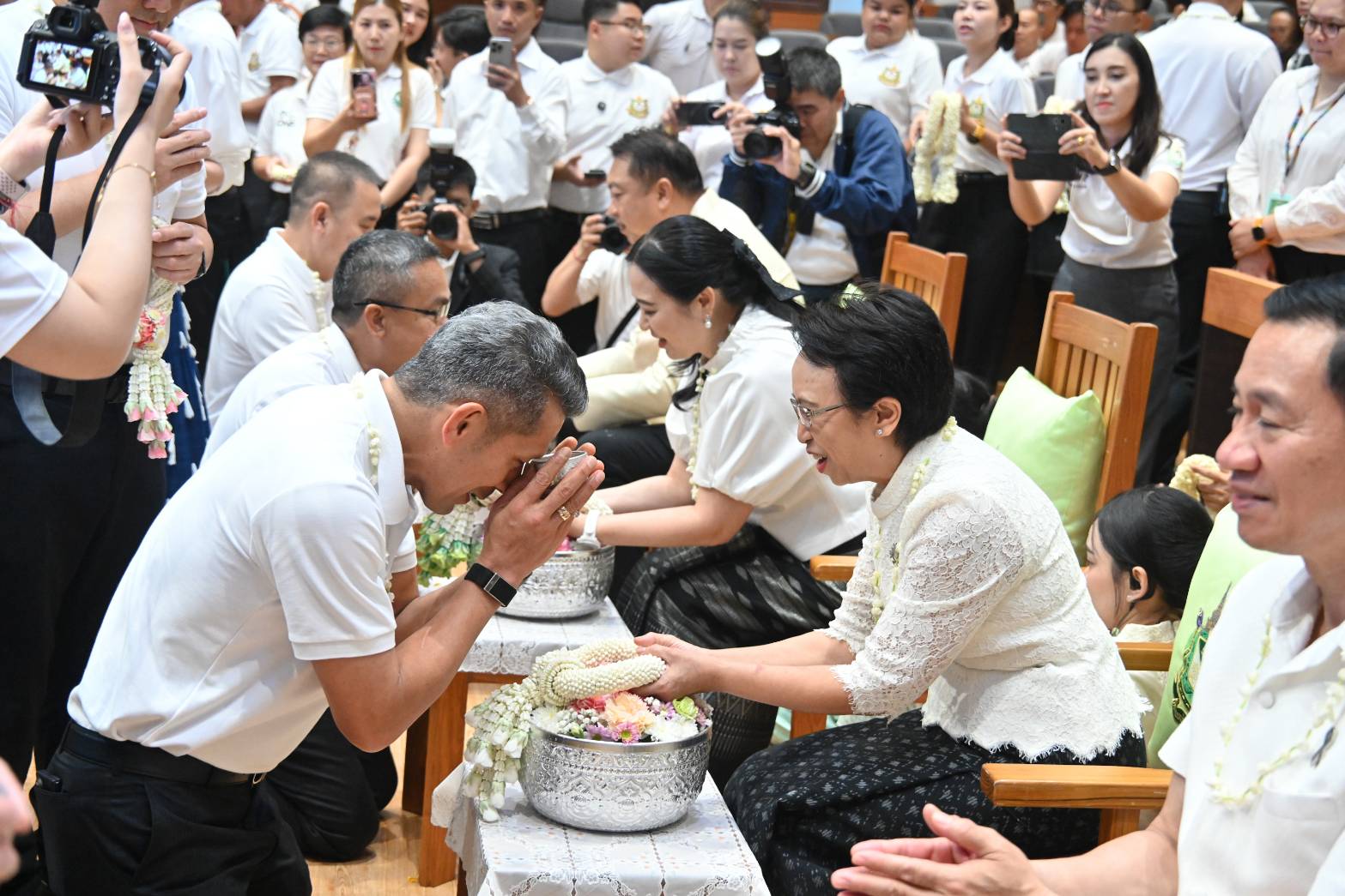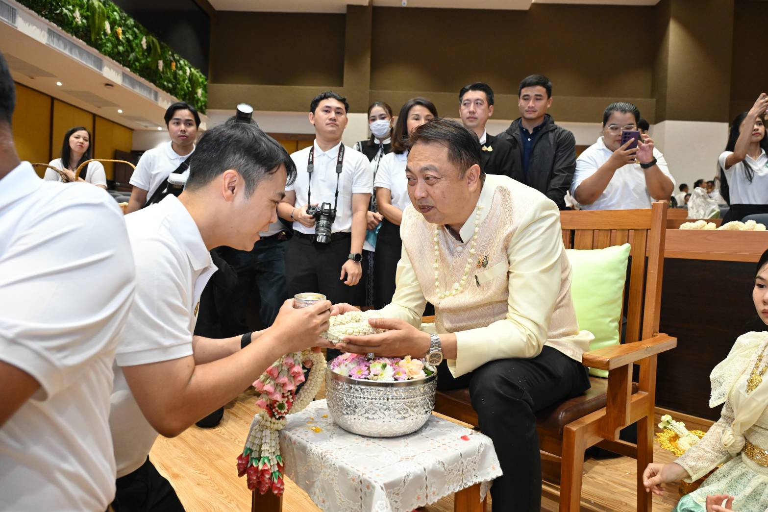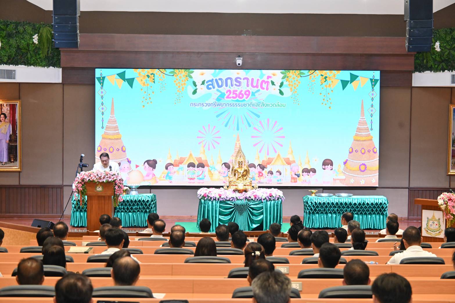 ในการนี้ รมว.ทส. ได้กล่าวให้โอวาทและอวยพรแก่ผู้บริหาร ข้าราชการ เจ้าหน้าที่ และพนักงาน โดยเน้นย้ำการปฏิบัติงานร่วมกันด้วยความรัก ความสามัคคี และความเป็น “ทส.หนึ่งเดียว” เพื่อร่วมกันขับเคลื่อนภารกิจของกระทรวงทรัพยากรธรรมชาติและสิ่งแวดล้อมให้เกิดผลอย่างเป็นรูปธรรม พร้อมร่วมพิธีสรงน้ำพระและถ่ายภาพร่วมกัน ทั้งนี้ กิจกรรมดังกล่าวนับเป็นส่วนสำคัญในการสืบสานวัฒนธรรมประเพณีไทย และเสริมสร้างขวัญกำลังใจแก่บุคลากรในสังกัดให้ร่วมกันปฏิบัติหน้าที่เพื่อประโยชน์ของประชาชนและประเทศชาติต่อ